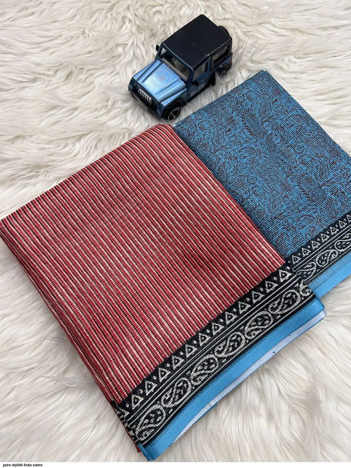 Fabric:- Kota Doriya With Digital Print Work And Running Designing Blouse
