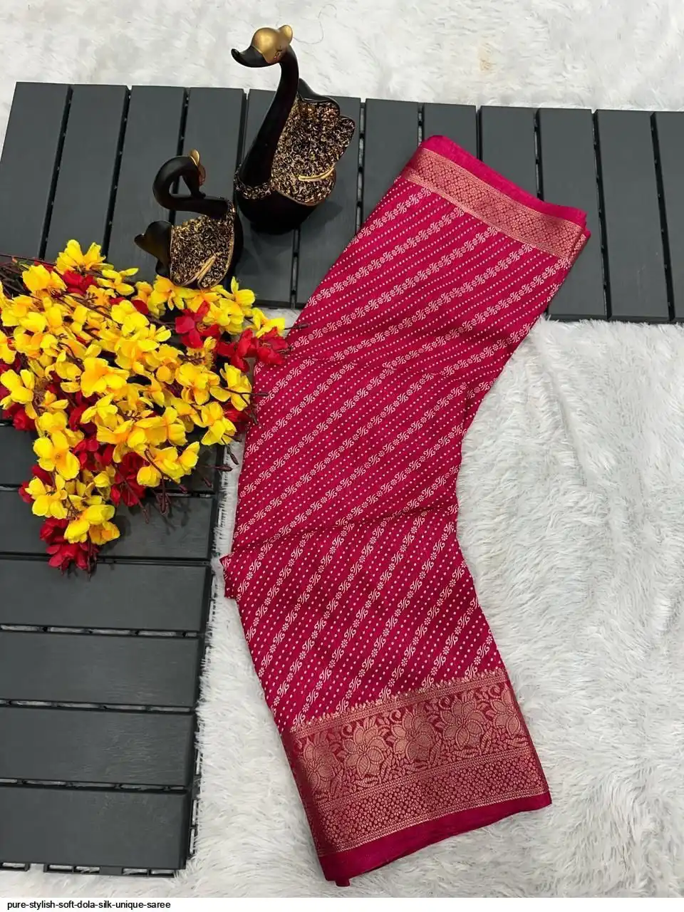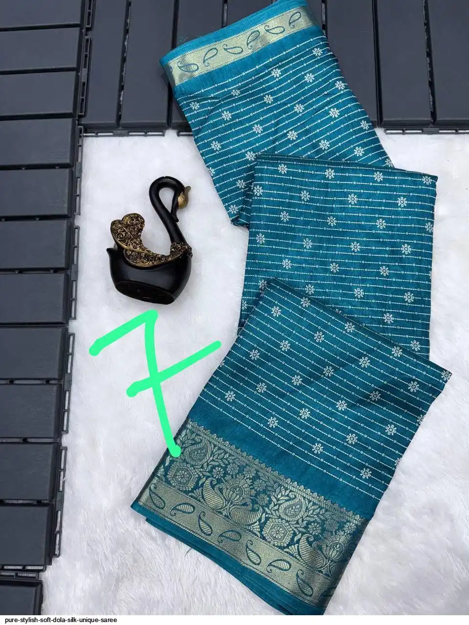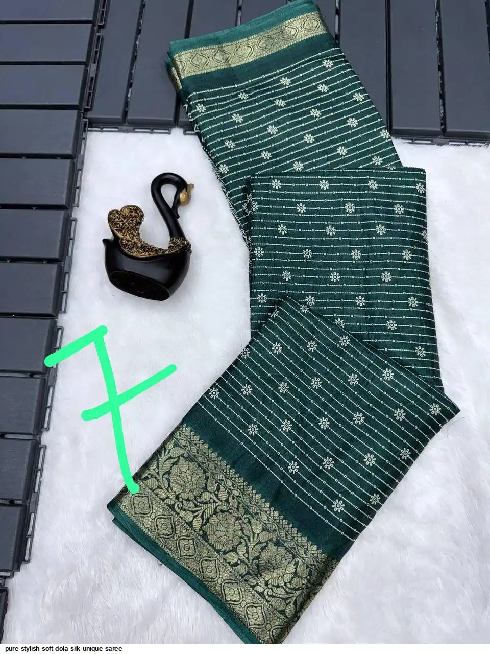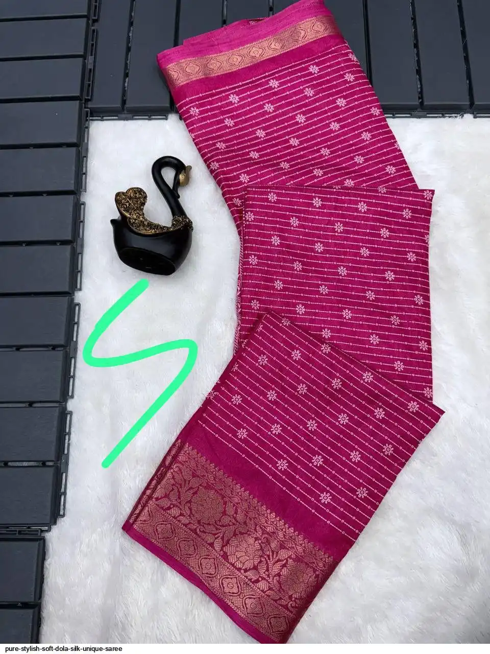 Our dreamy Soft Dola Jacquard border print saree is here to make you the queen of the fashion jungle ...