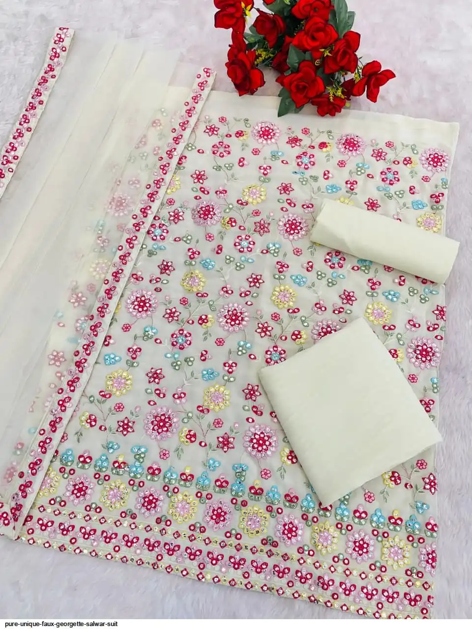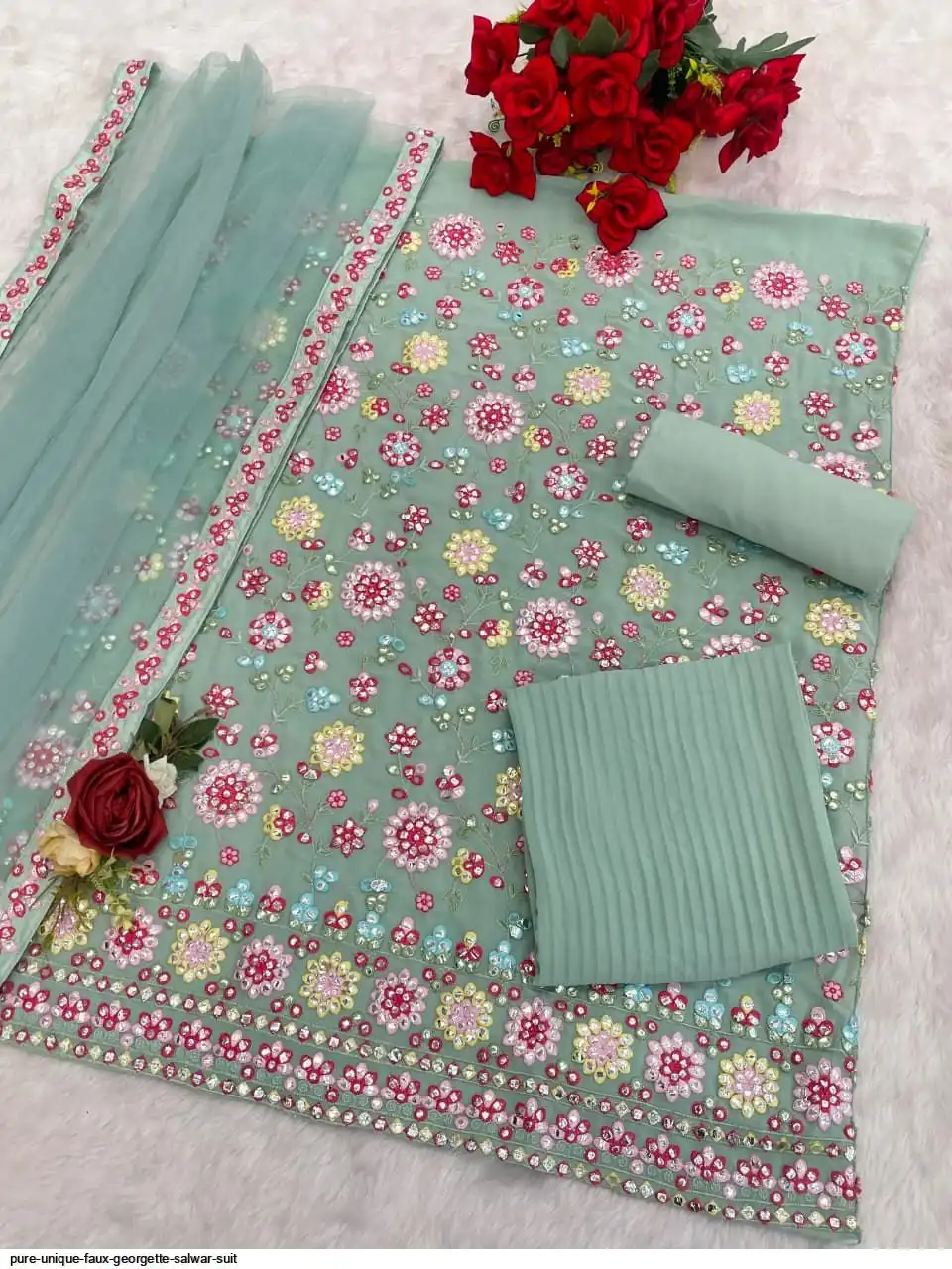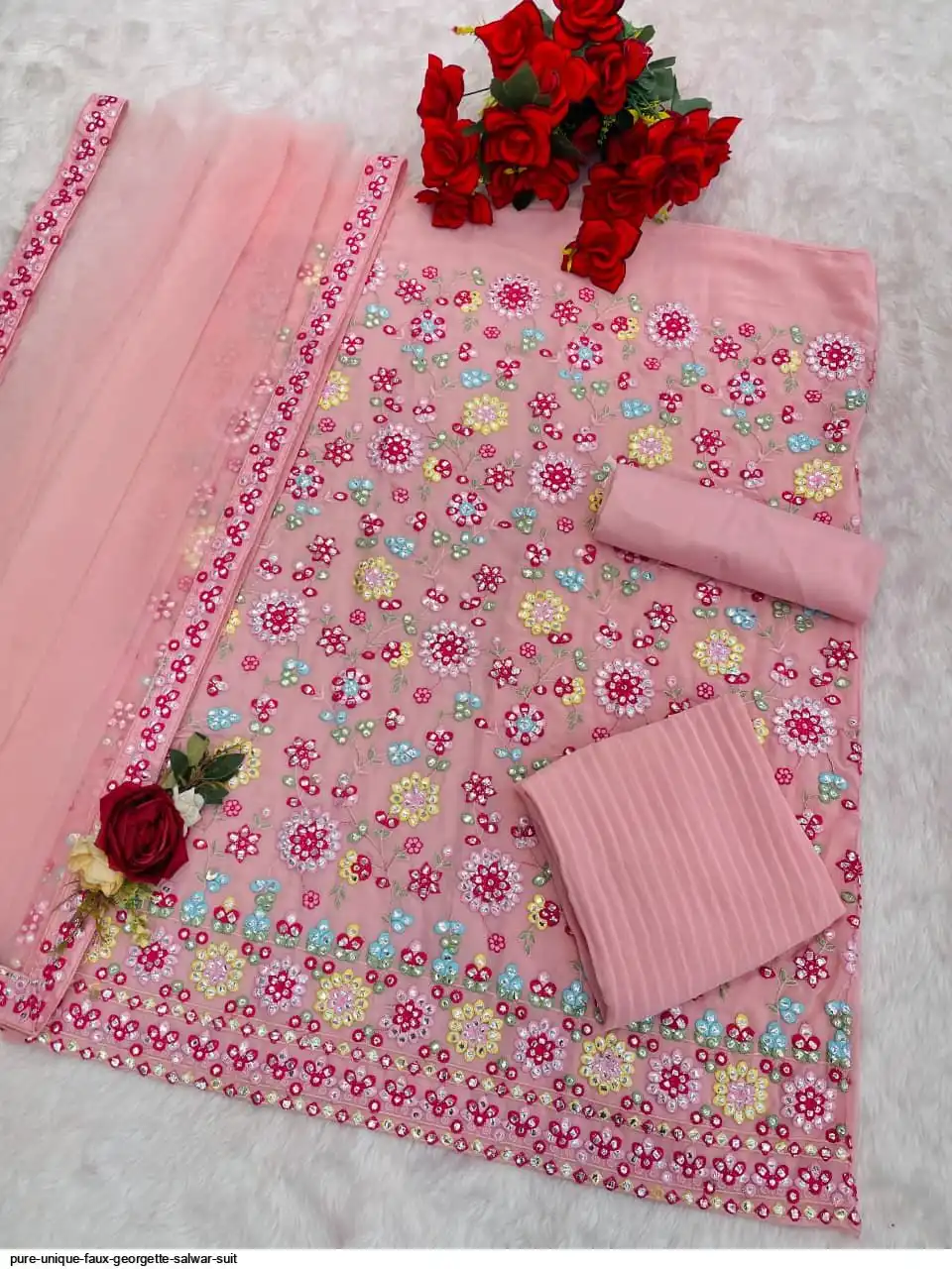 Top :- Heavy Faux Georgette With Foil Embroidery Work