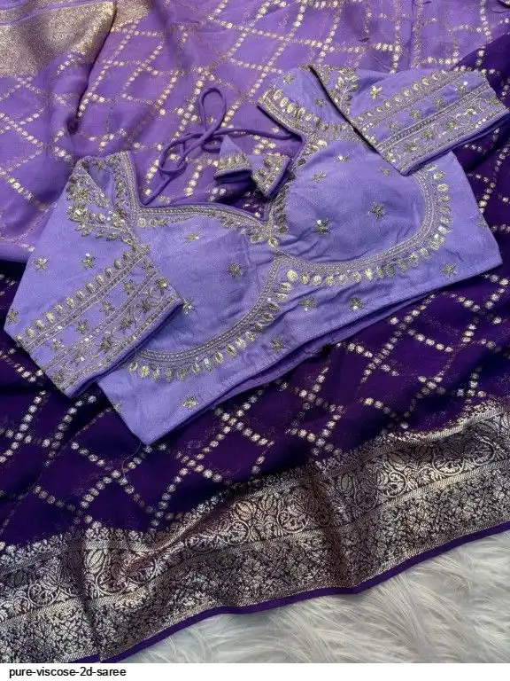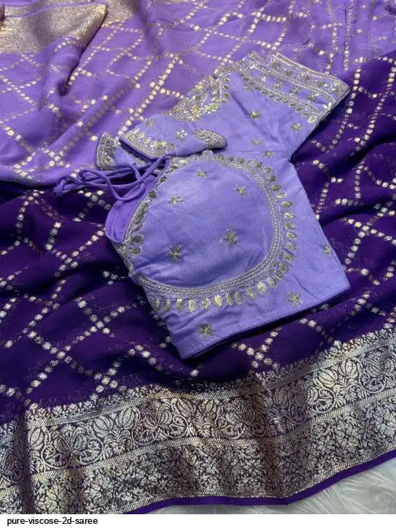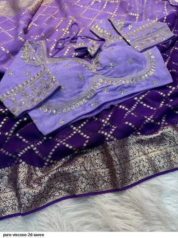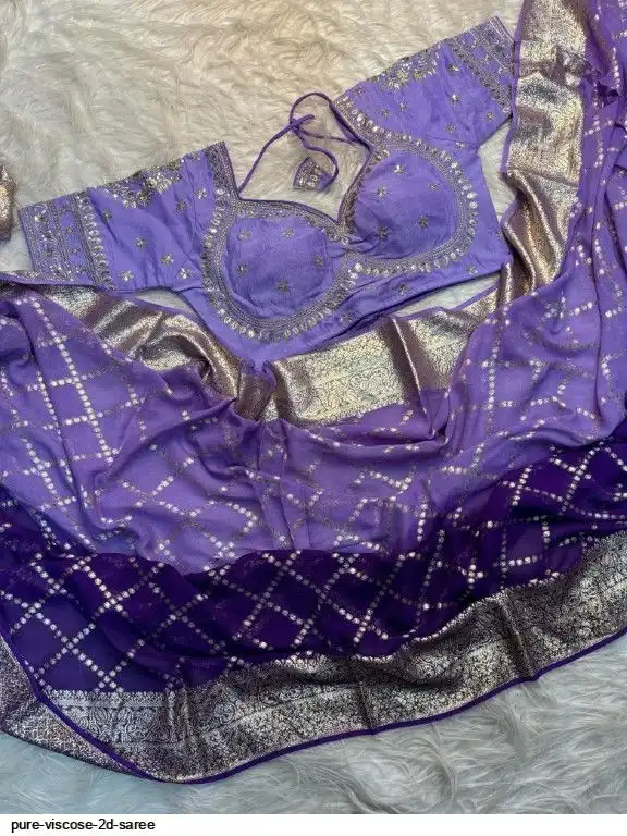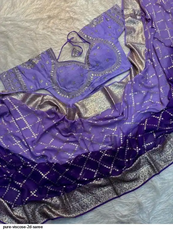 Pure viscose 2D Saree With Free Size Stich Blouse Up To 42