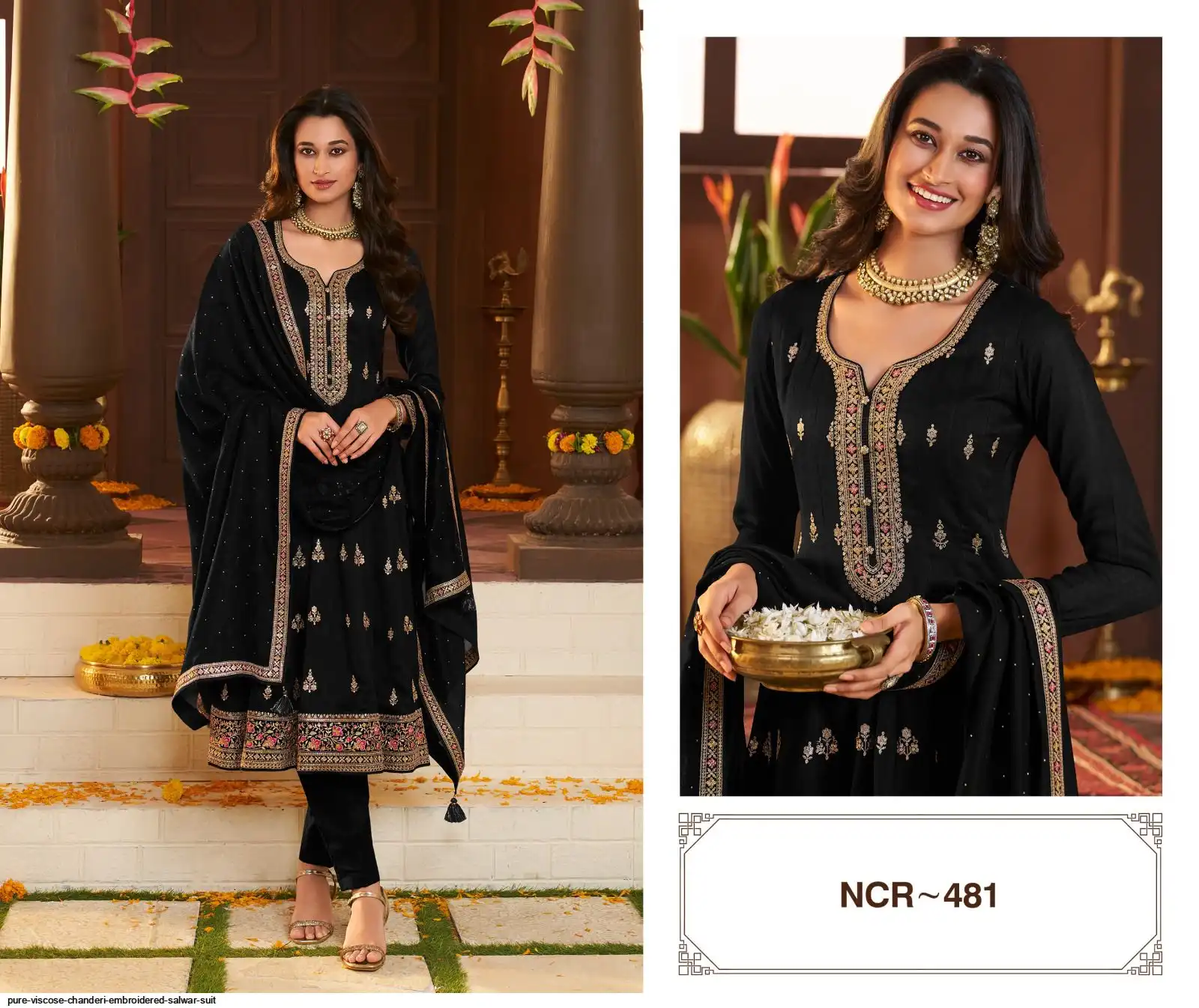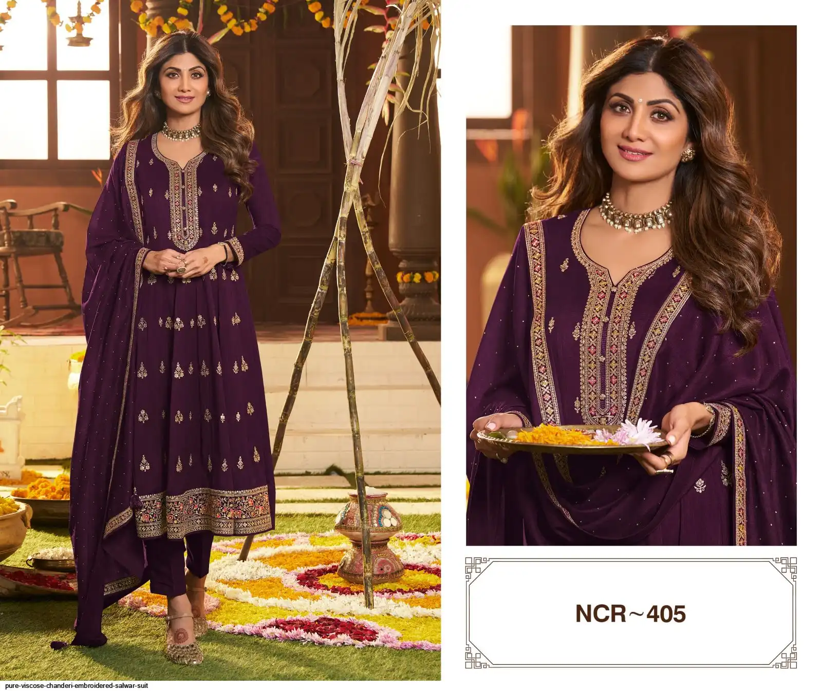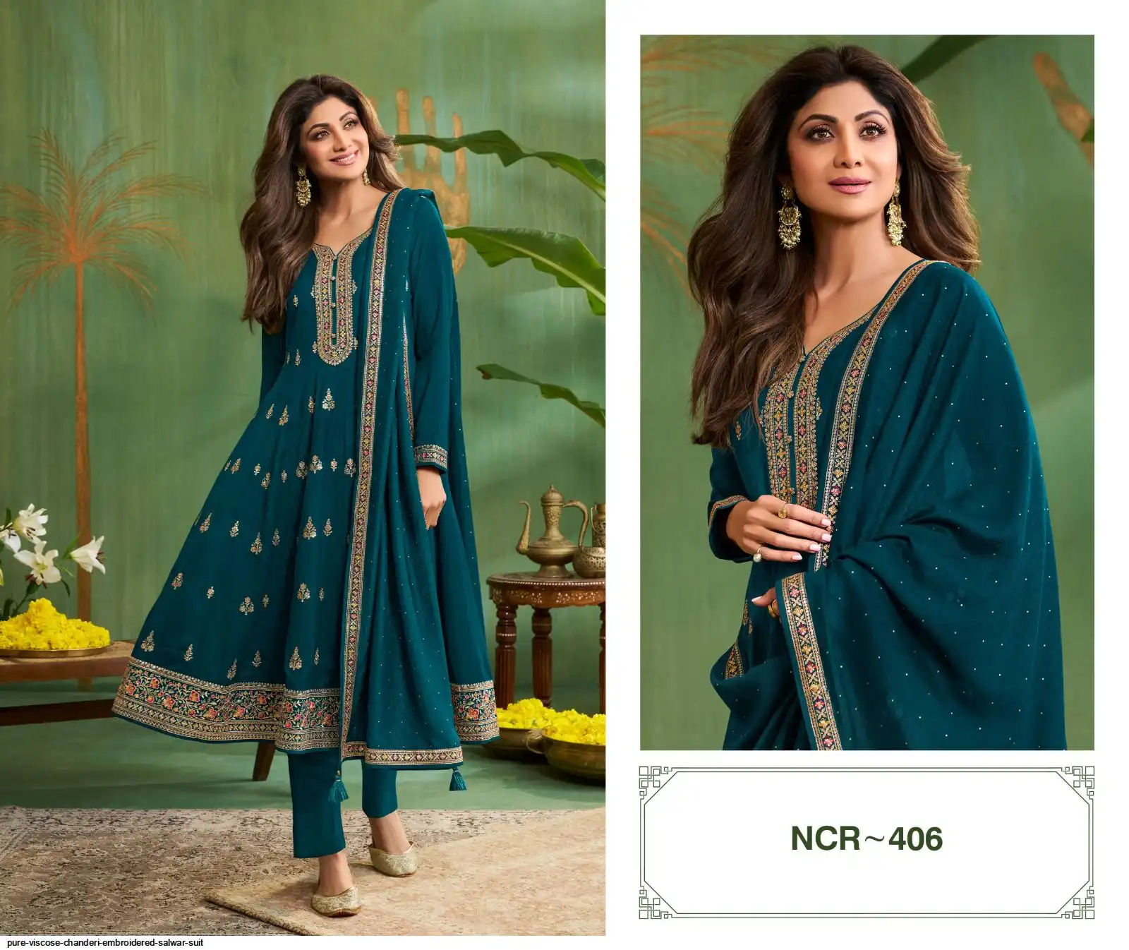 Pure Viscose chanderi zari embroidered work readymade kurta suit(set of 3)