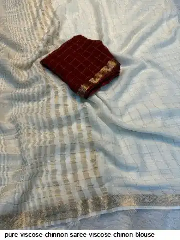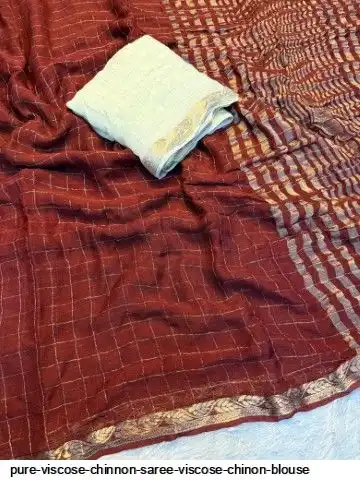 Pure Viscose Chinon Saree With Viscose contrast Blouse