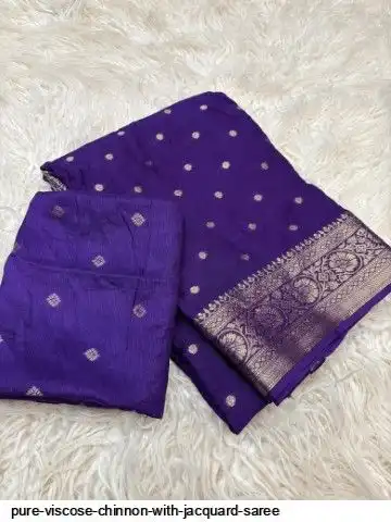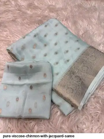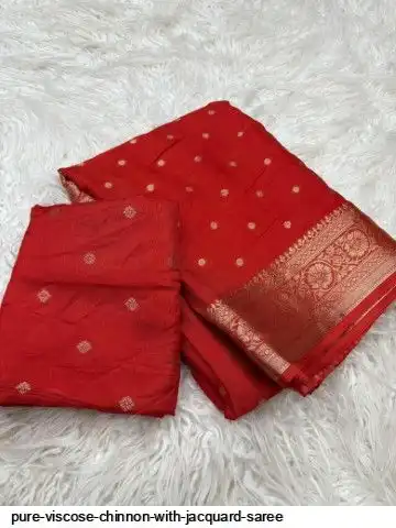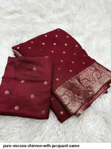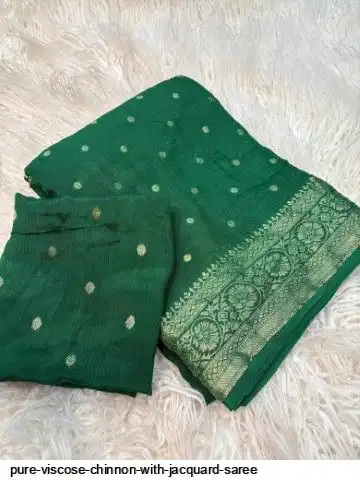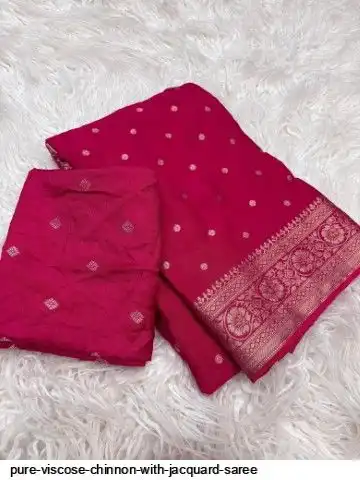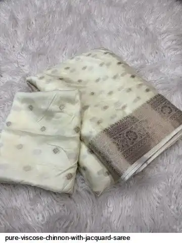 Pure viscose Chinnon saree with jacquard butti with pallu with Jacquard border