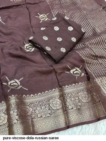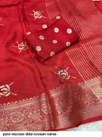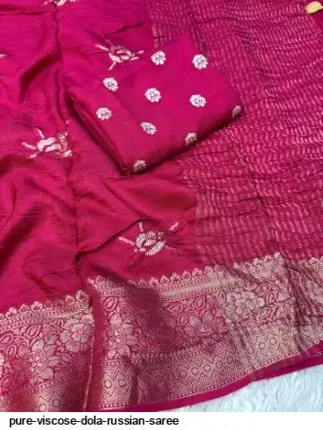 Pure viscose Russian dola saree with jacquard border with viscose thread butta worked with viscose blouse