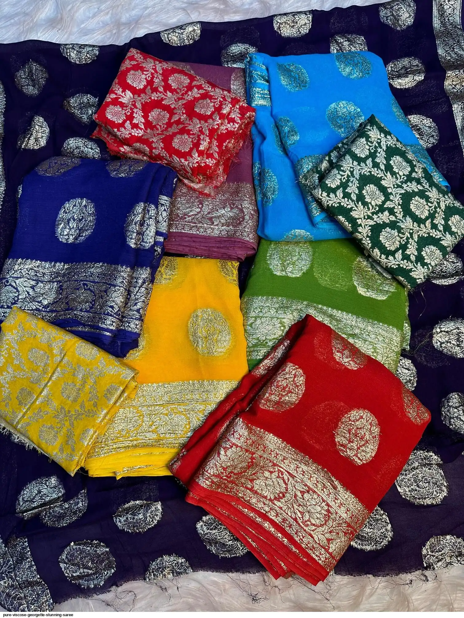 Pure Viscose Georgette Weaving Jacquard Saree With banarsi jacquard Blouse