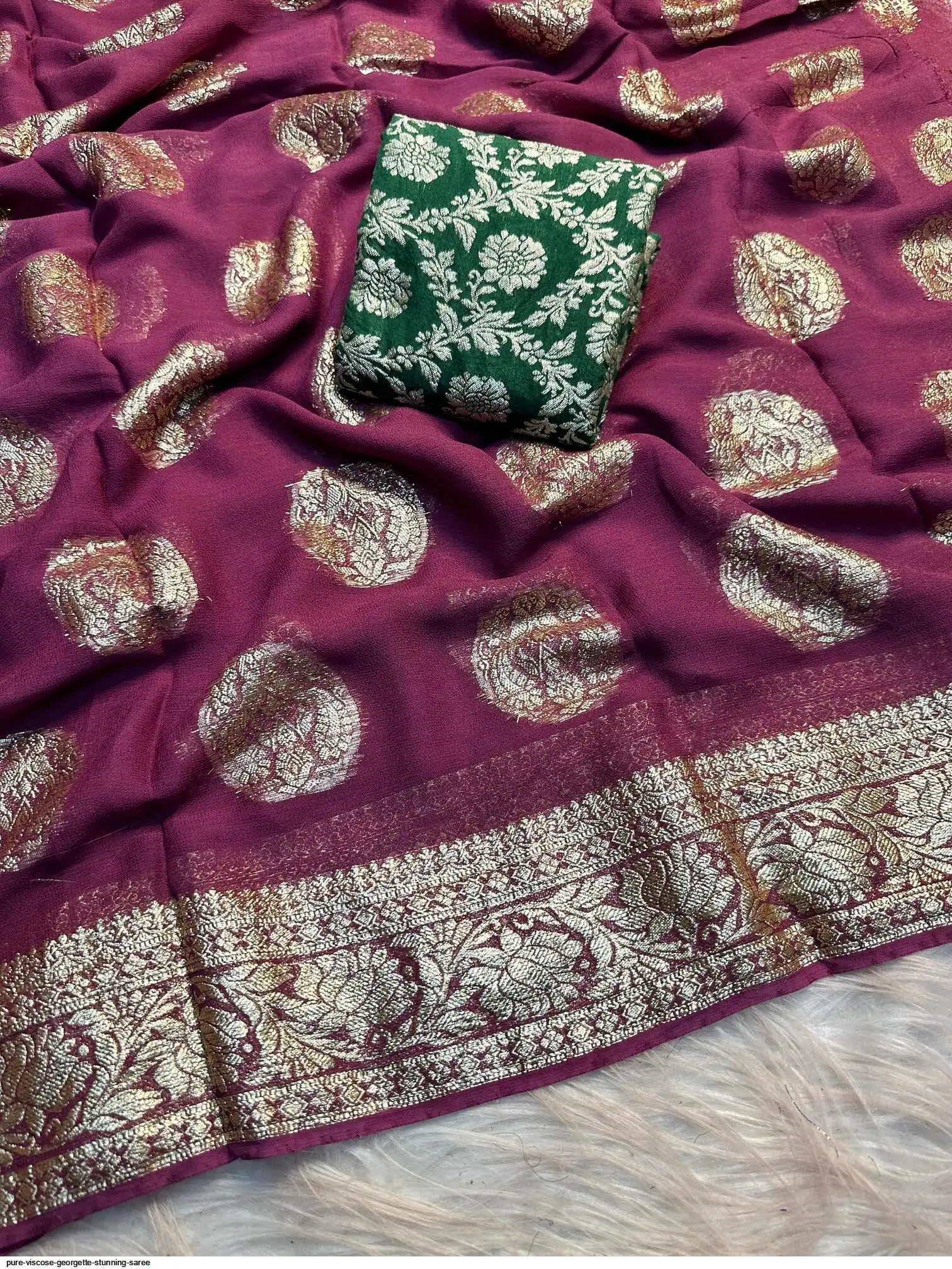 Pure Viscose Georgette Weaving Jacquard Saree With banarsi jacquard Blouse