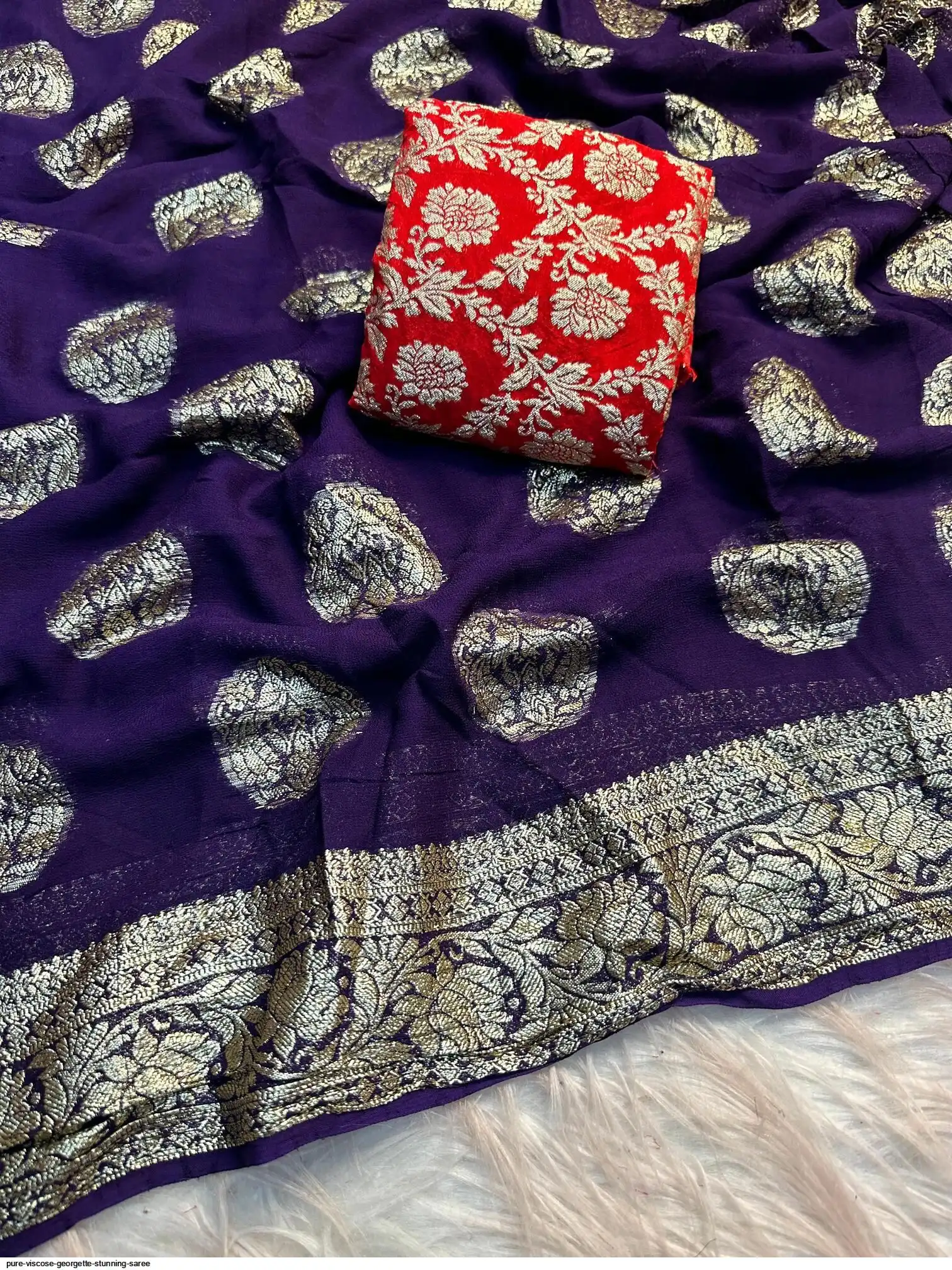Pure Viscose Georgette Weaving Jacquard Saree With banarsi jacquard Blouse