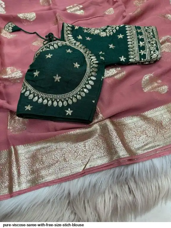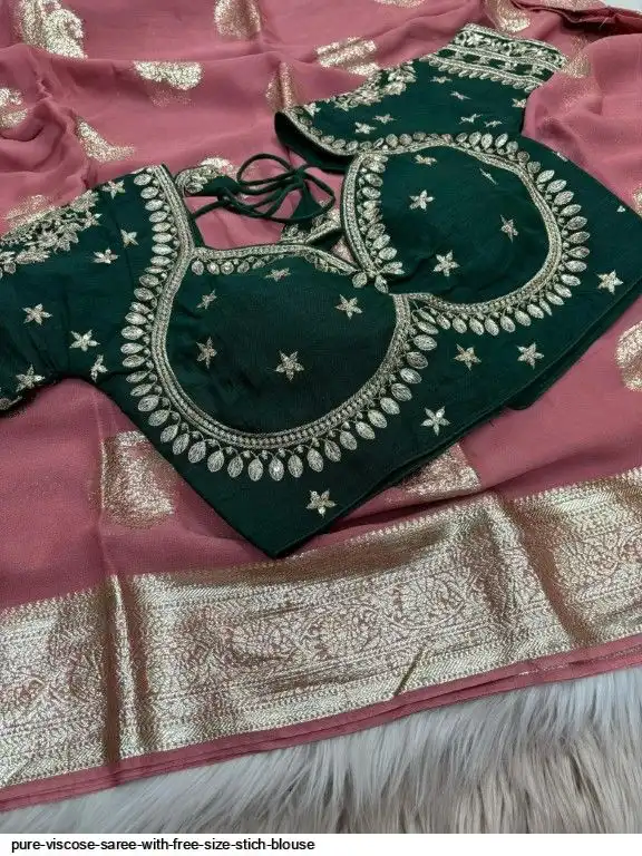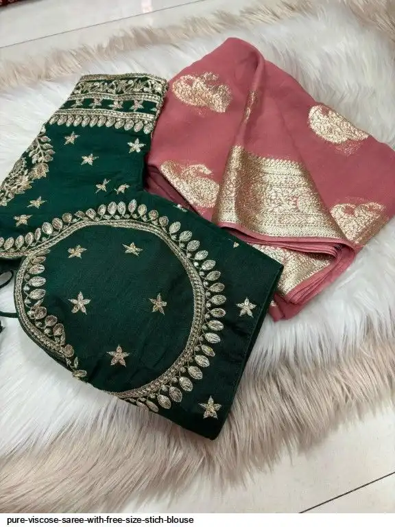 Pure viscose Saree With Free Size Stich Blouse Up To 42