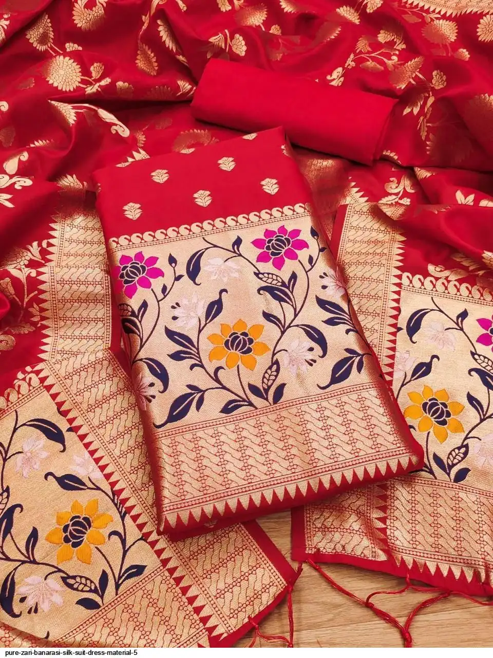 ▪ Top:- Pure zari soft Banarasi silk 3 MTR Approx (incl. 0.40 mtr sleeve)