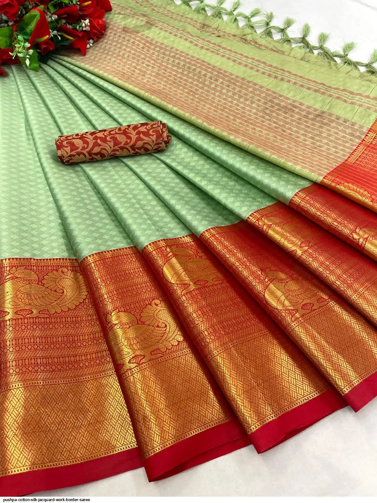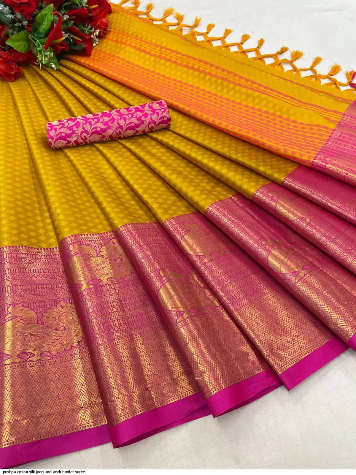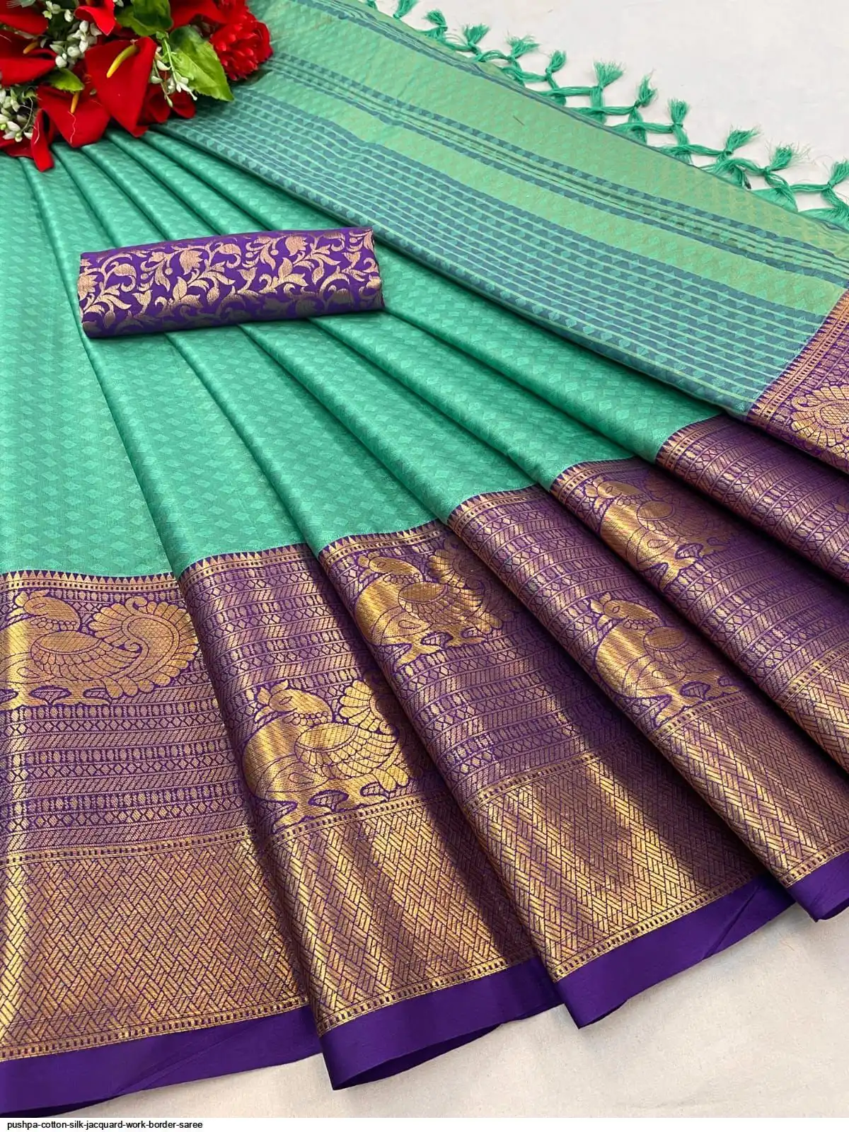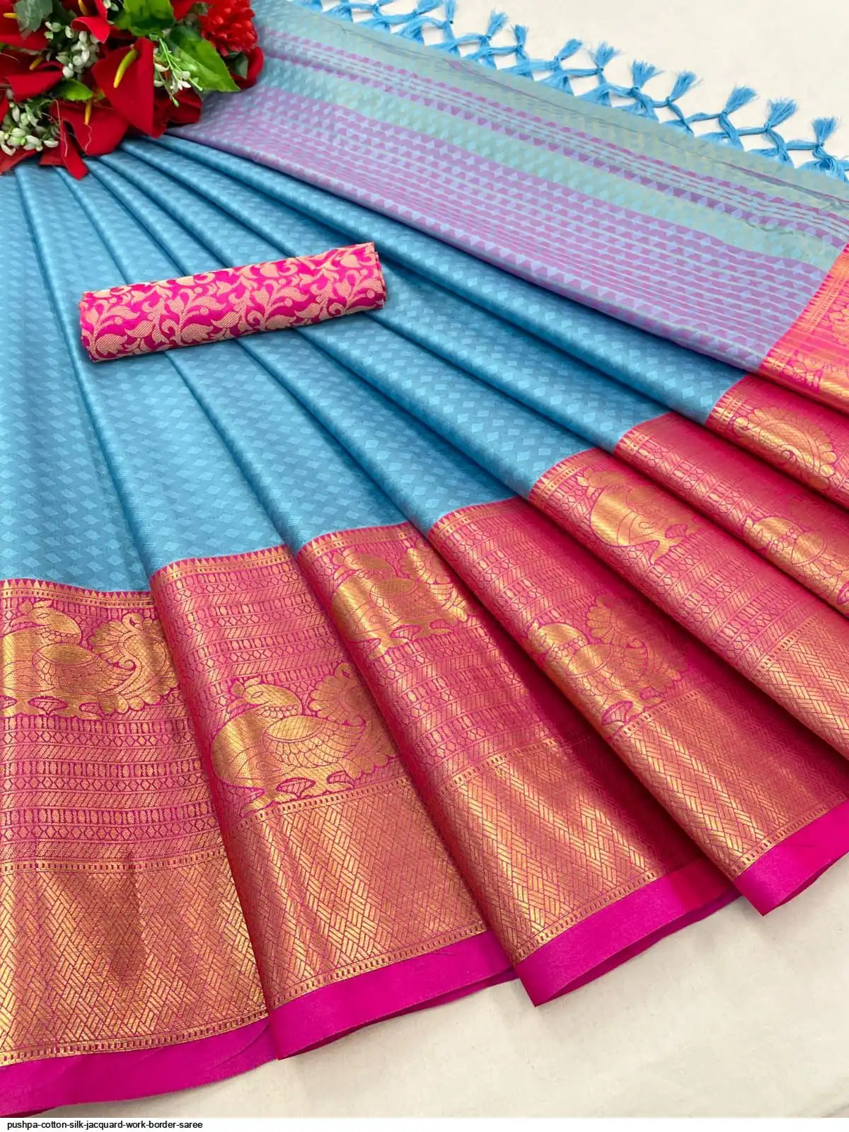 Fabric: Aura Cotton Silk with Broad contrast jacquard work border with Jacquard blouse*