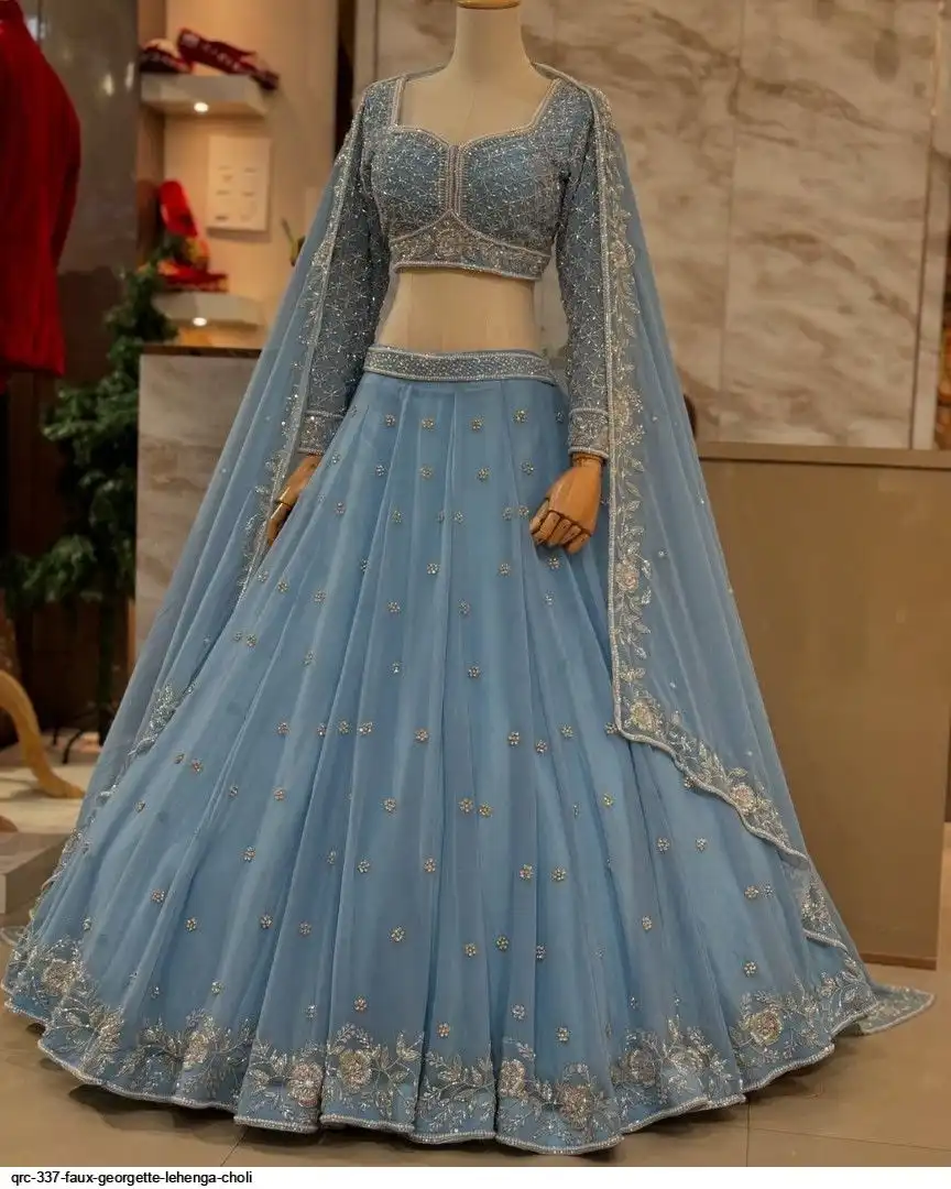 Work : thread with Sequence with rivet moti with four side fancy lace border