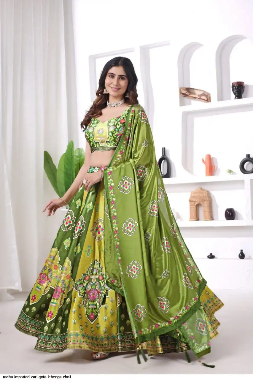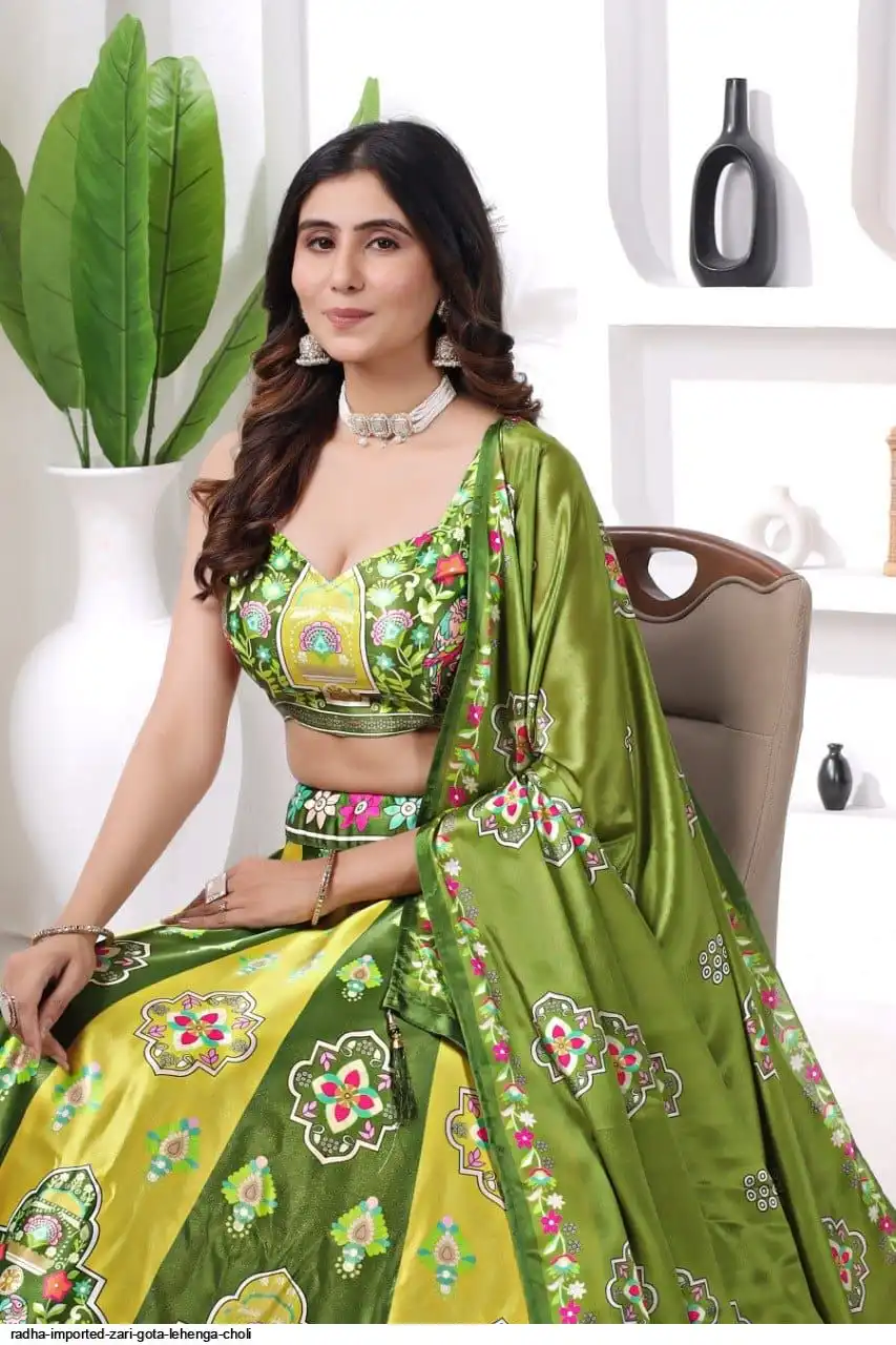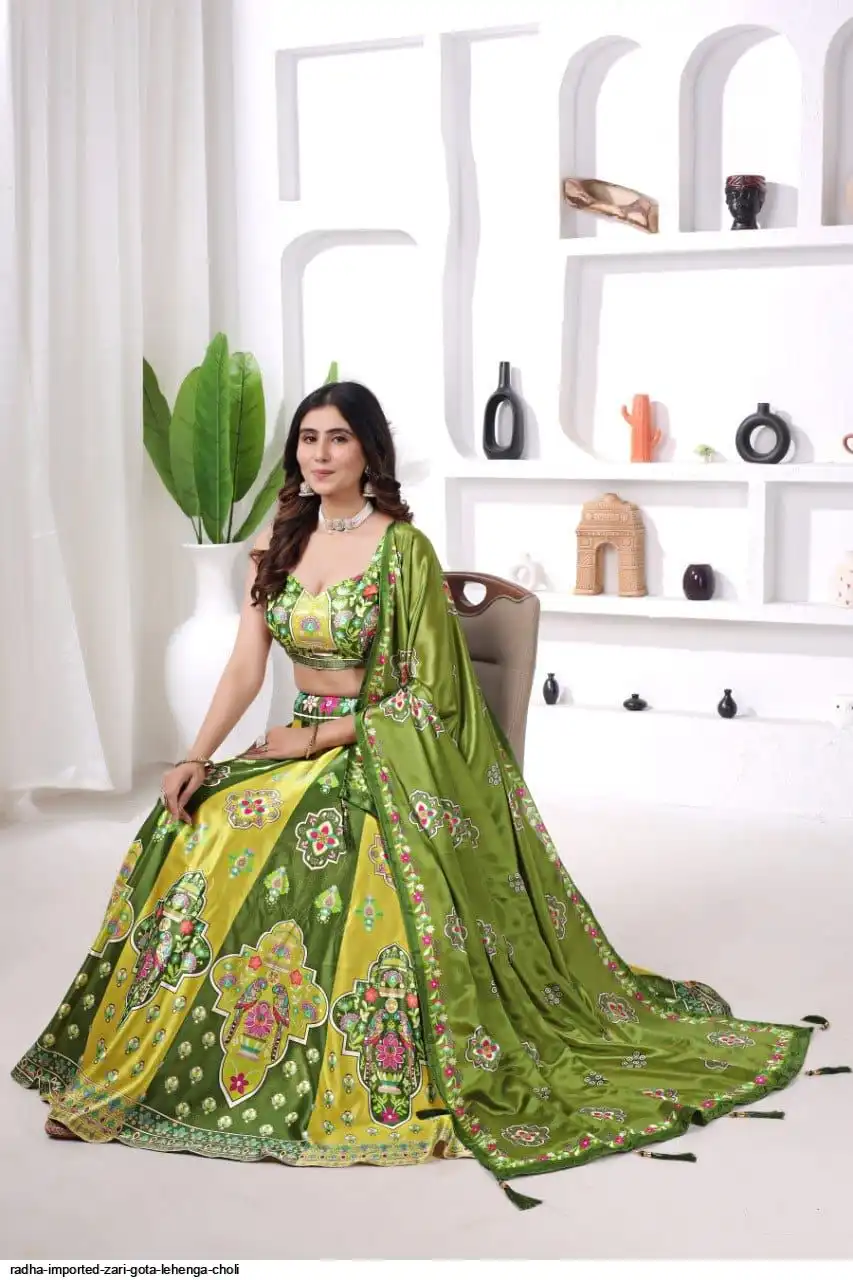 *Bollywood Style Mehndi & Haldi ka Special Lehenga Collection Digital Printed Attractive Wedding & Party Wear & Sider Wear Fully Stiched Lehenga choli has a Regular-fit and is Made From High-Grade Imported Zari Fabrics With Can Can With Chinon Printed Duptta With Fancy Latkan And Yarn.
