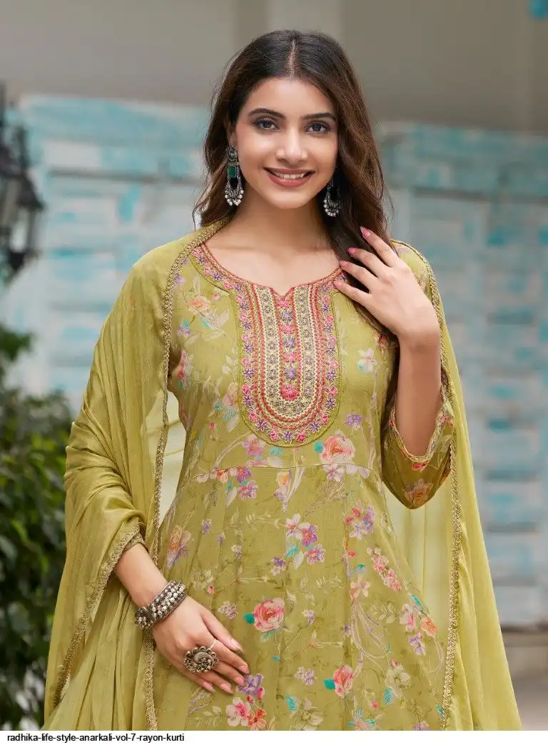 Fabrics - *HEAVY RaYON FOIL PRINT WITH EMBROIDERY WORK *