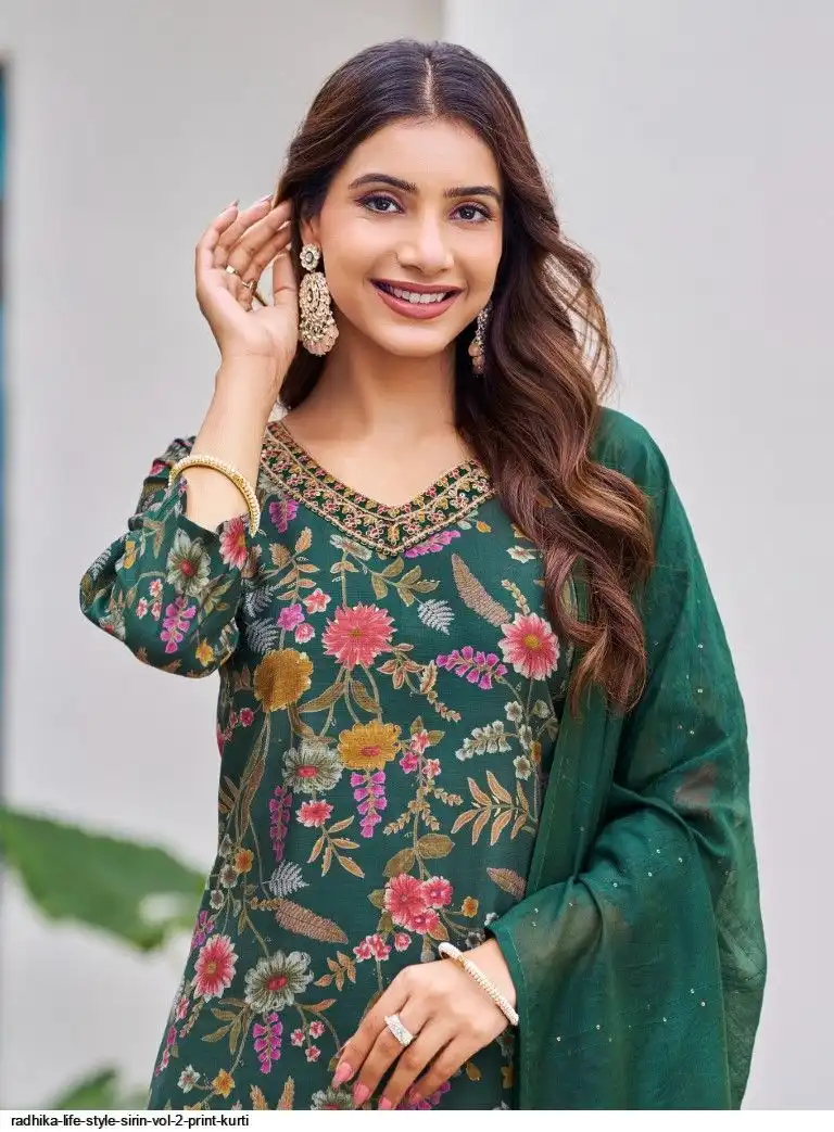 Fabrics:TOP & PANT VERTICAN FOIL PRINT WITH EMBROIDERY WORK