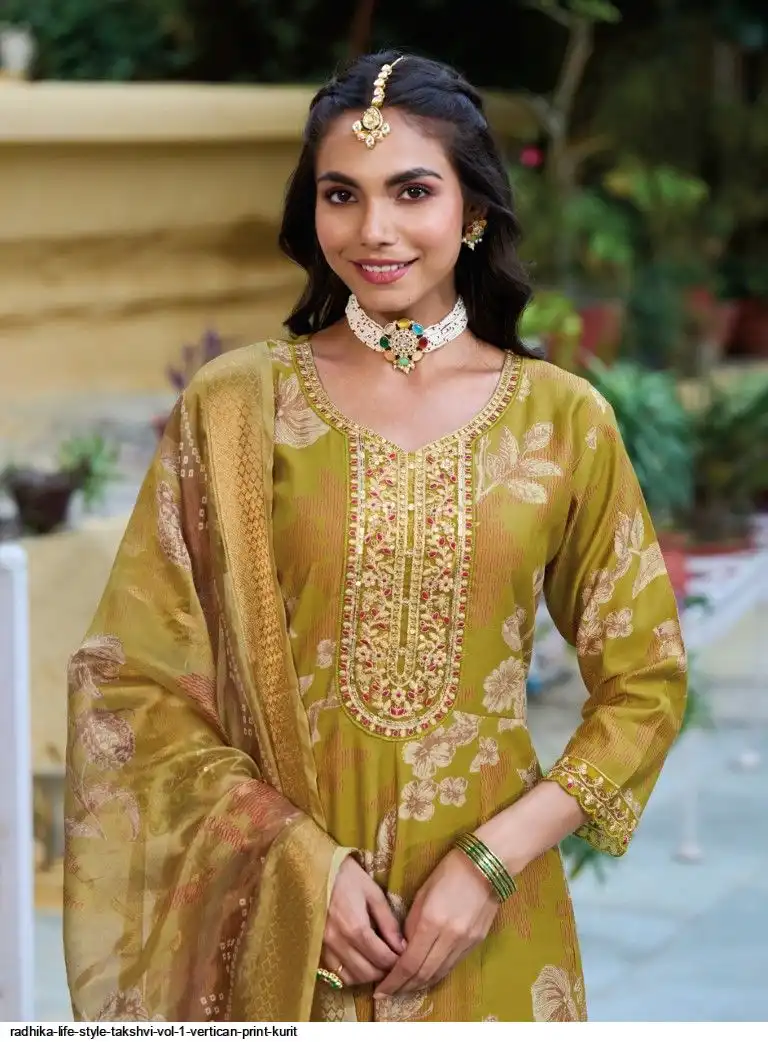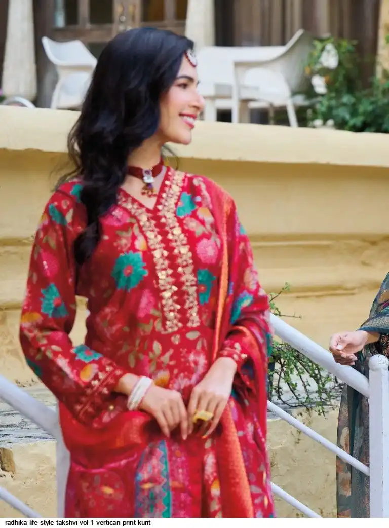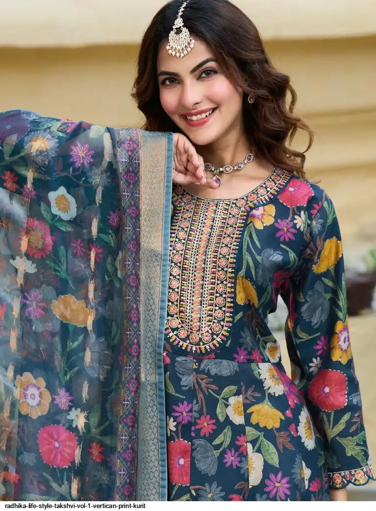 Fabrics - VERTICAN PRINT WITH EMBROIDERY WORK