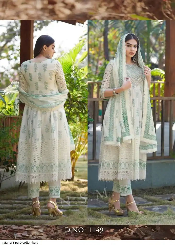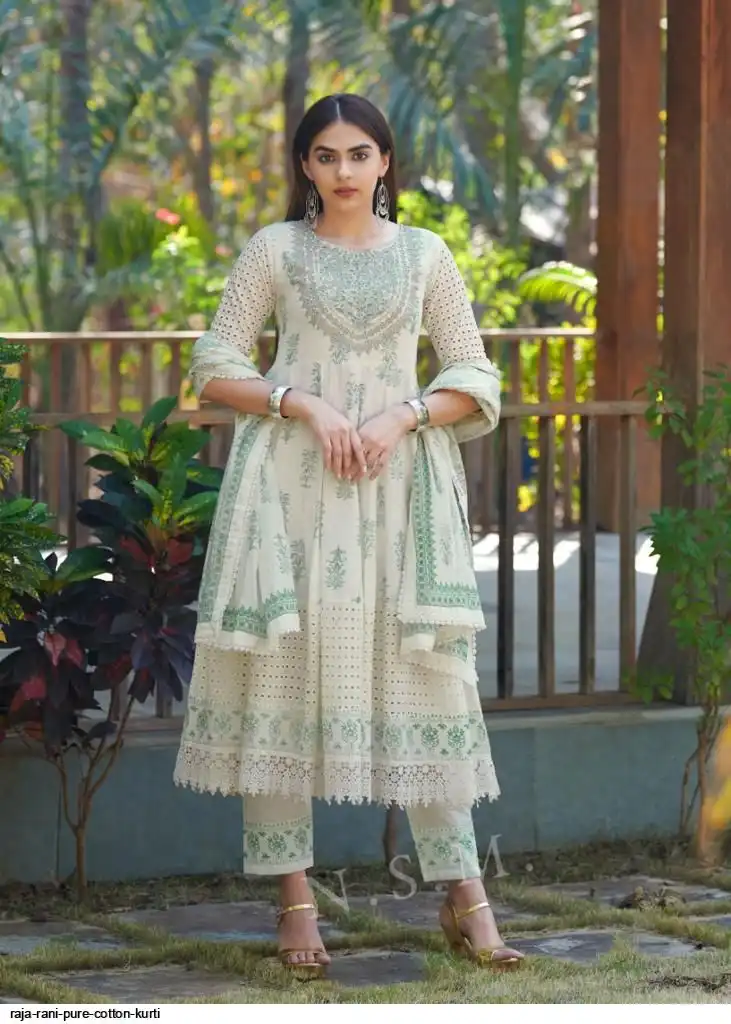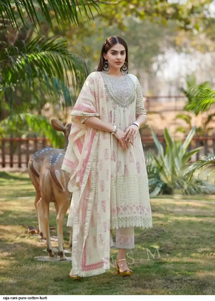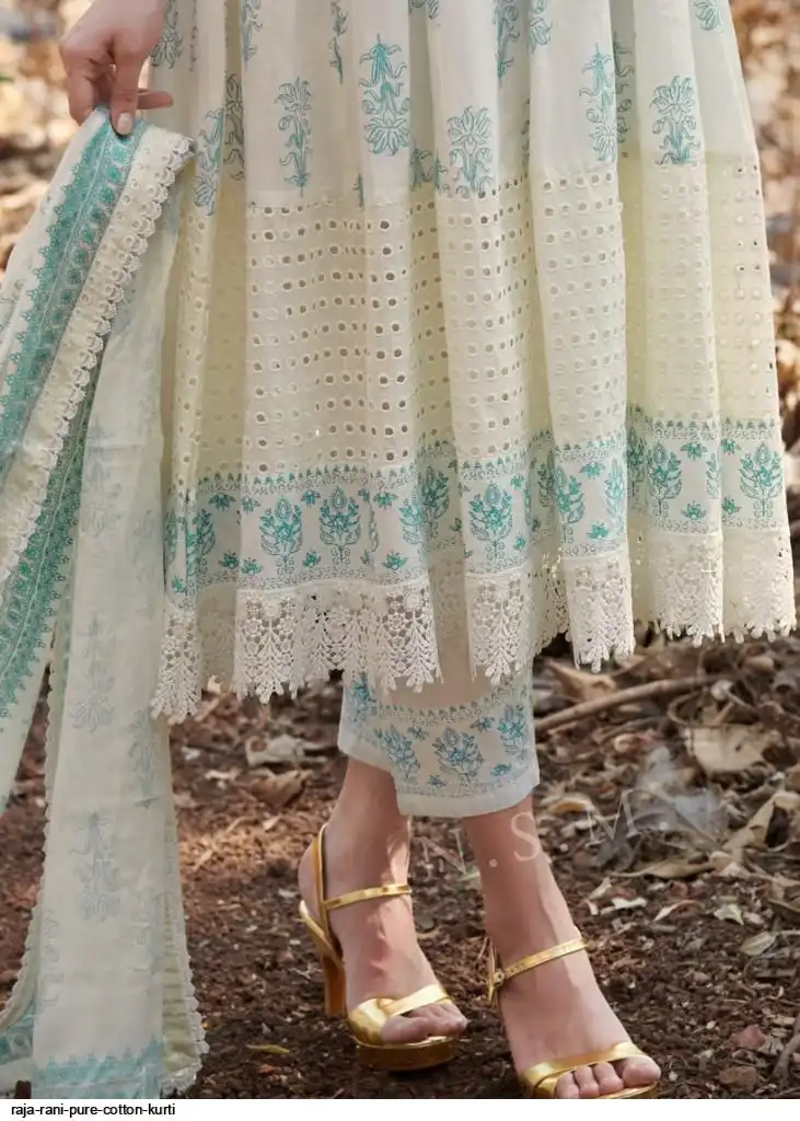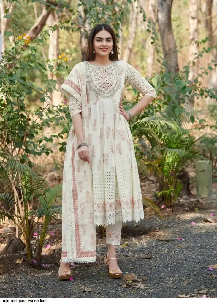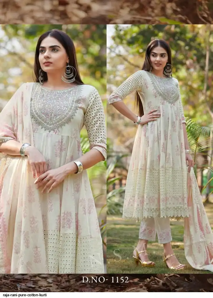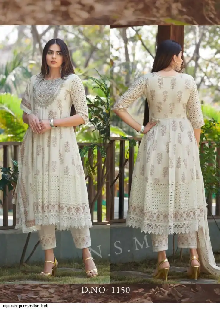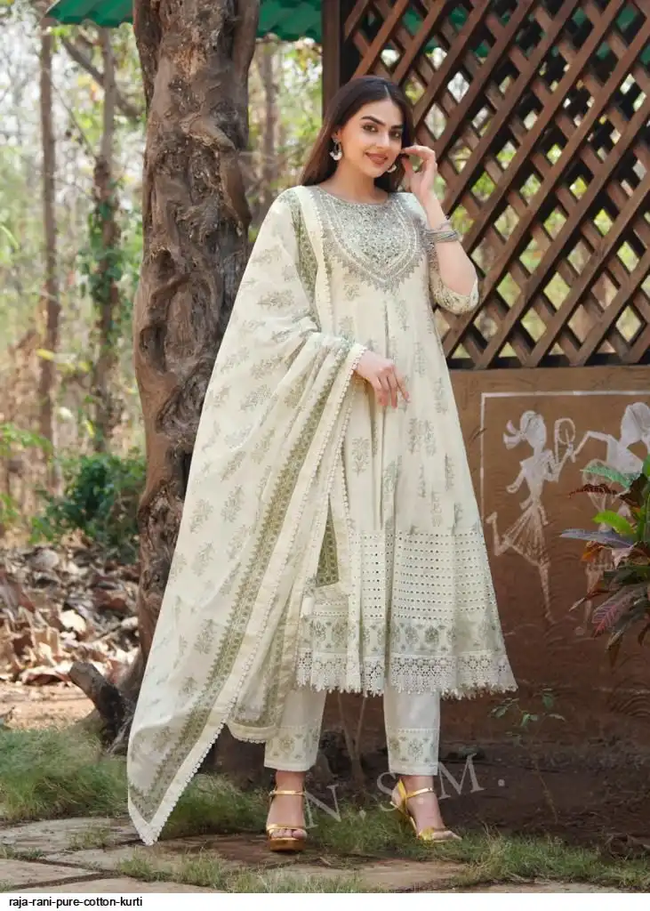 TOP- HEAVY EMBROIDERY NACK WORK WITH PURE COTTON PRINT ANARKALI STYLE WITH SHIFFLI PANEL WORK