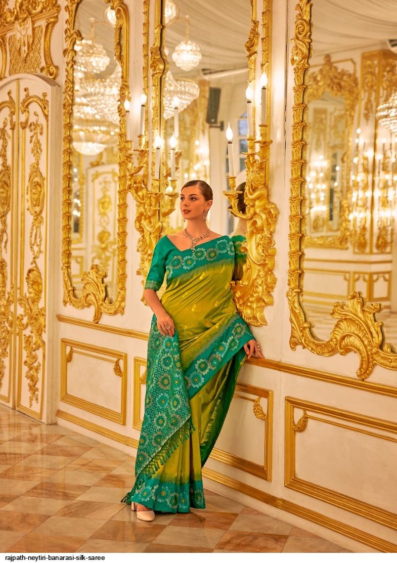 Saree Fabric : Banarasi Silk Weaving With Contrast Pallu Or Border