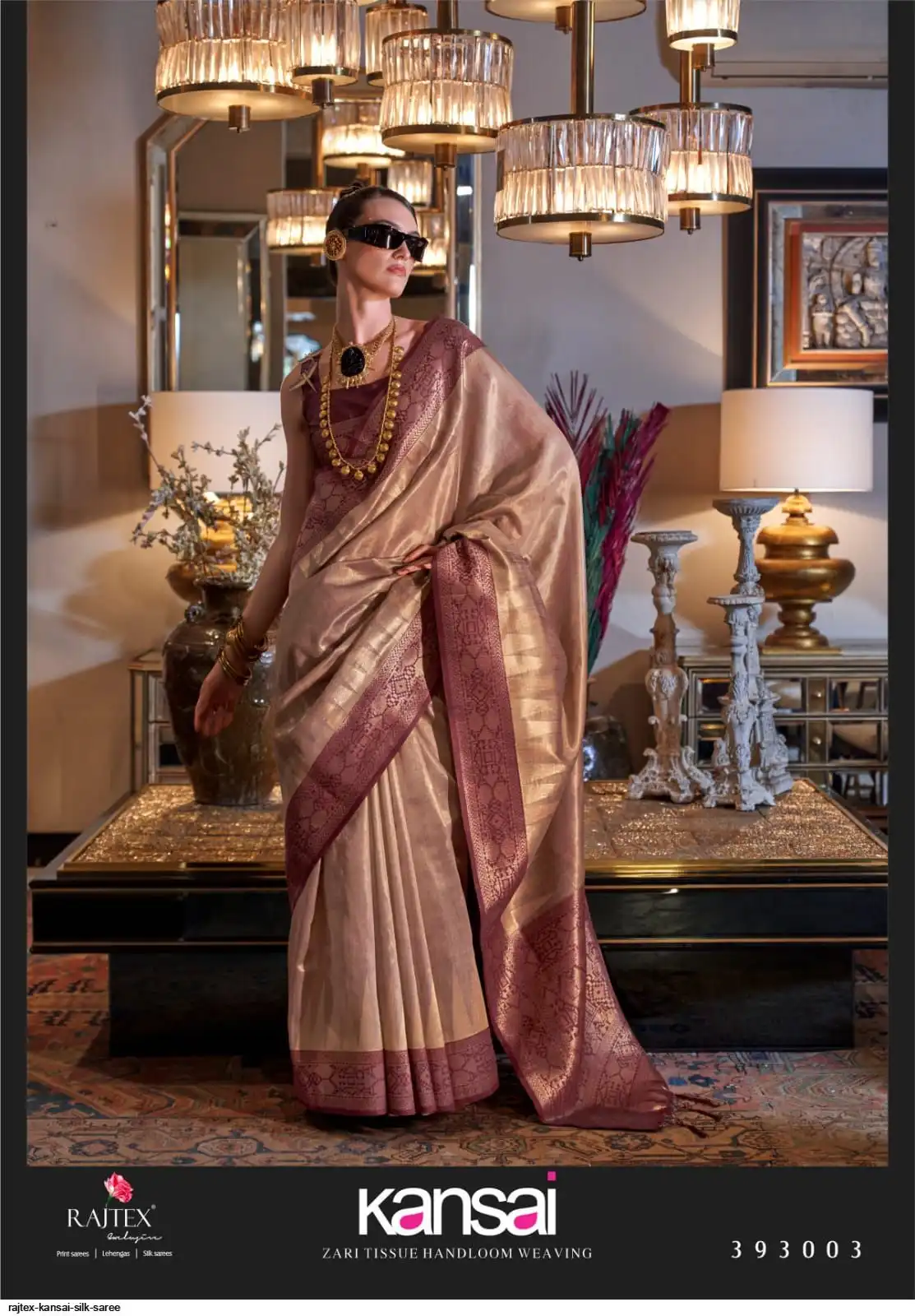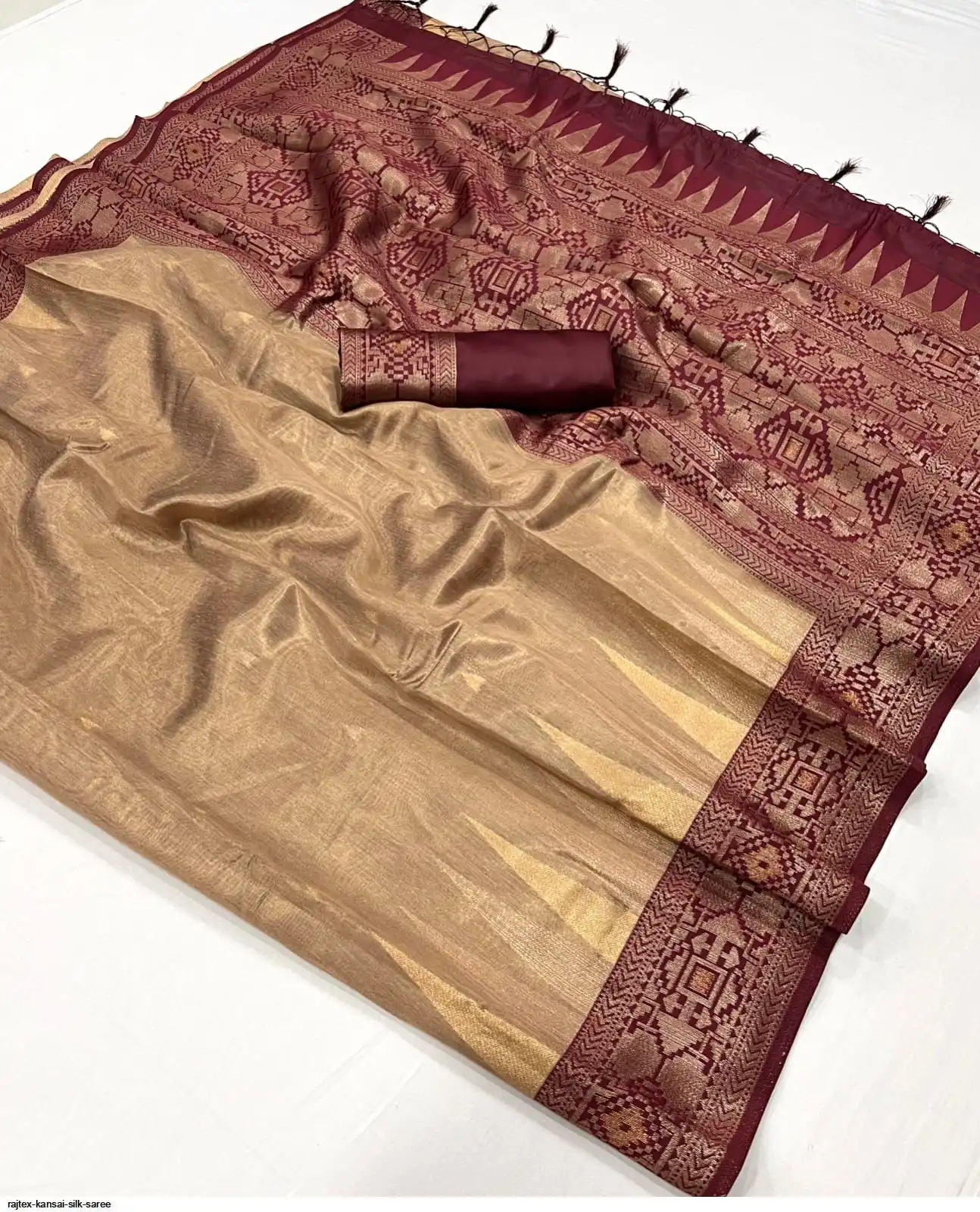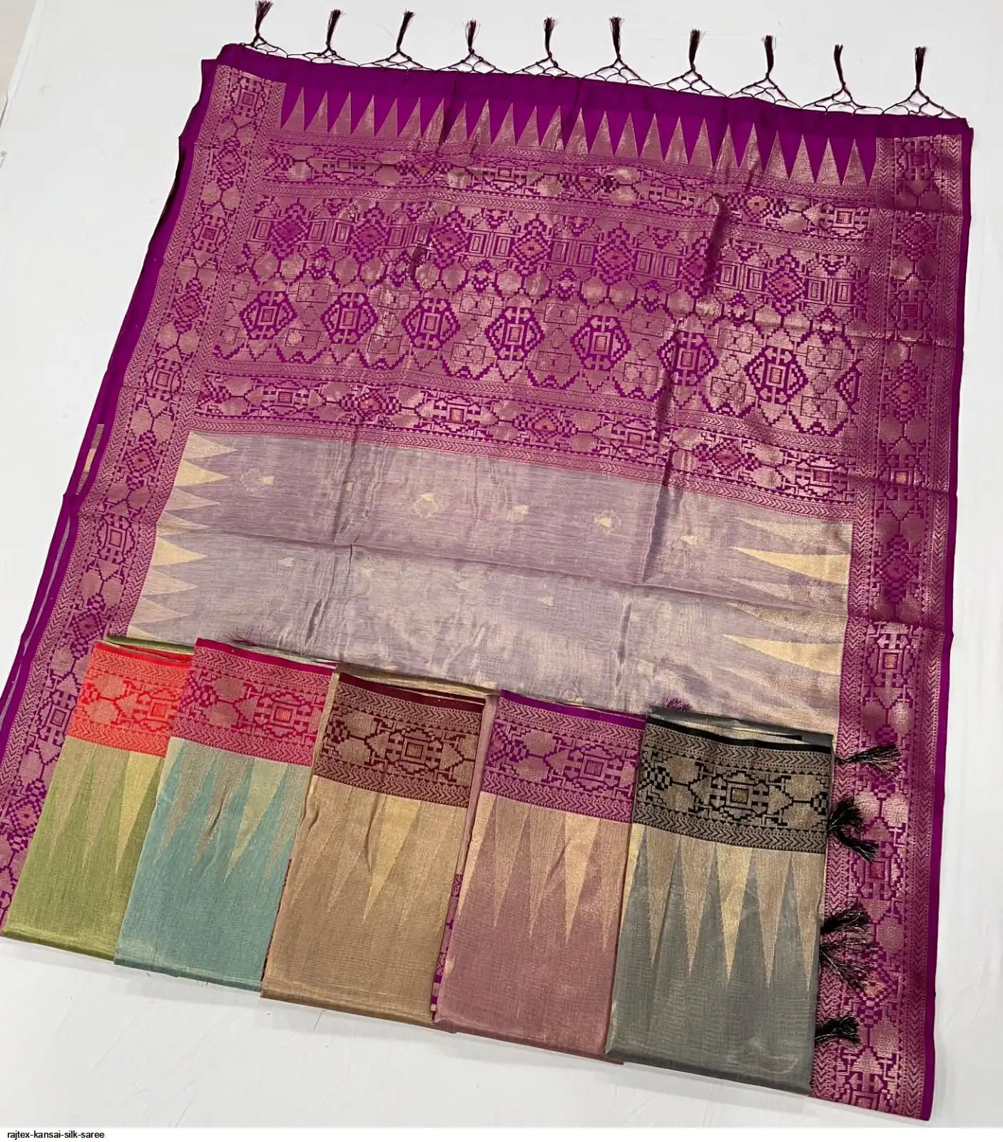 Fabric- HANDWOVEN ZARI TISSUE SILK - CONTRAST PALLU & BLOUSE