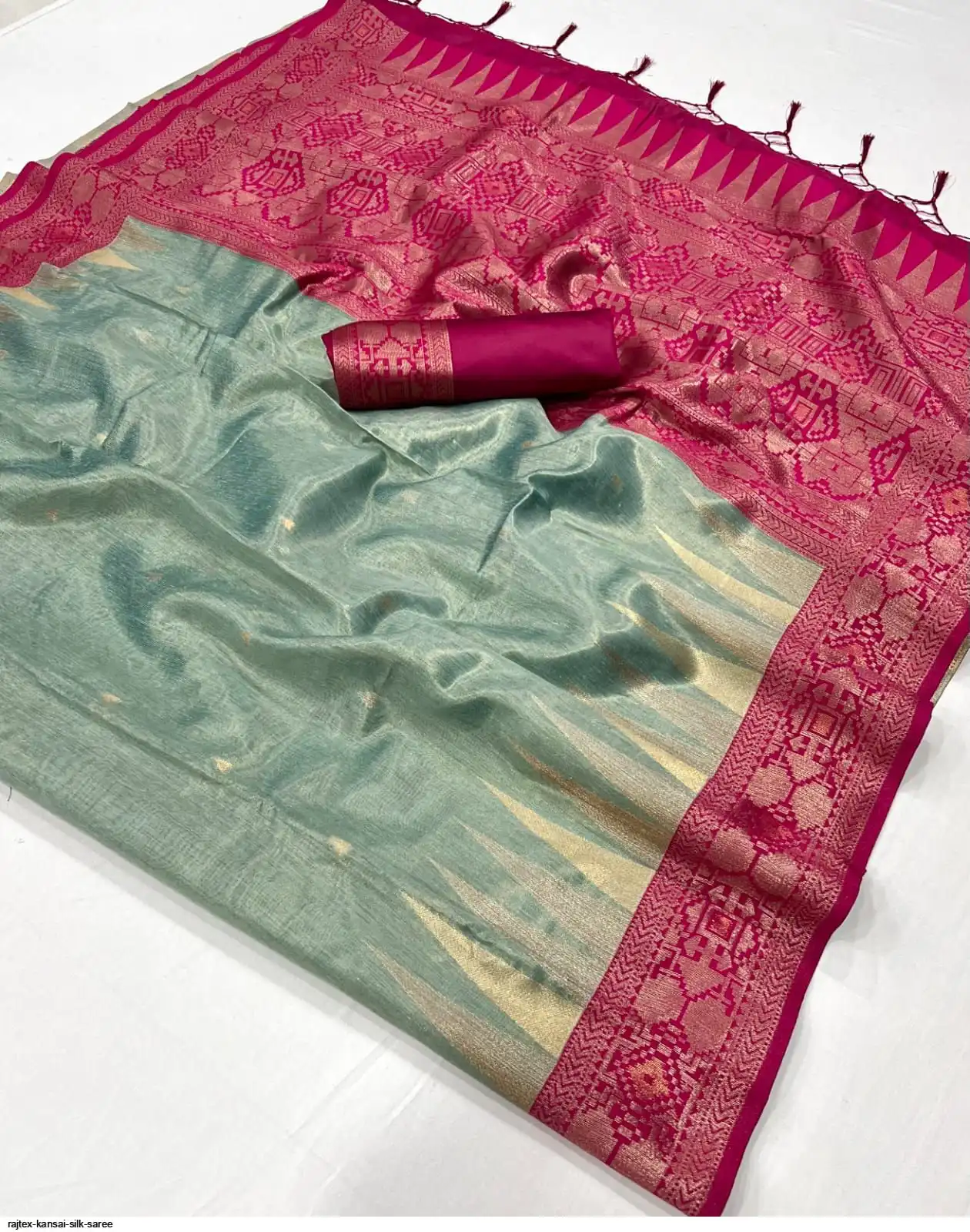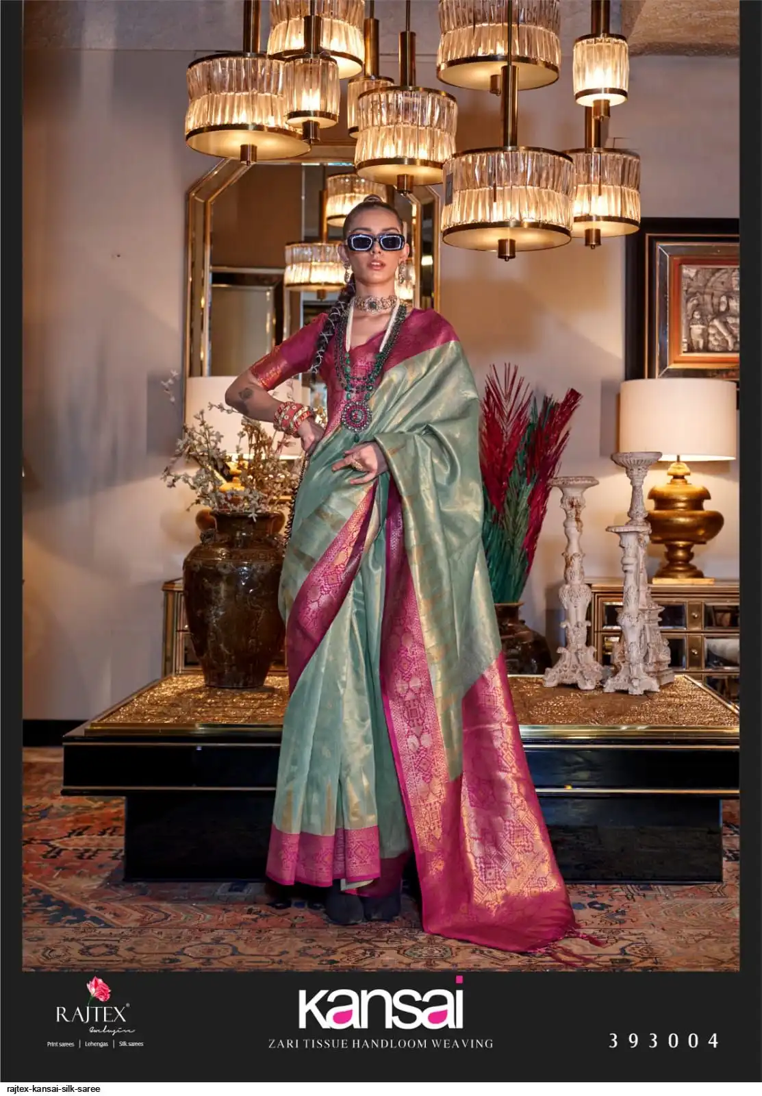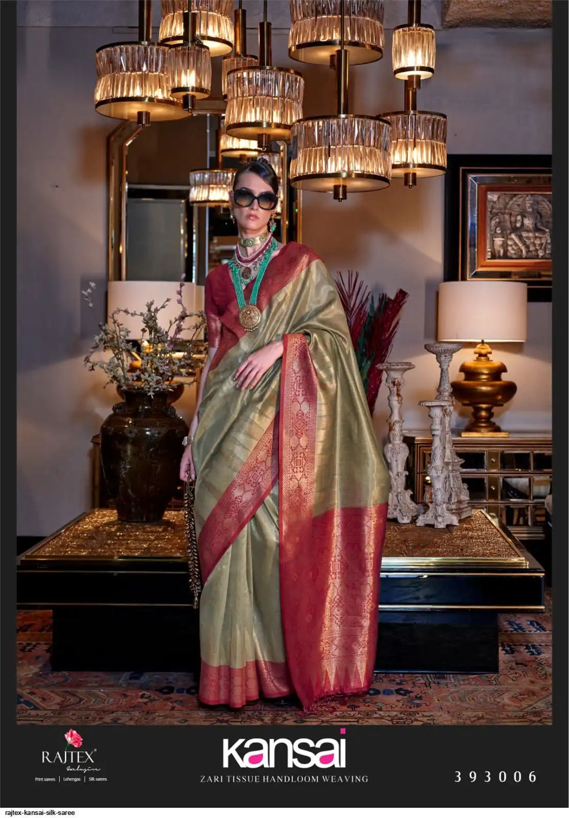 Fabric- HANDWOVEN ZARI TISSUE SILK - CONTRAST PALLU & BLOUSE