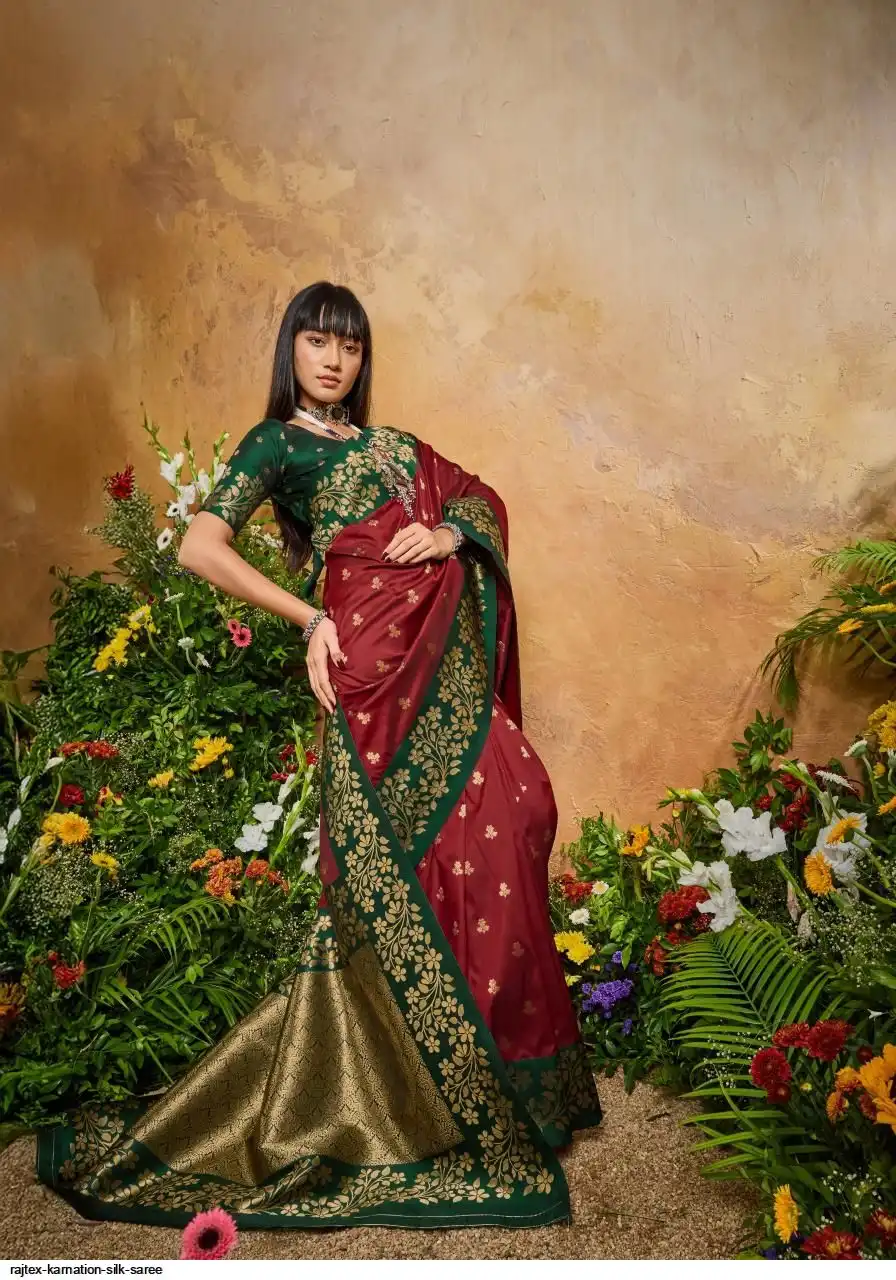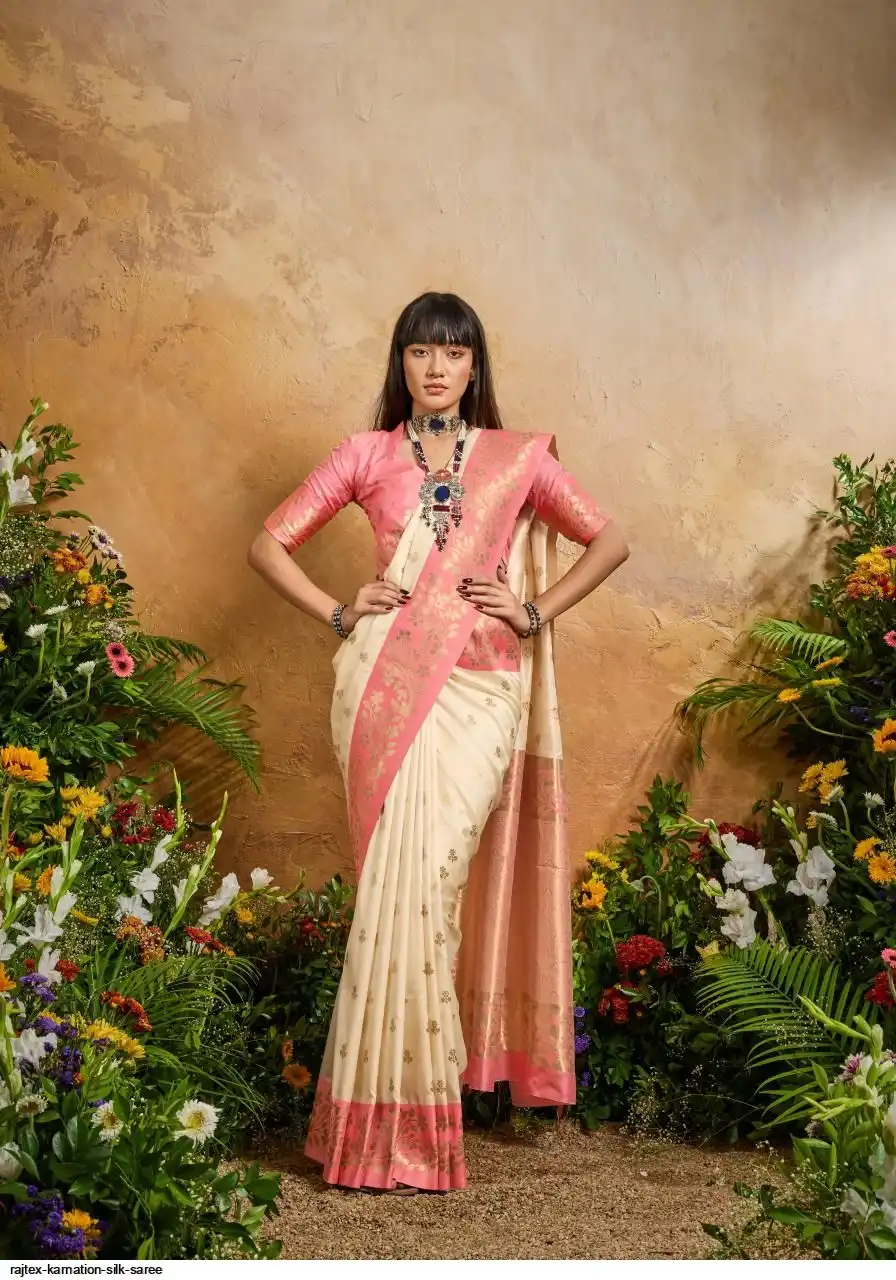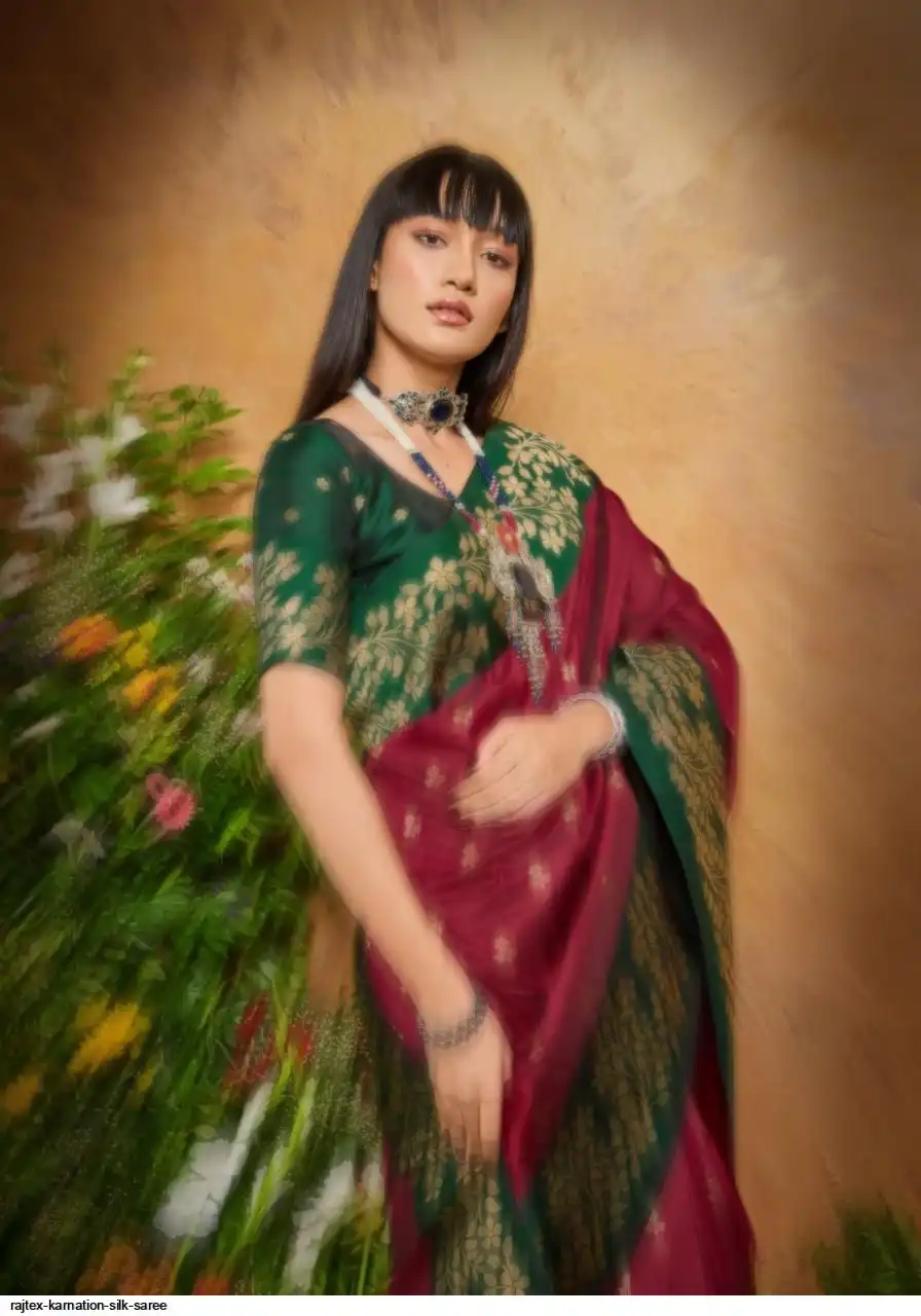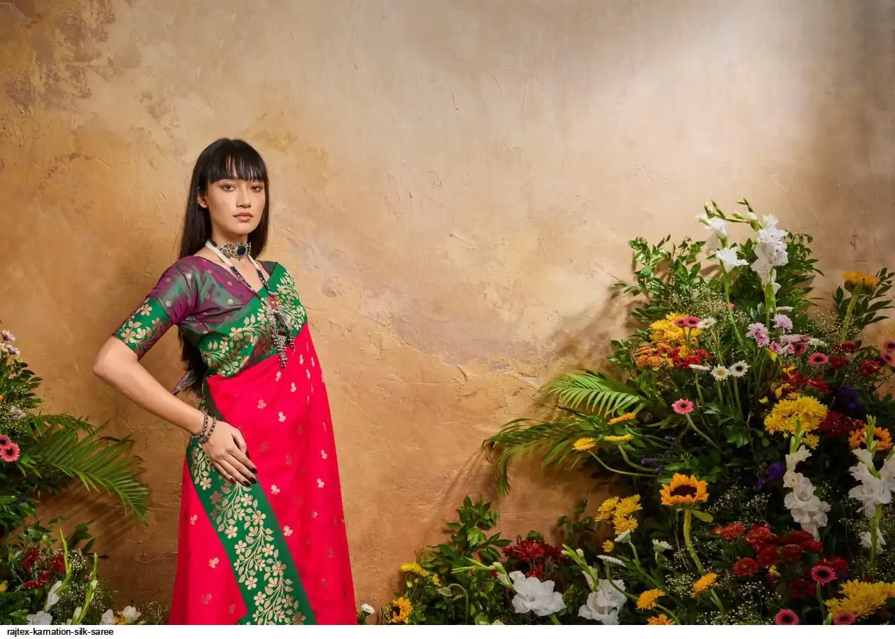 Blouse: Handloom Weaving Silk With Contrast Blouse