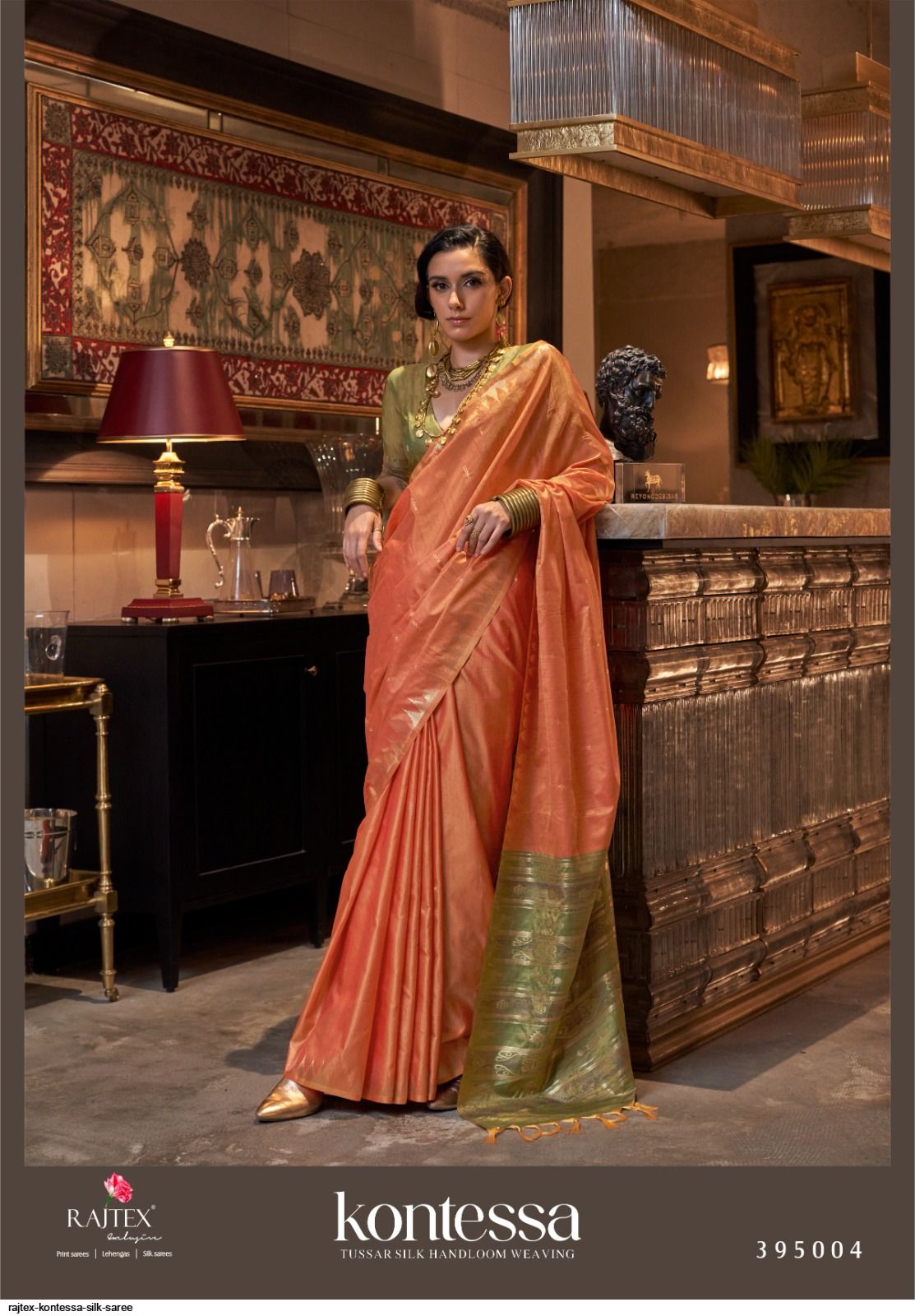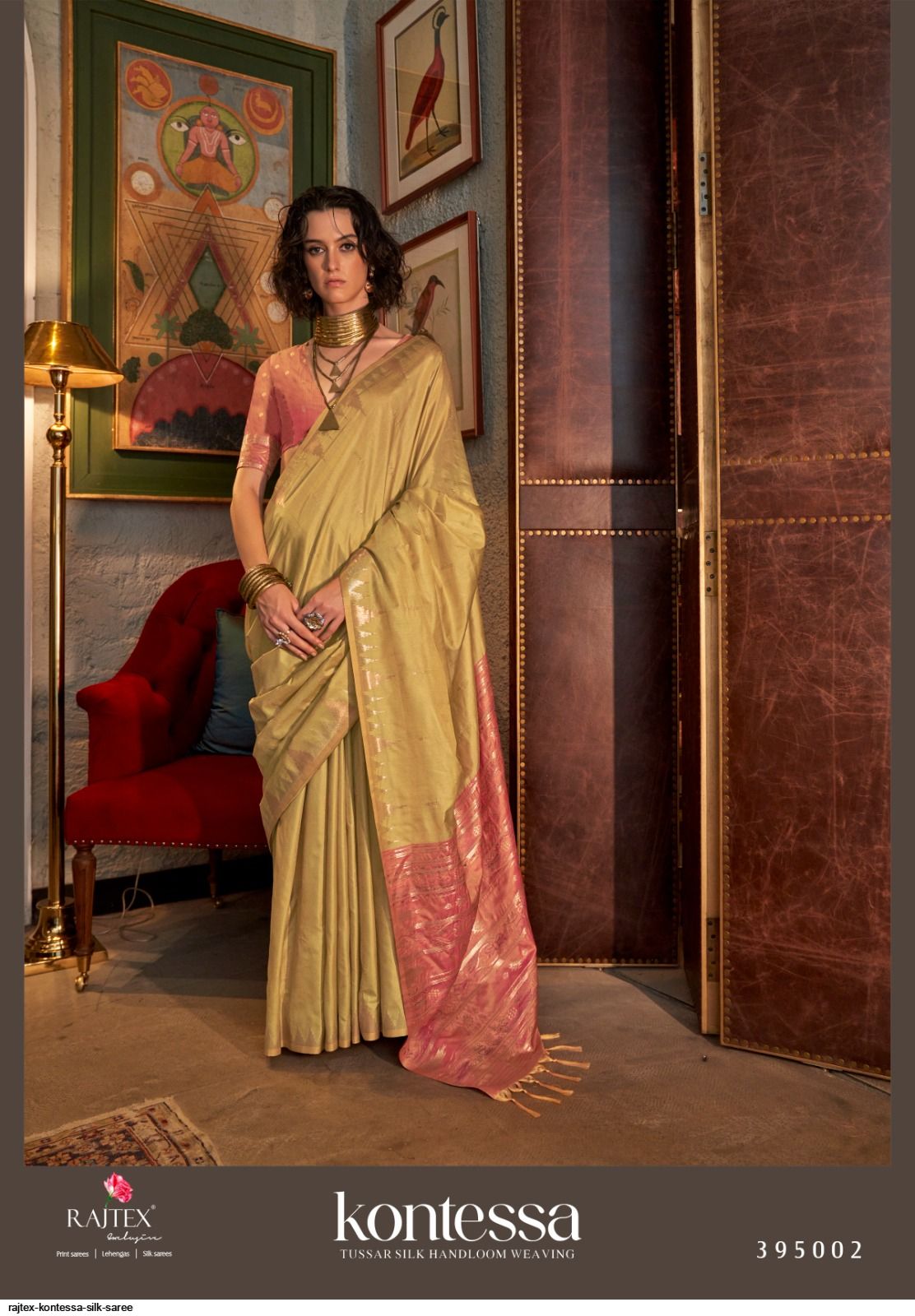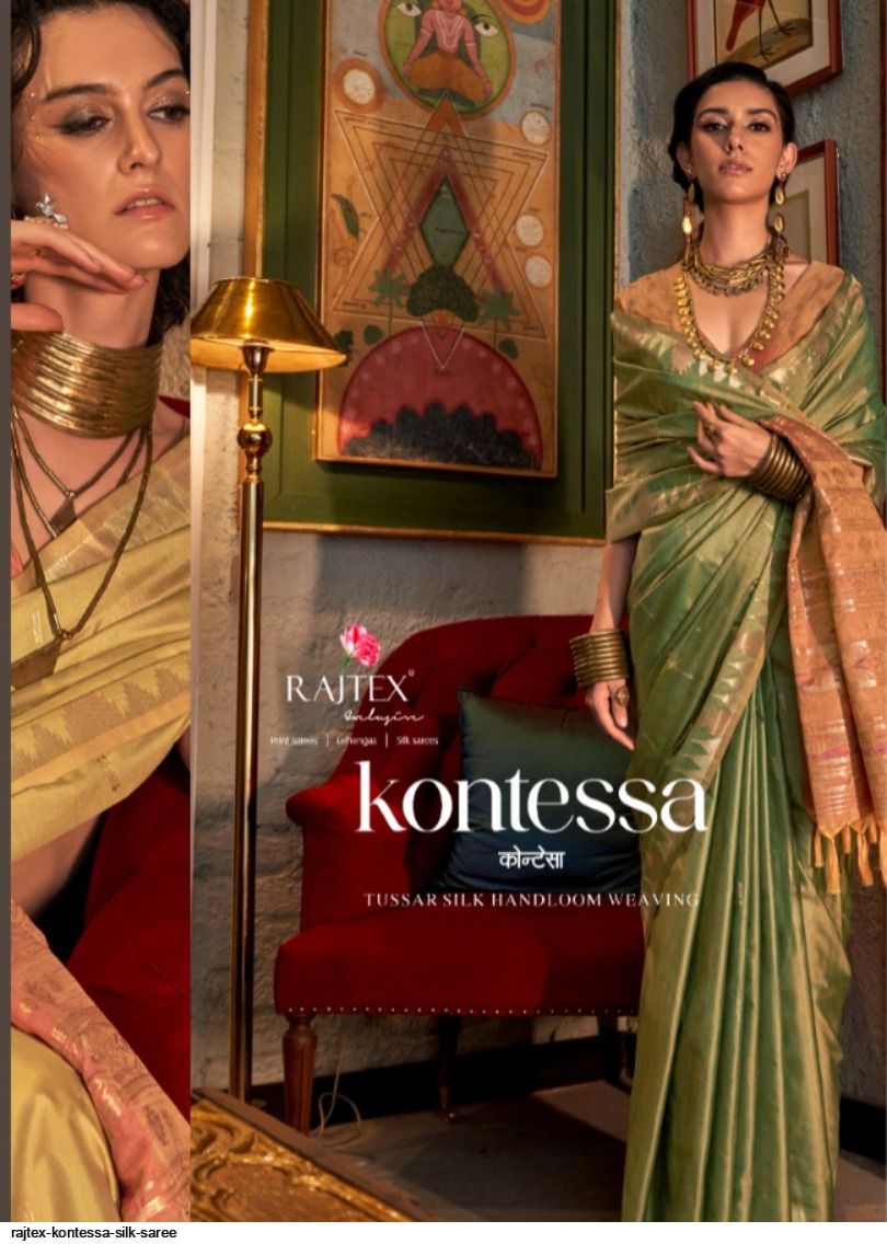 Saree : Tussar Silk Handloom Weaving With Contrast Ikkat Design Pallu