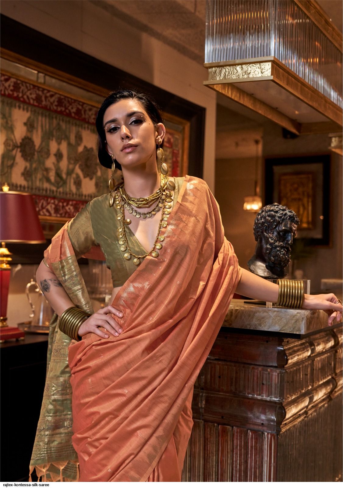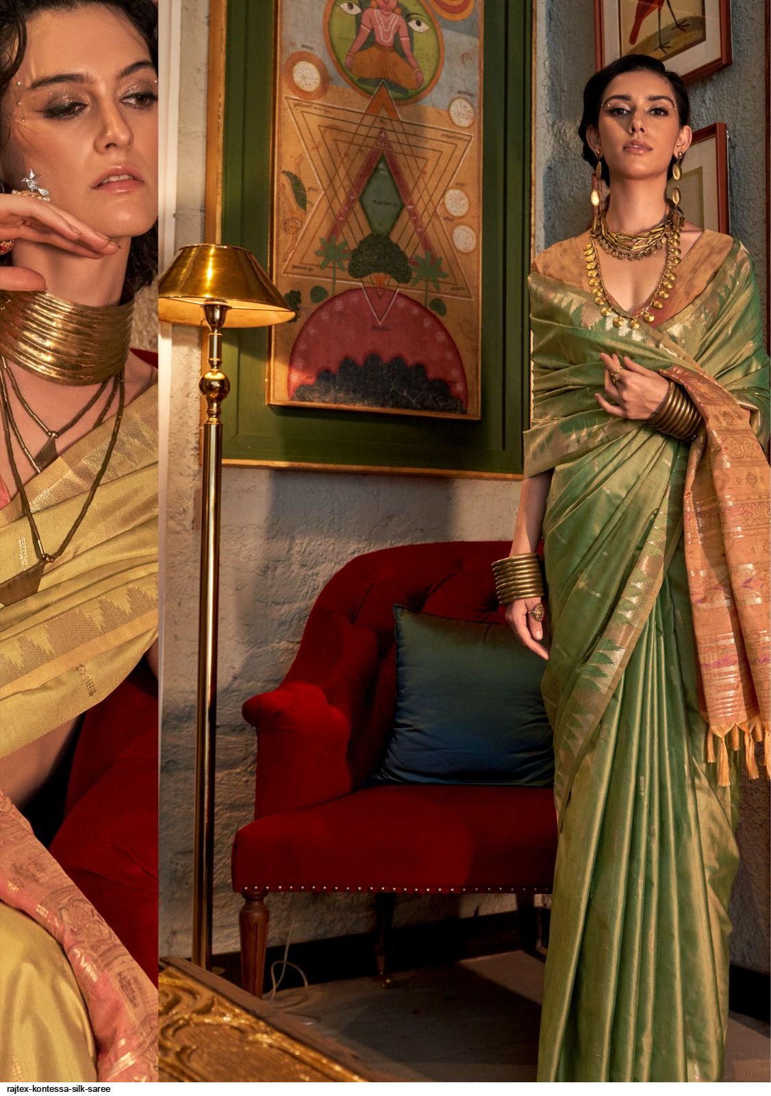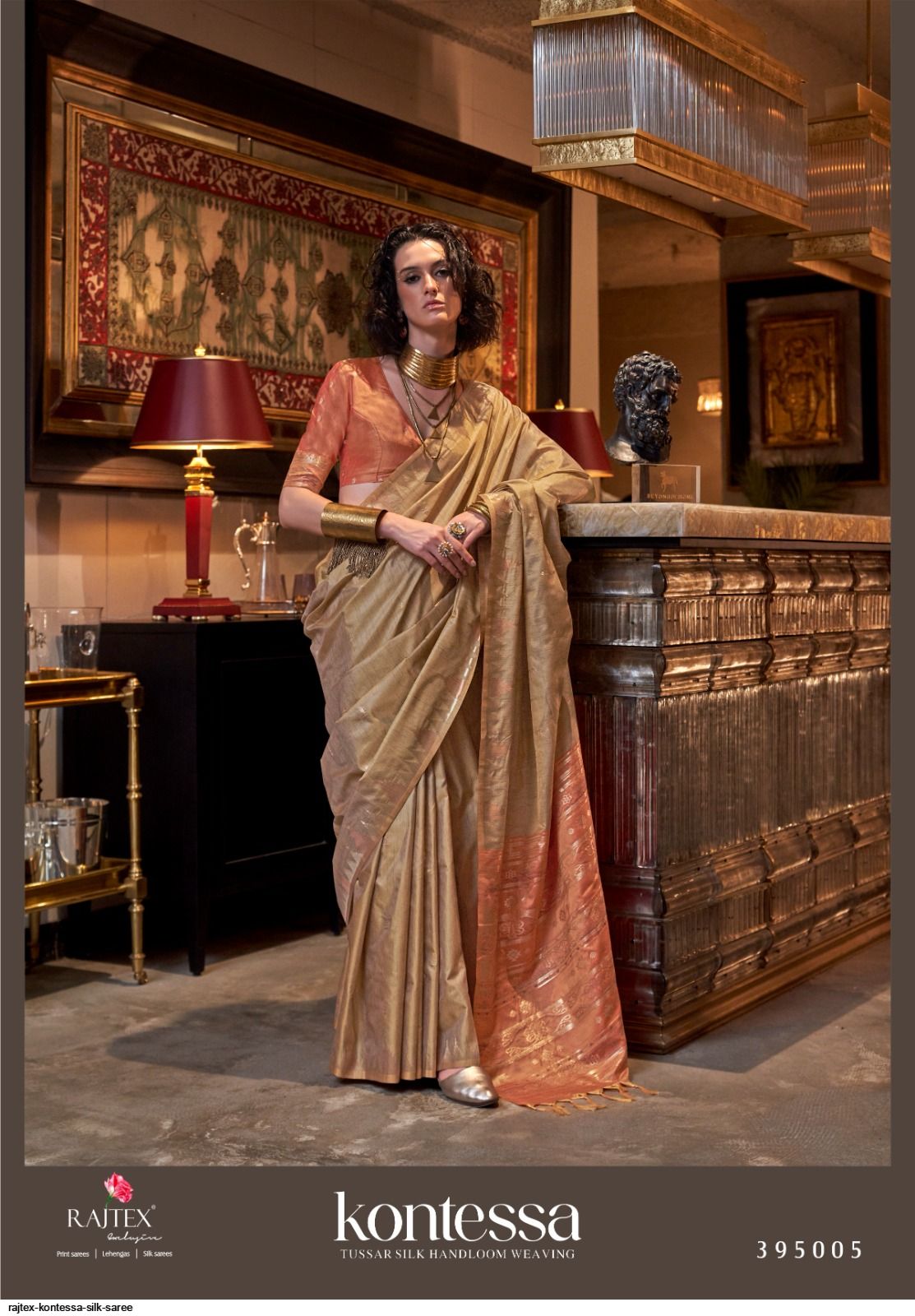 Saree : Tussar Silk Handloom Weaving With Contrast Ikkat Design Pallu