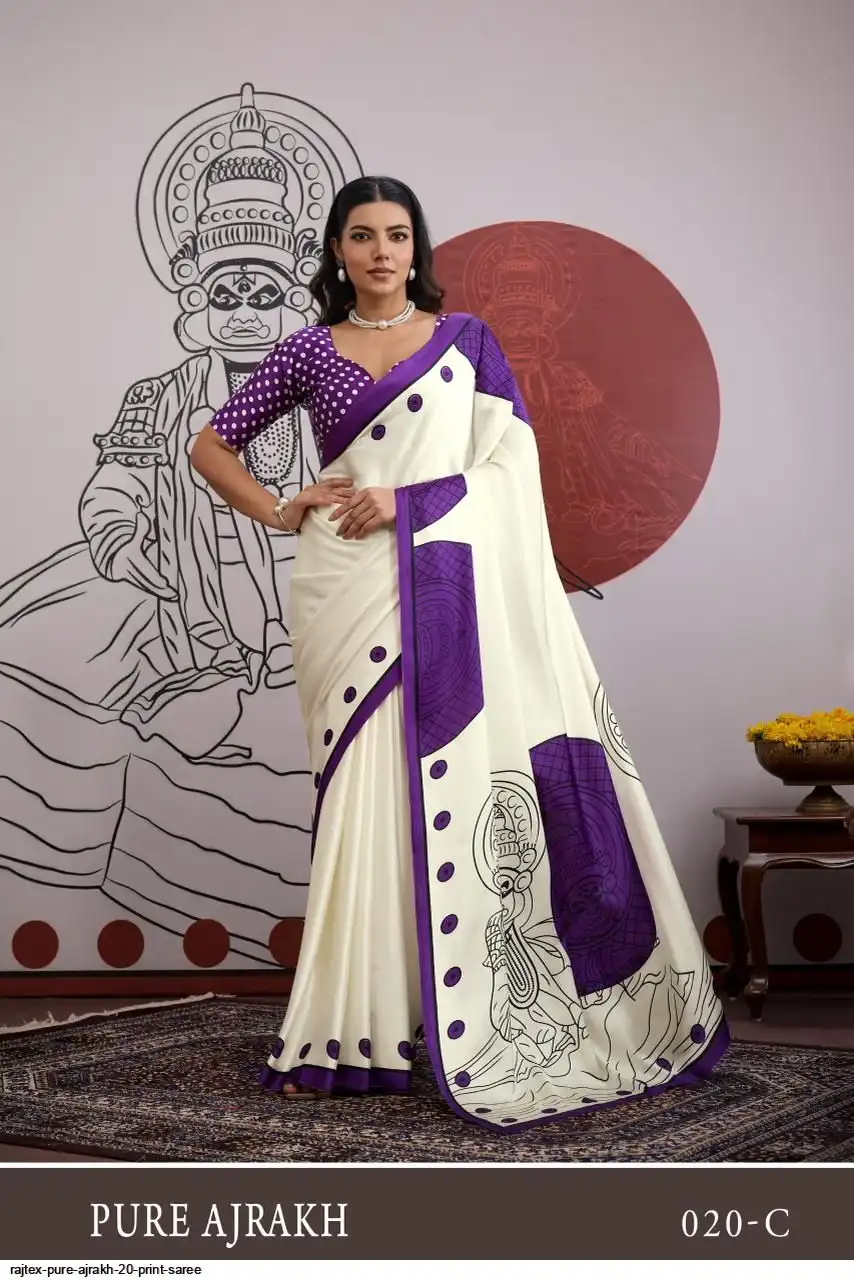Saree : Modal Satin Ajrakh Print Saree