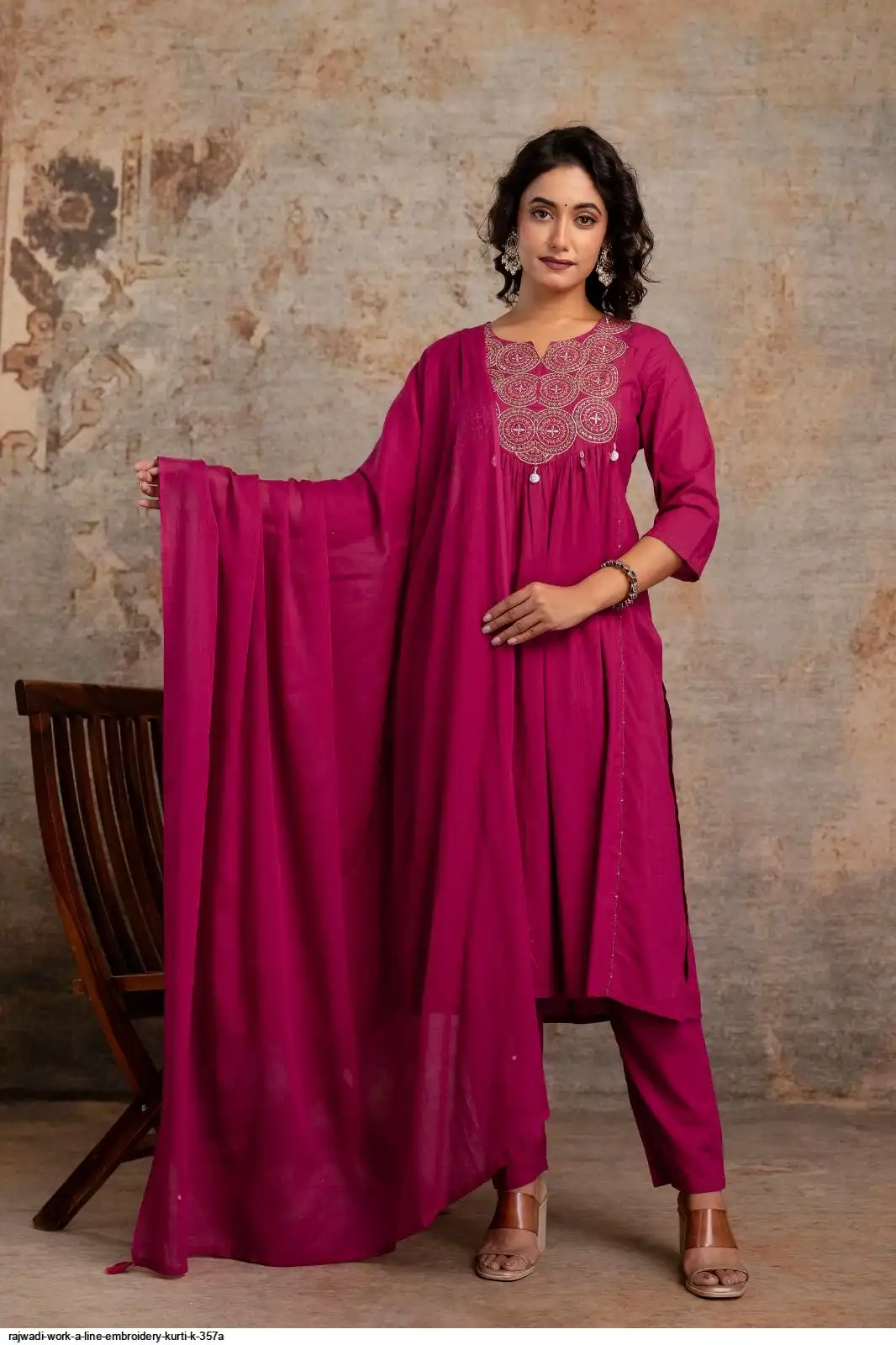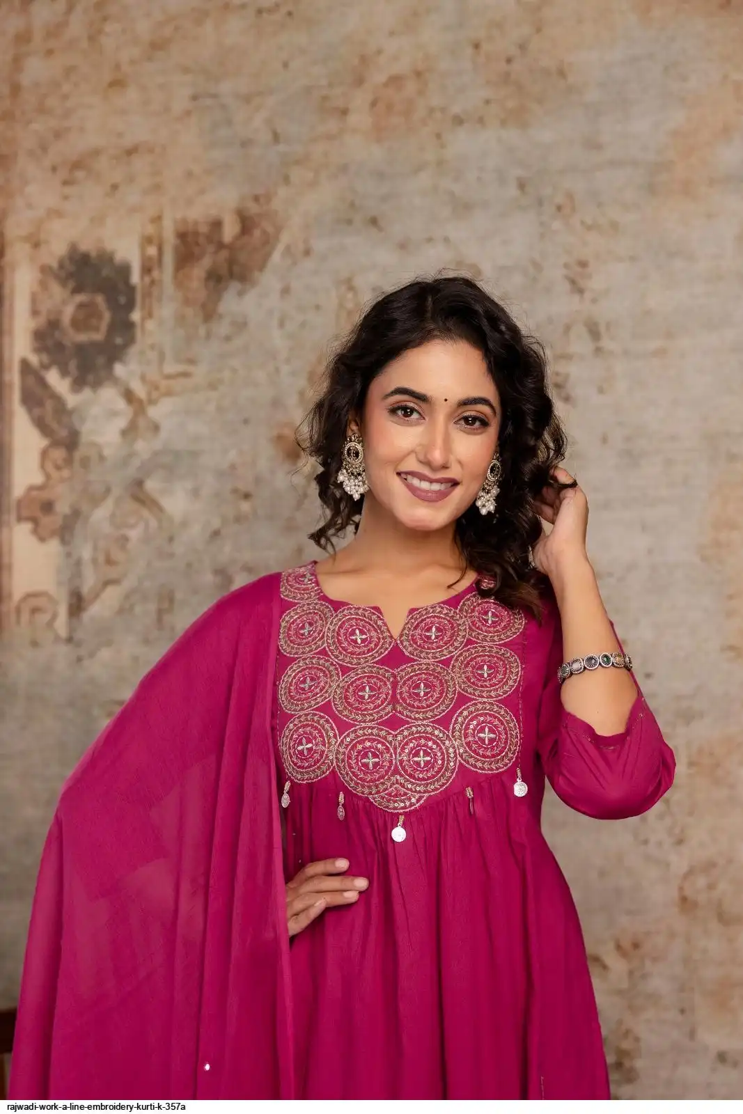 RAJWADI WORK A LINE EMBROIDERY KURTI K 357A