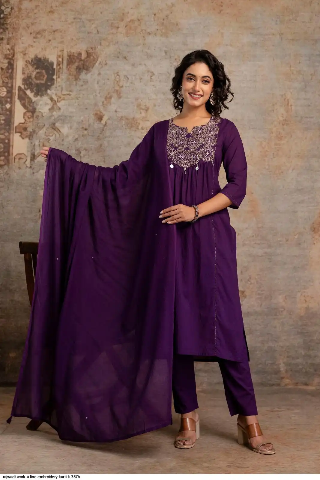 RAJWADI WORK A LINE EMBROIDERY KURTI K 357B