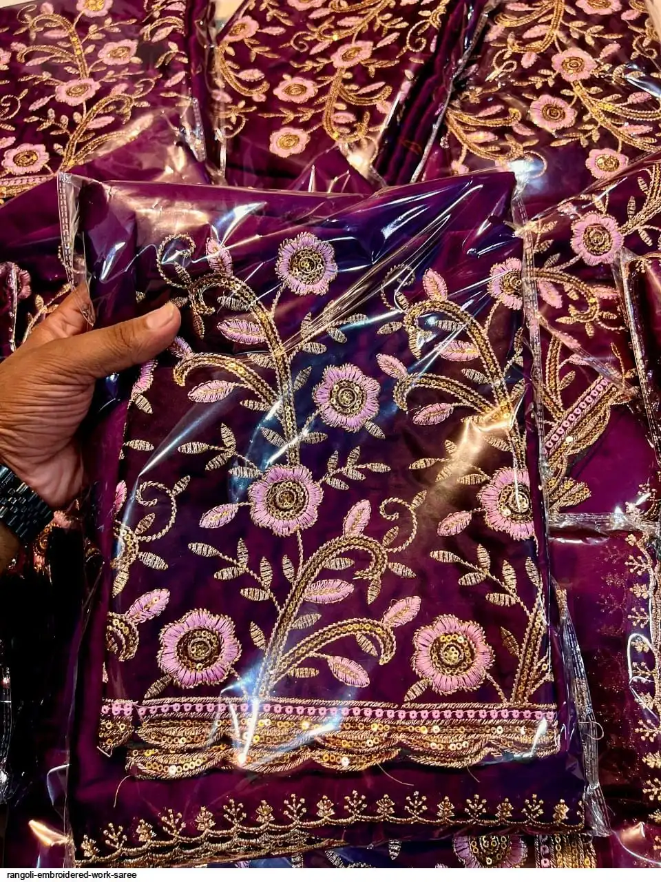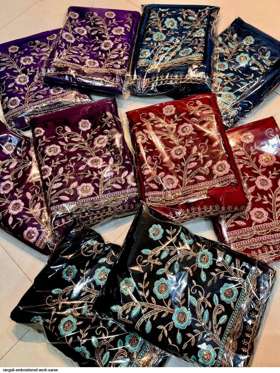 WORK : EMBRODERY WORK WITH CUT WORK BORDER ON ALL OVER THE SAREE