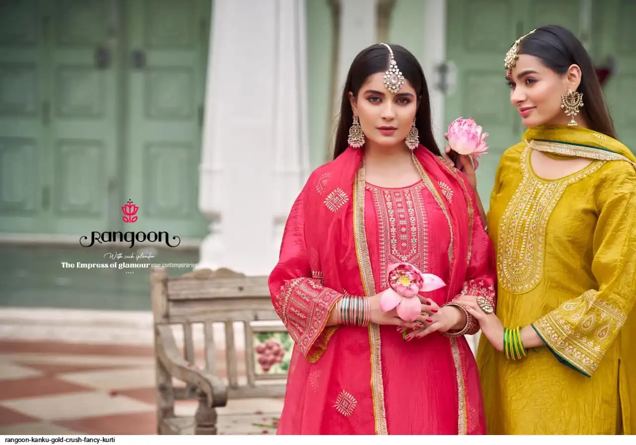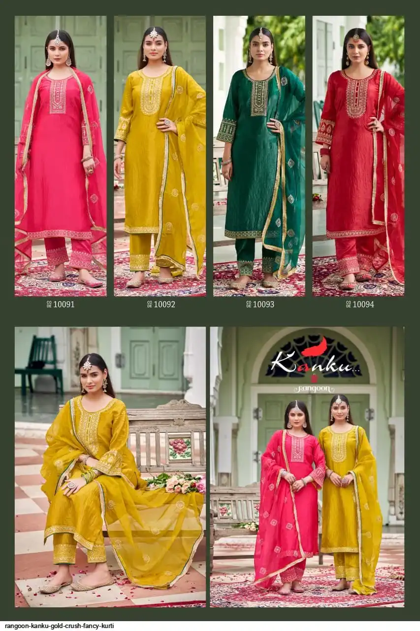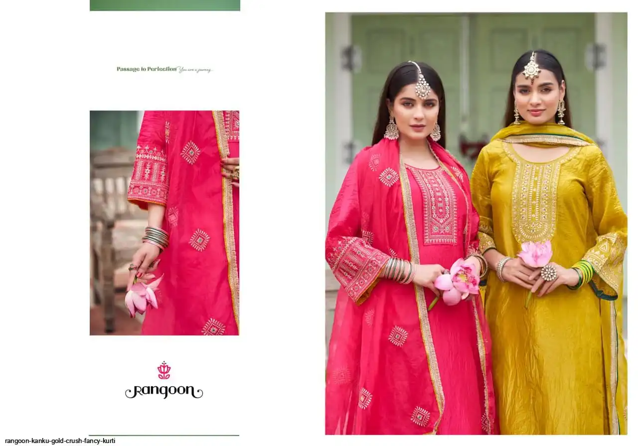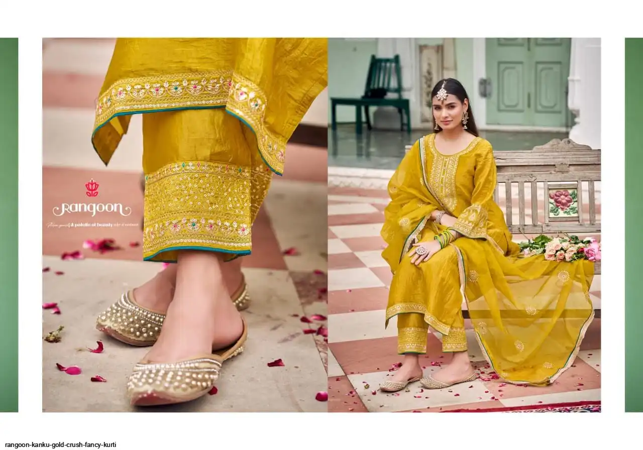 ▪️Bottom:- Gold crush with lace work and full inner pant