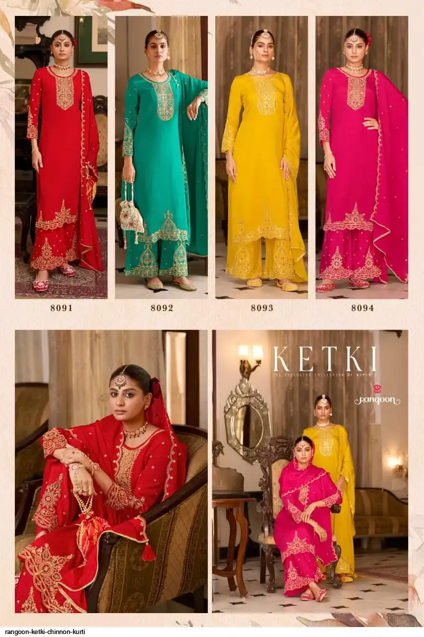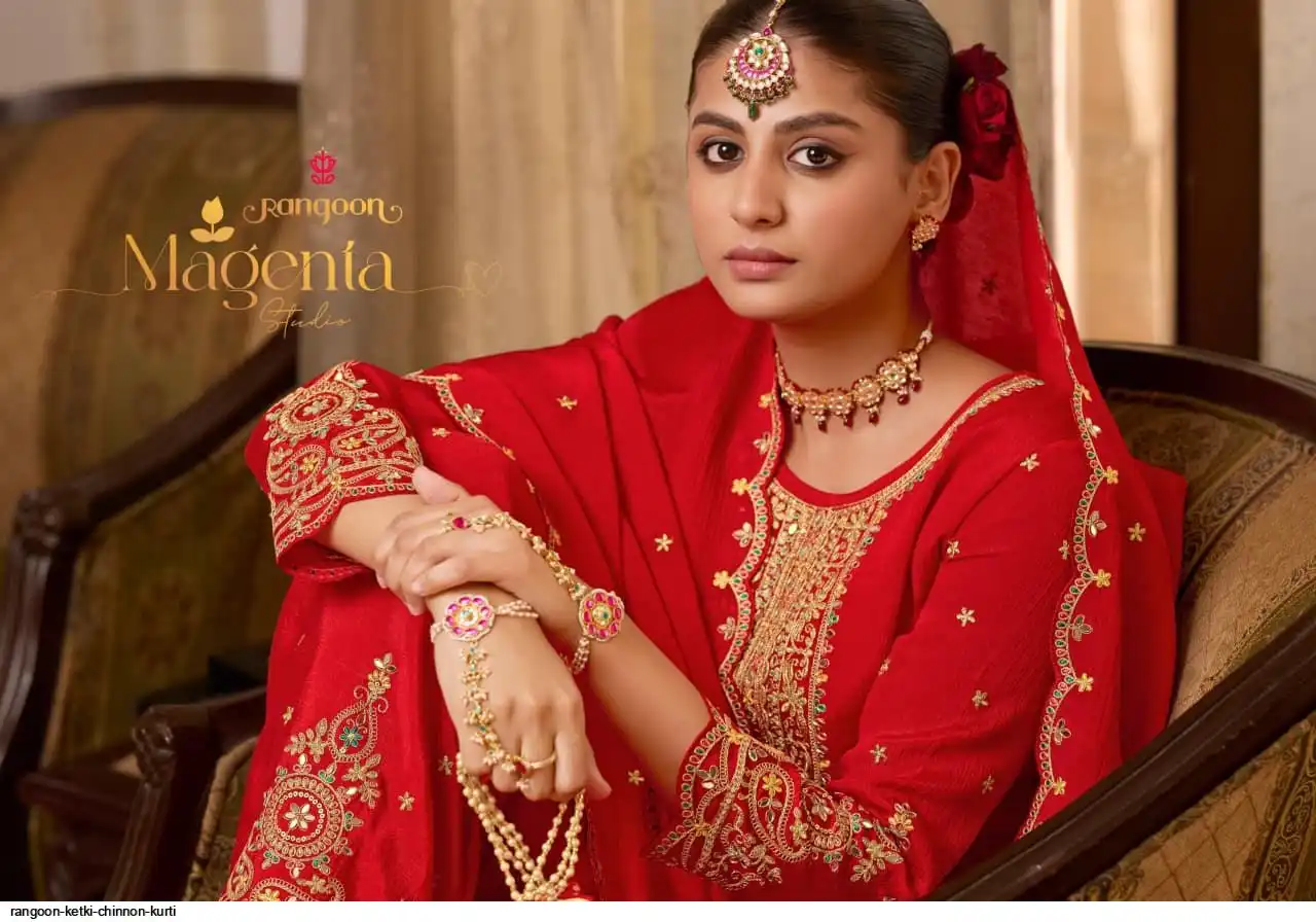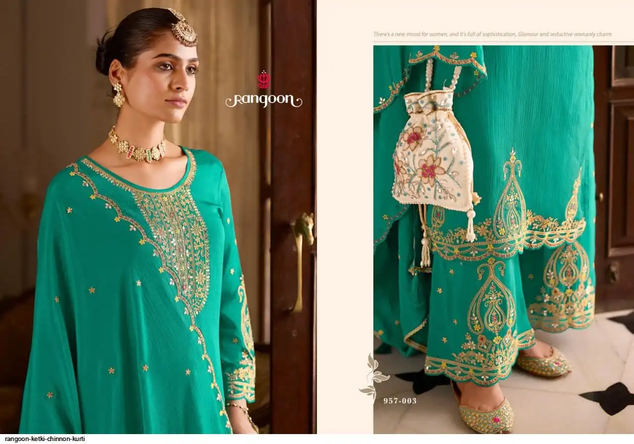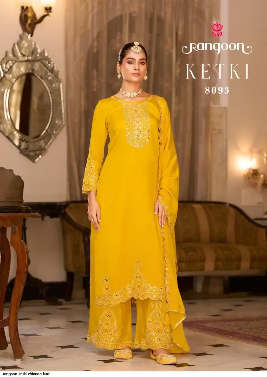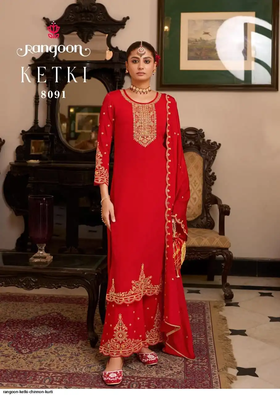 ▪TOP:- CHINNON WITH FANCY HEAVY CODE WORK AND HAND MIRROR, HEAVY SLEEV WORK AND FULL INNER.