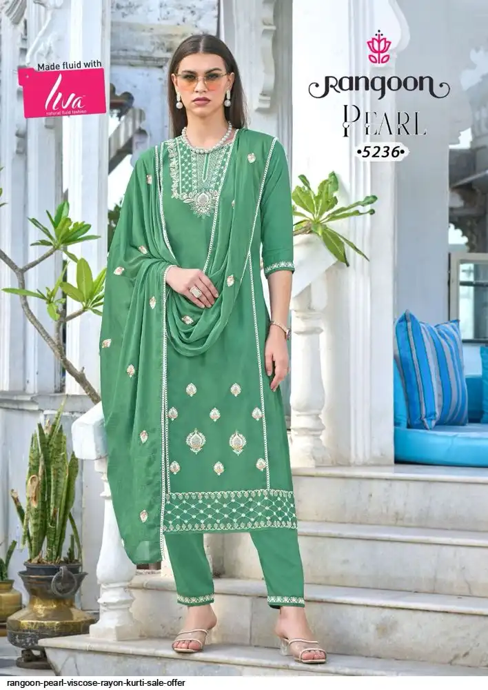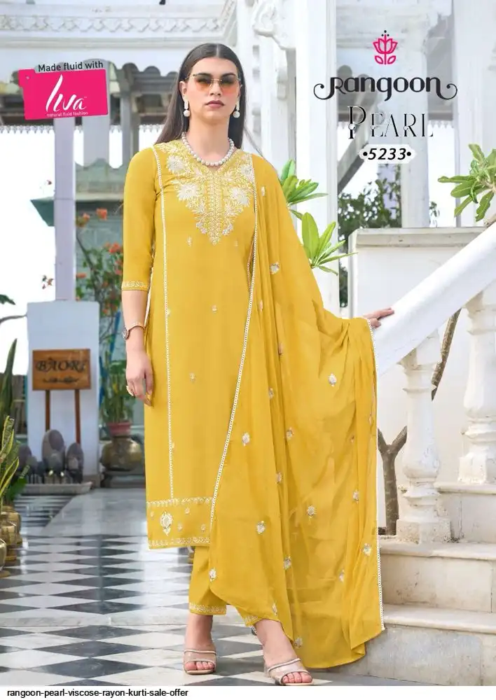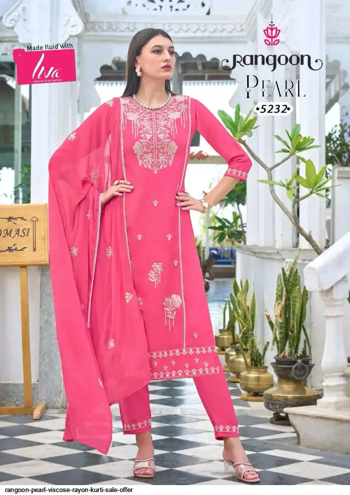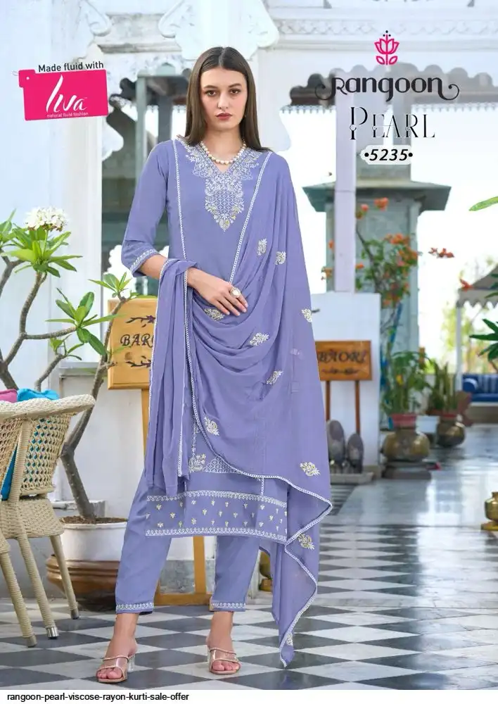Fabric Detail: Top :- Viscose Rayon With Fancy Work And Full Cotton Mal Inner Bottom :- Viscose Rayon With Fancy Work Dupatta :- Nazmeen Heavy Work With Gpo Lace Border, Series :