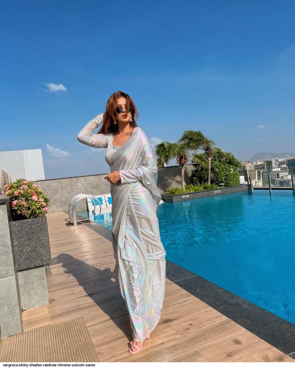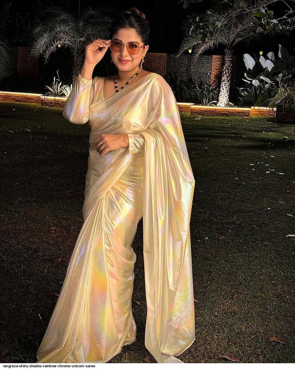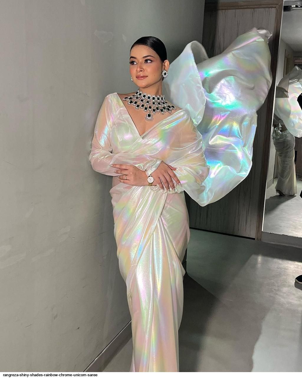 FABRIC: IMPORTED FABRIC LOOK A BEAUTIFUL CHROME UNICORN SAREE IN SHADES OF RAINBOW