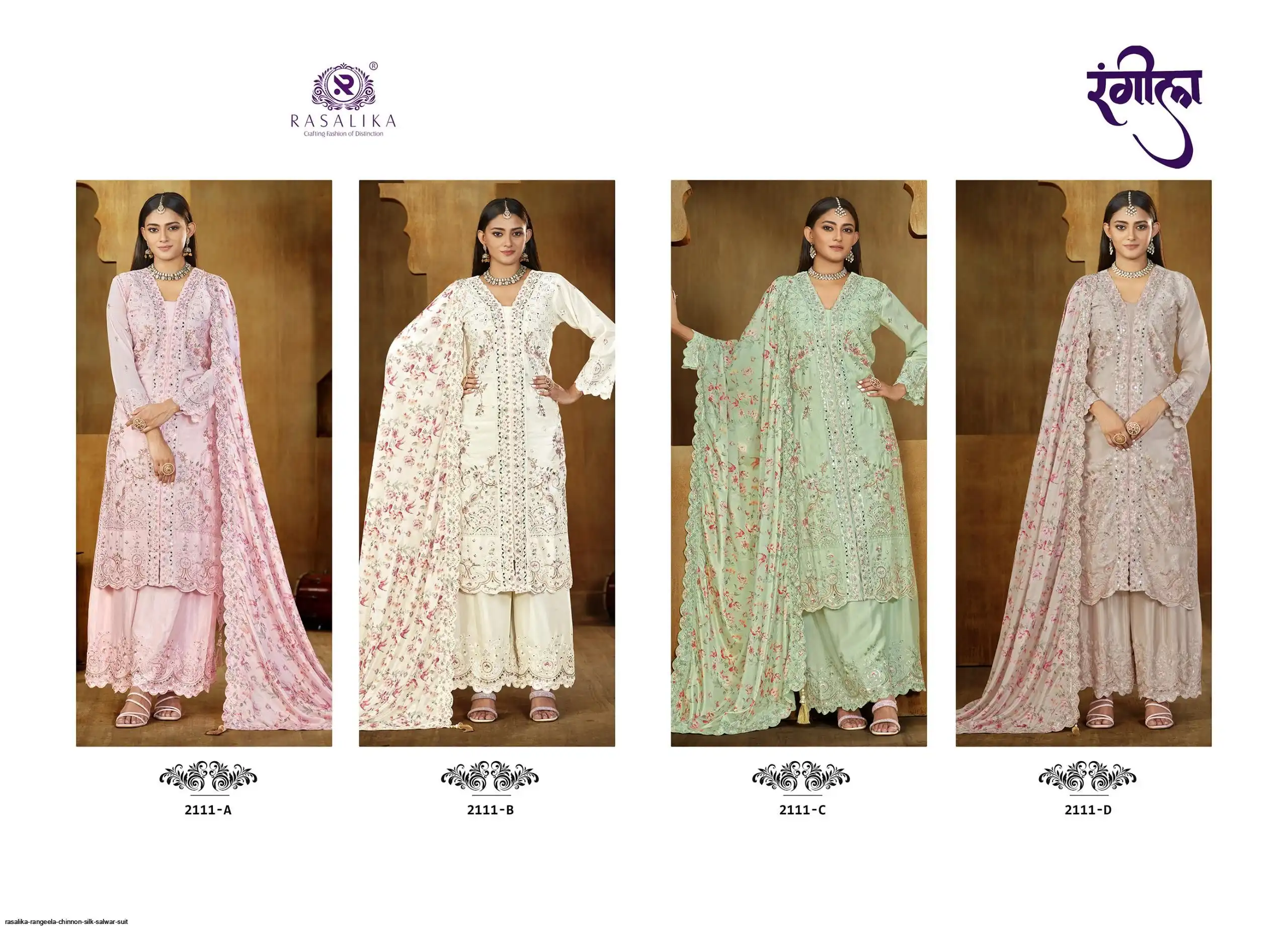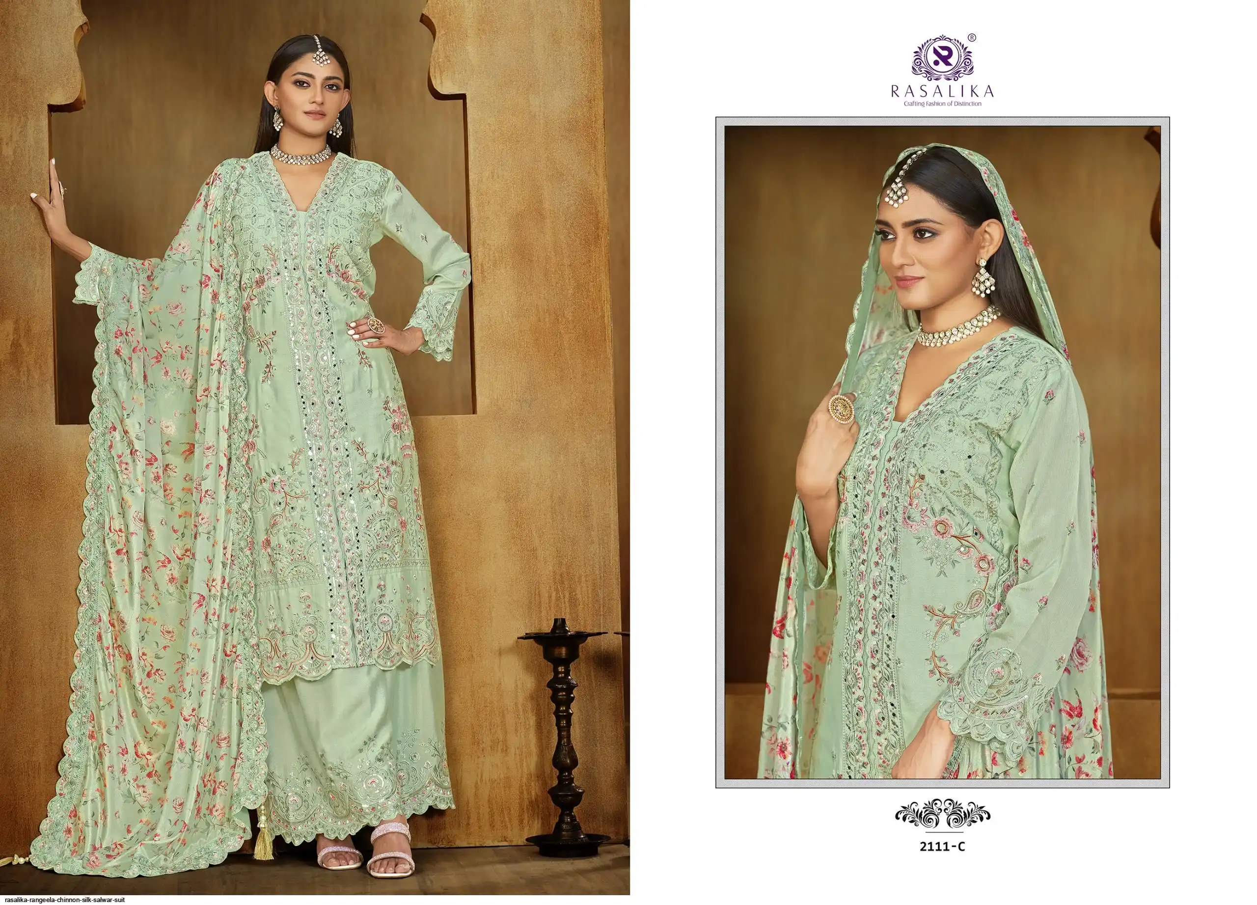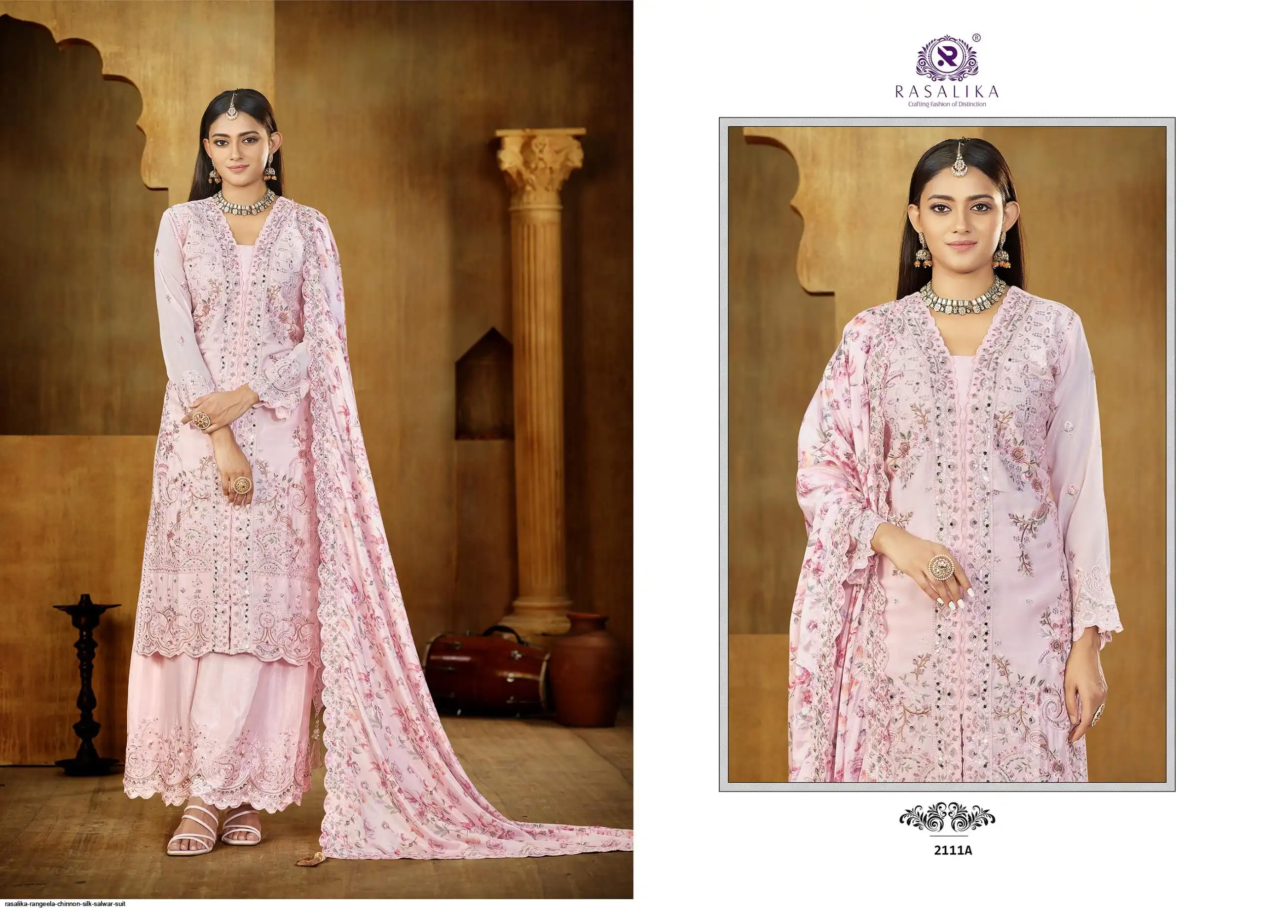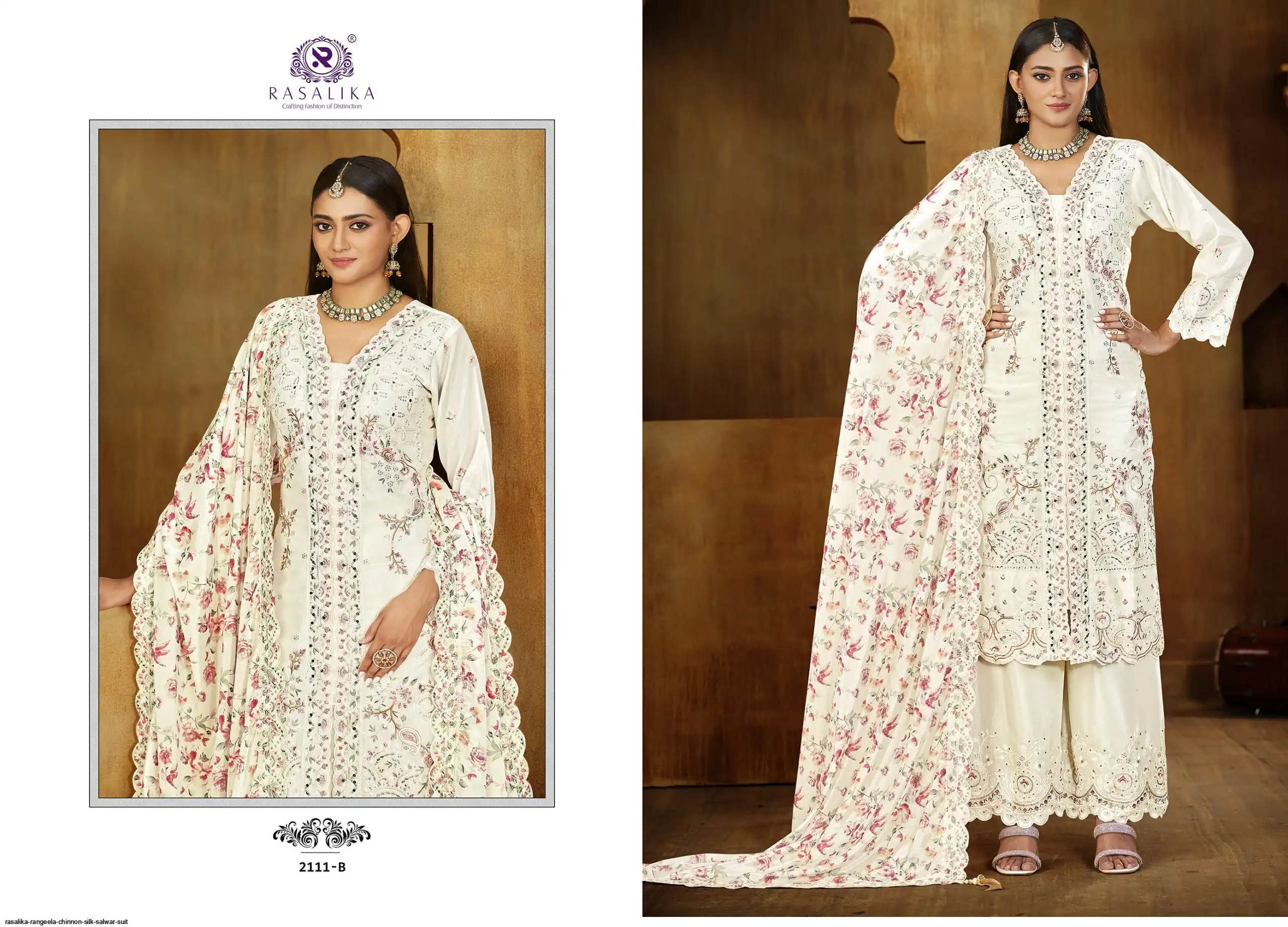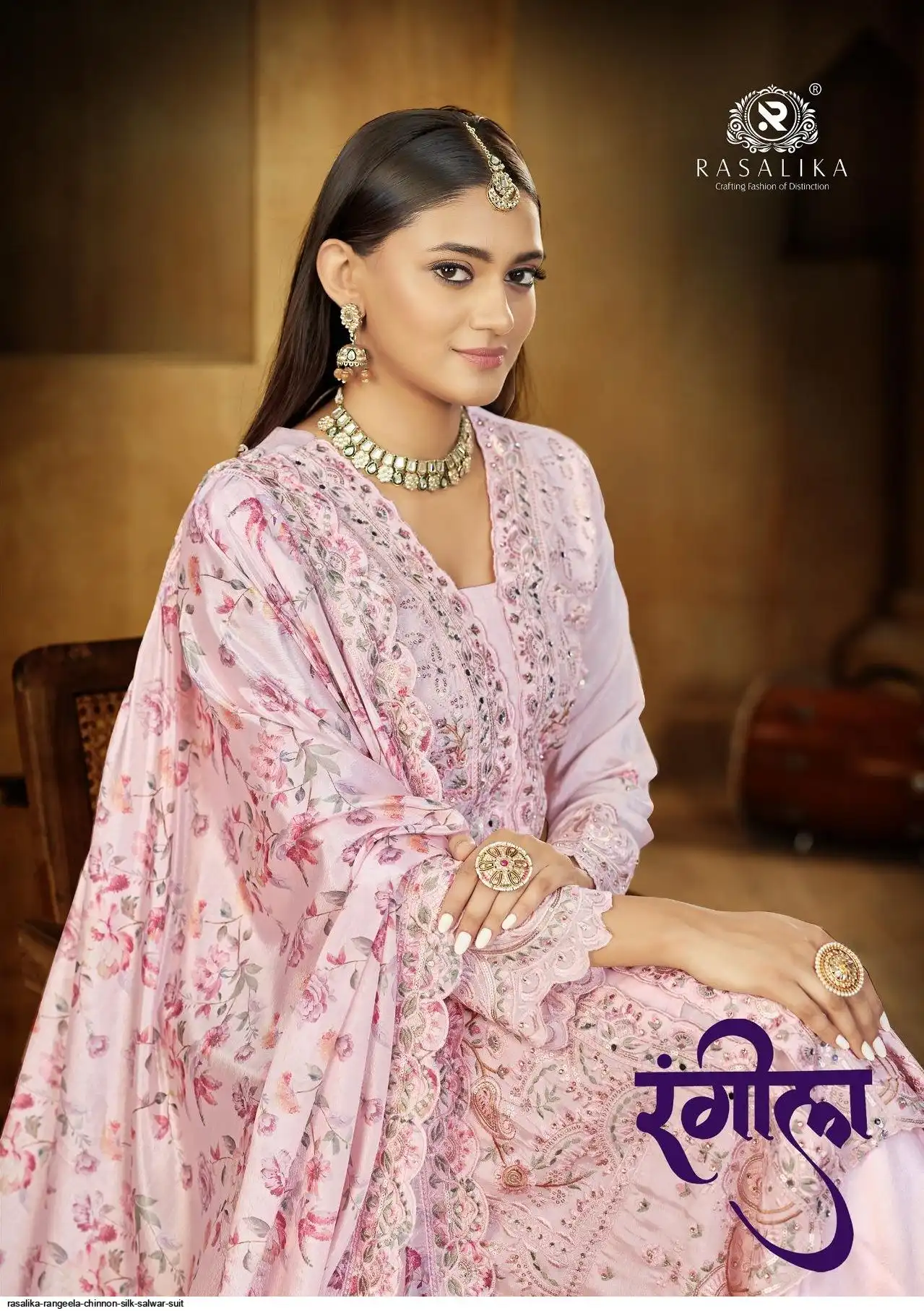 Dupatta - Real Chinnon Silk Digital print with embroidery work