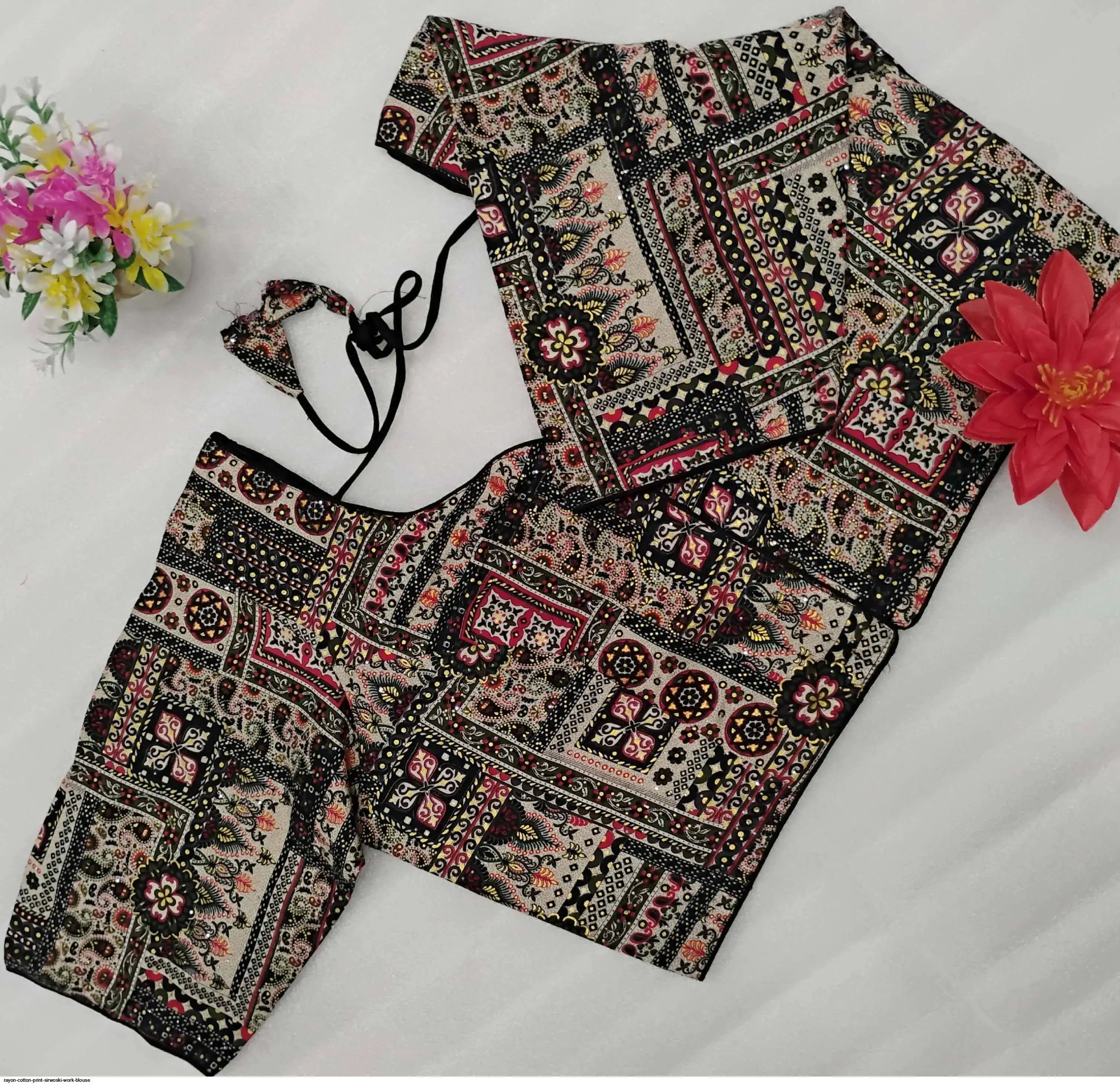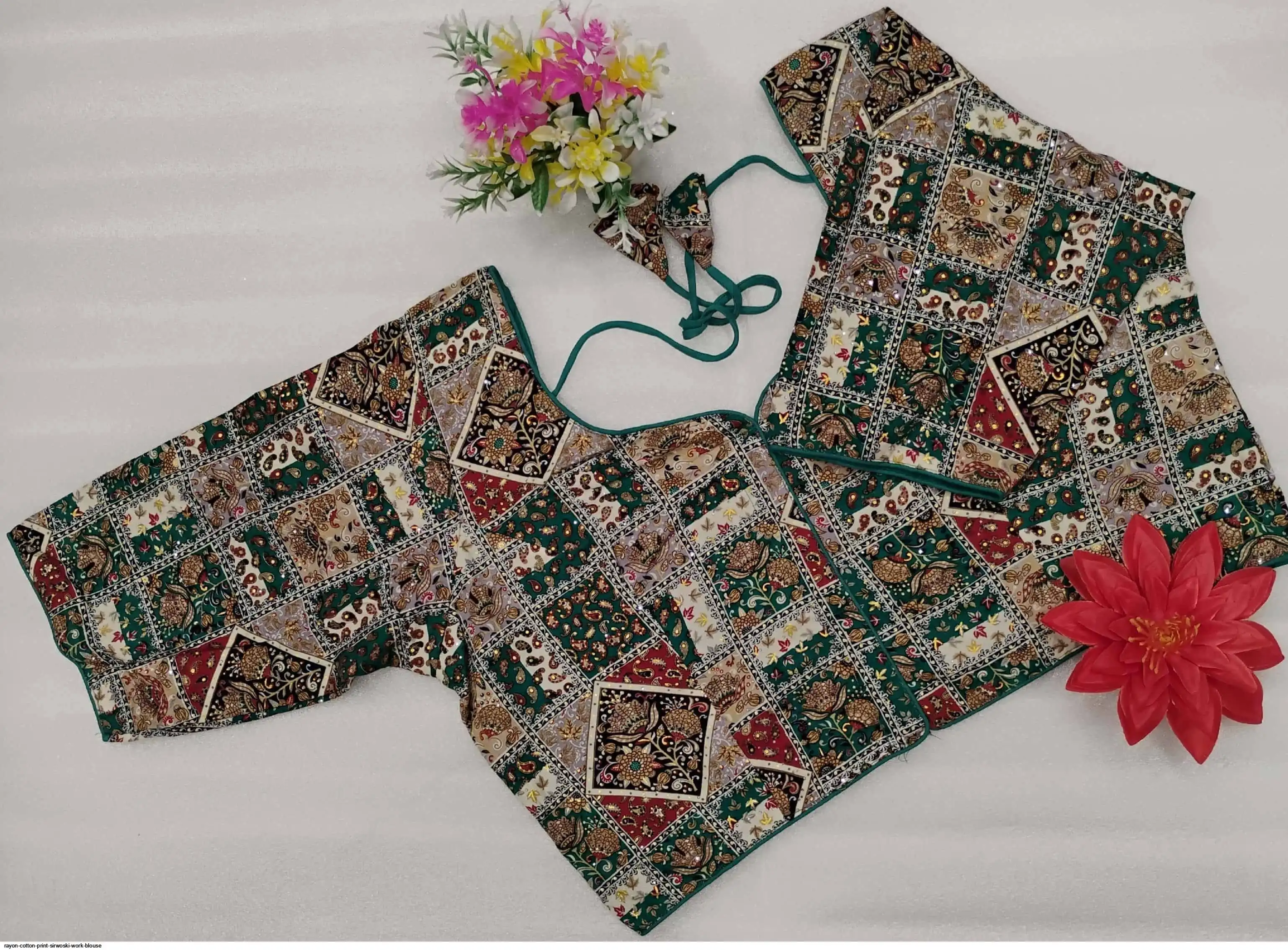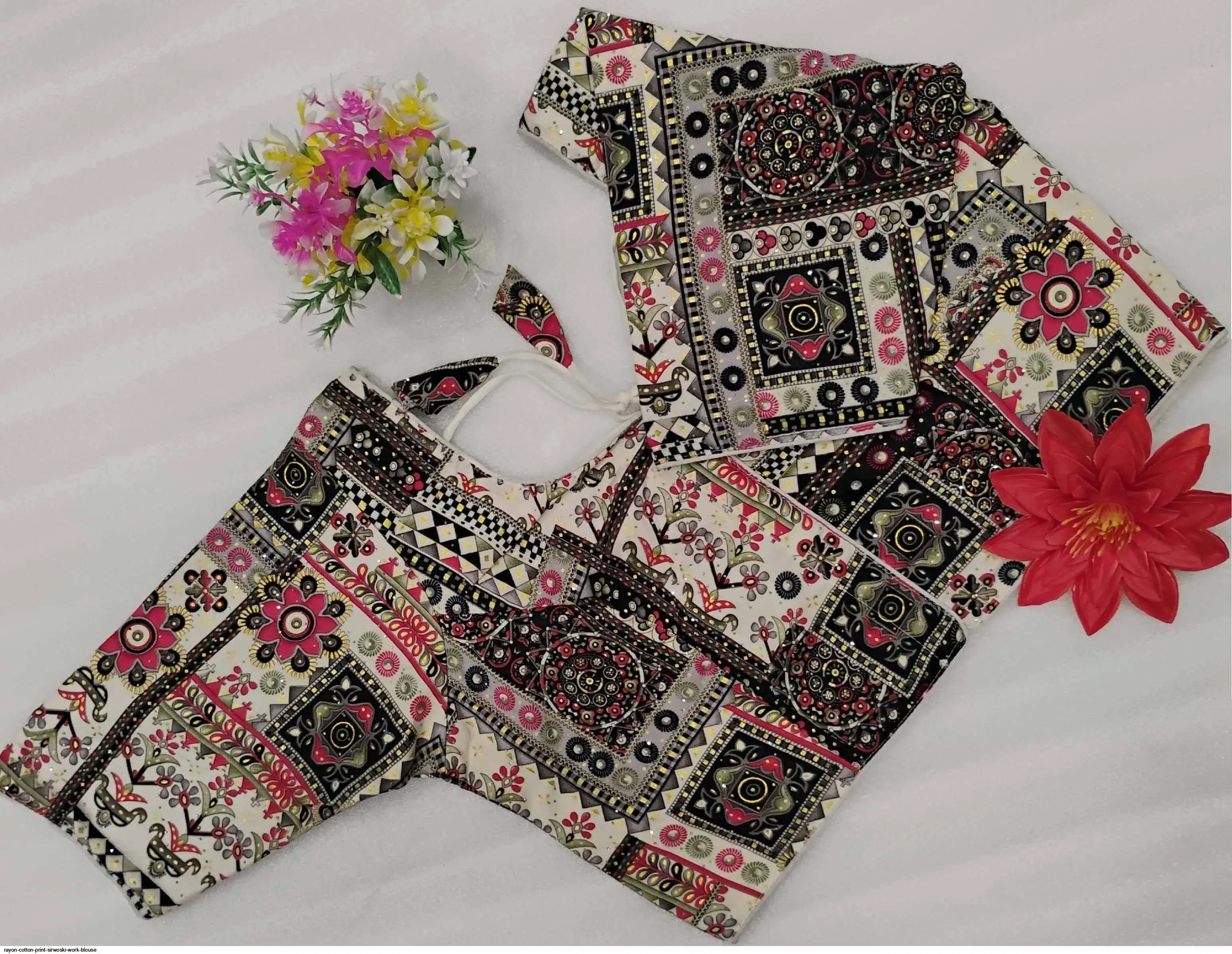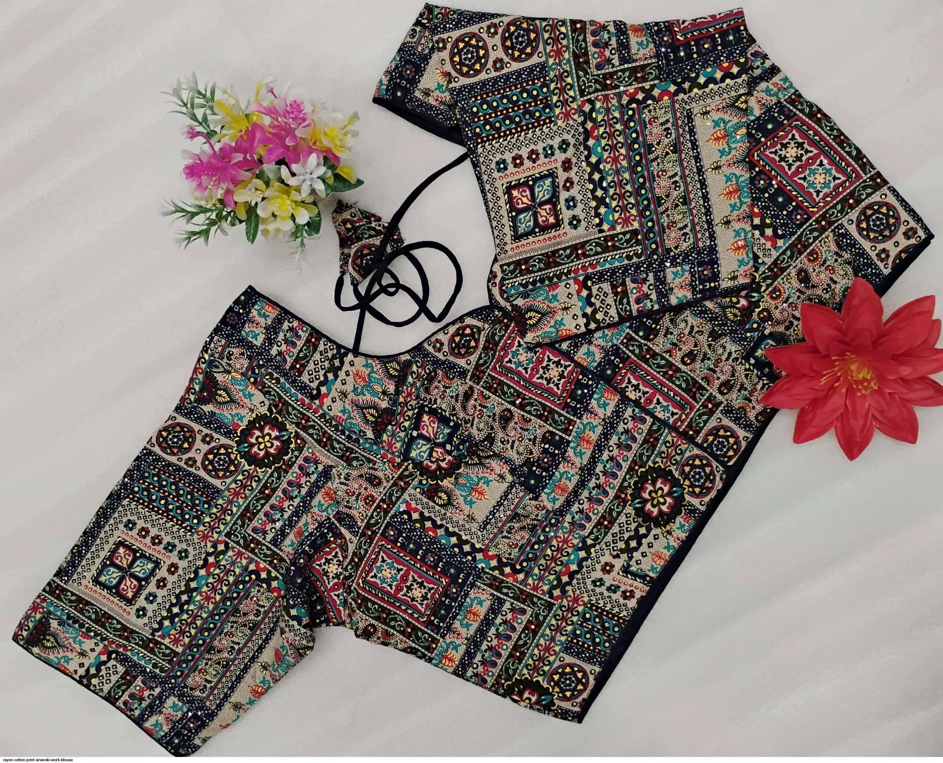 Non-Padded Jumbo 44" Rayon Cotton Digital Print Sirwoski Work Blouses