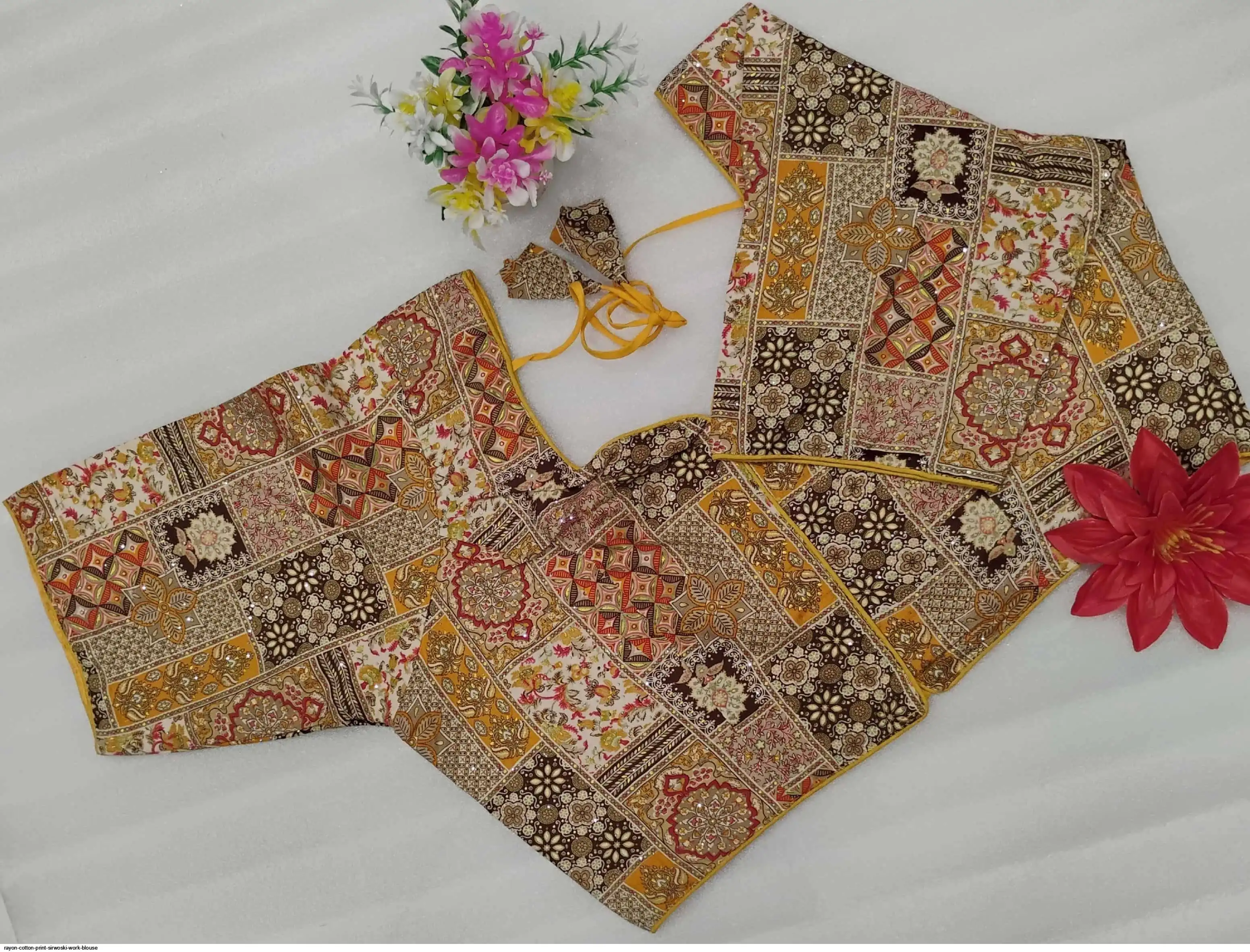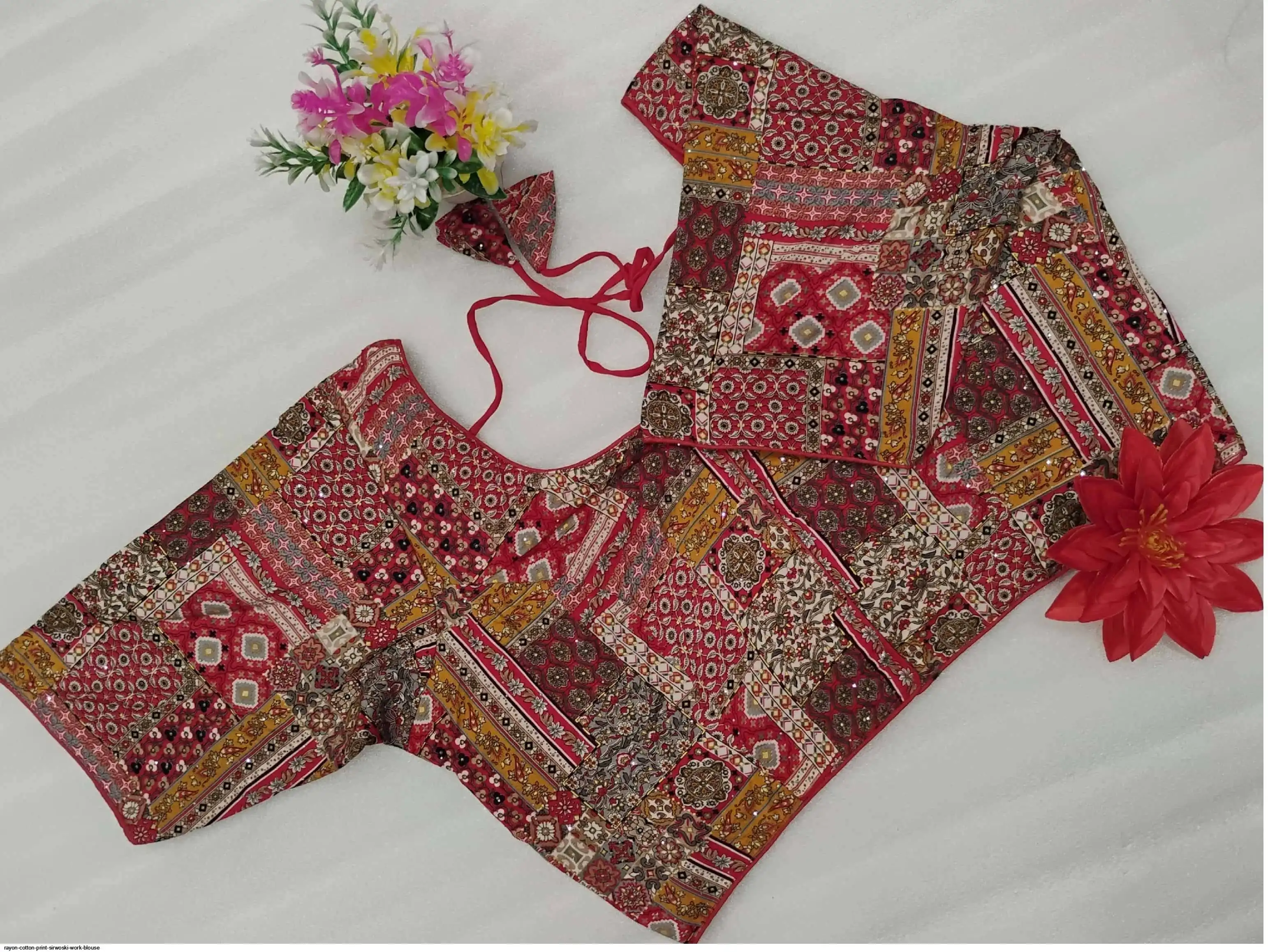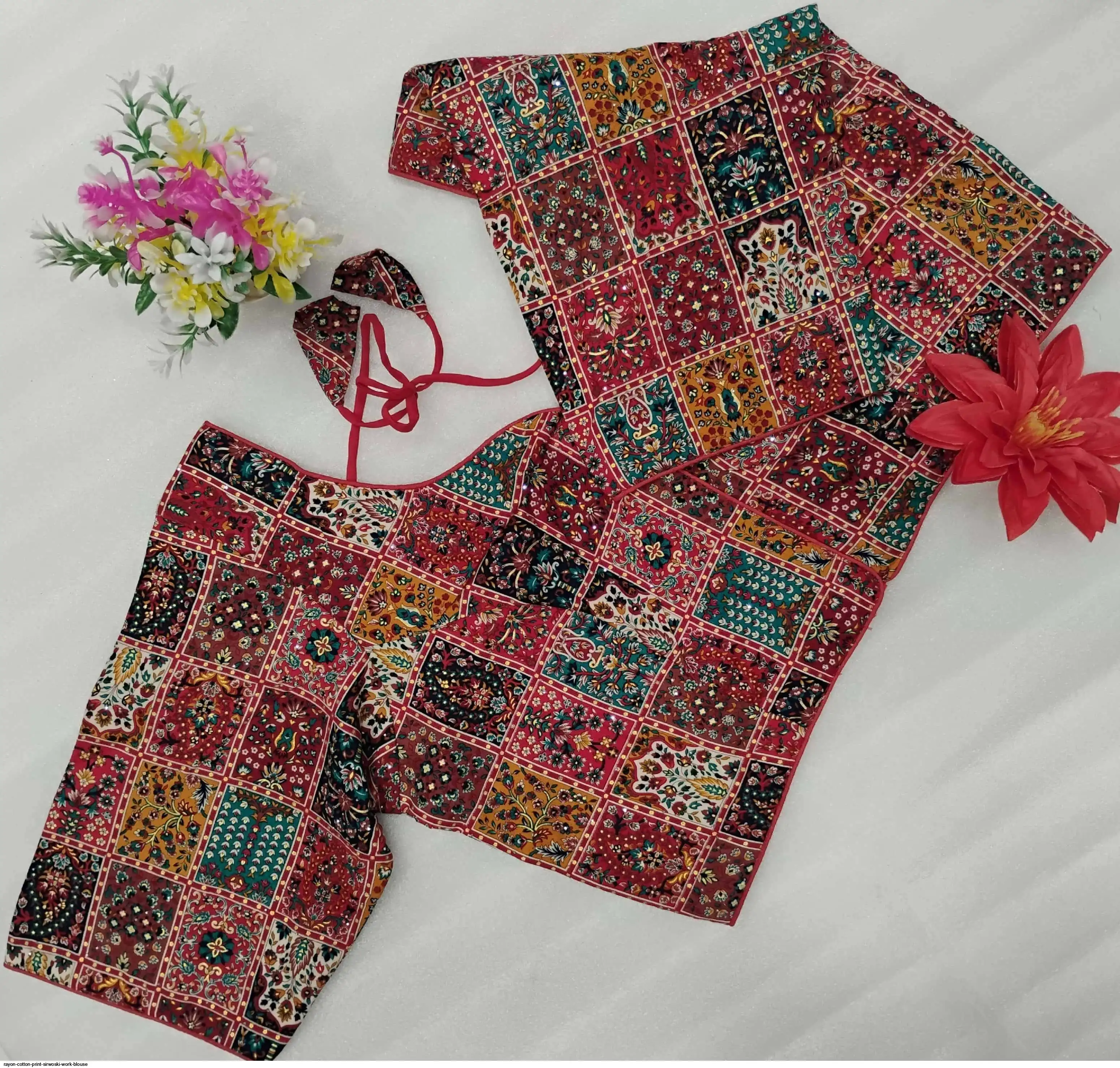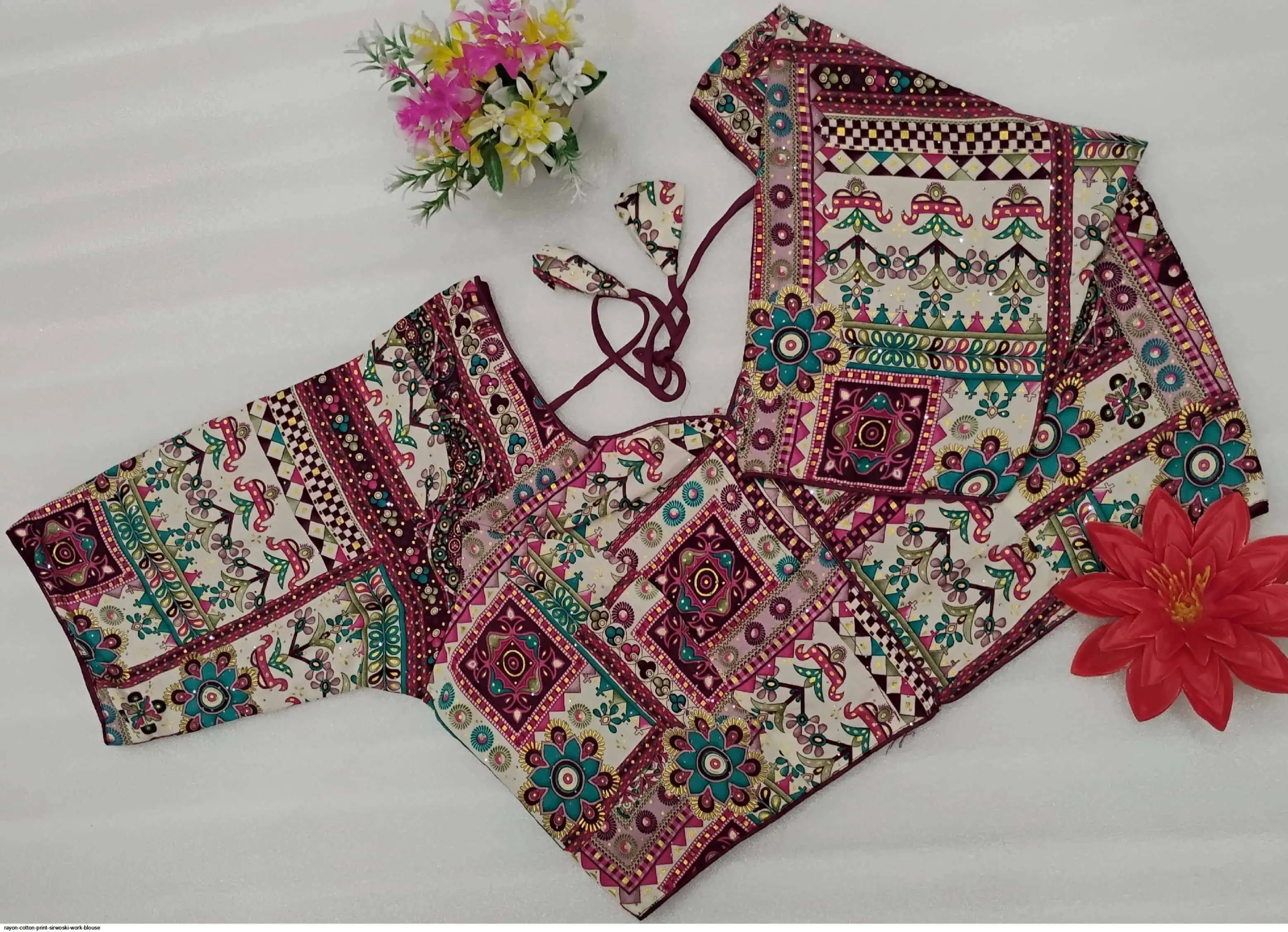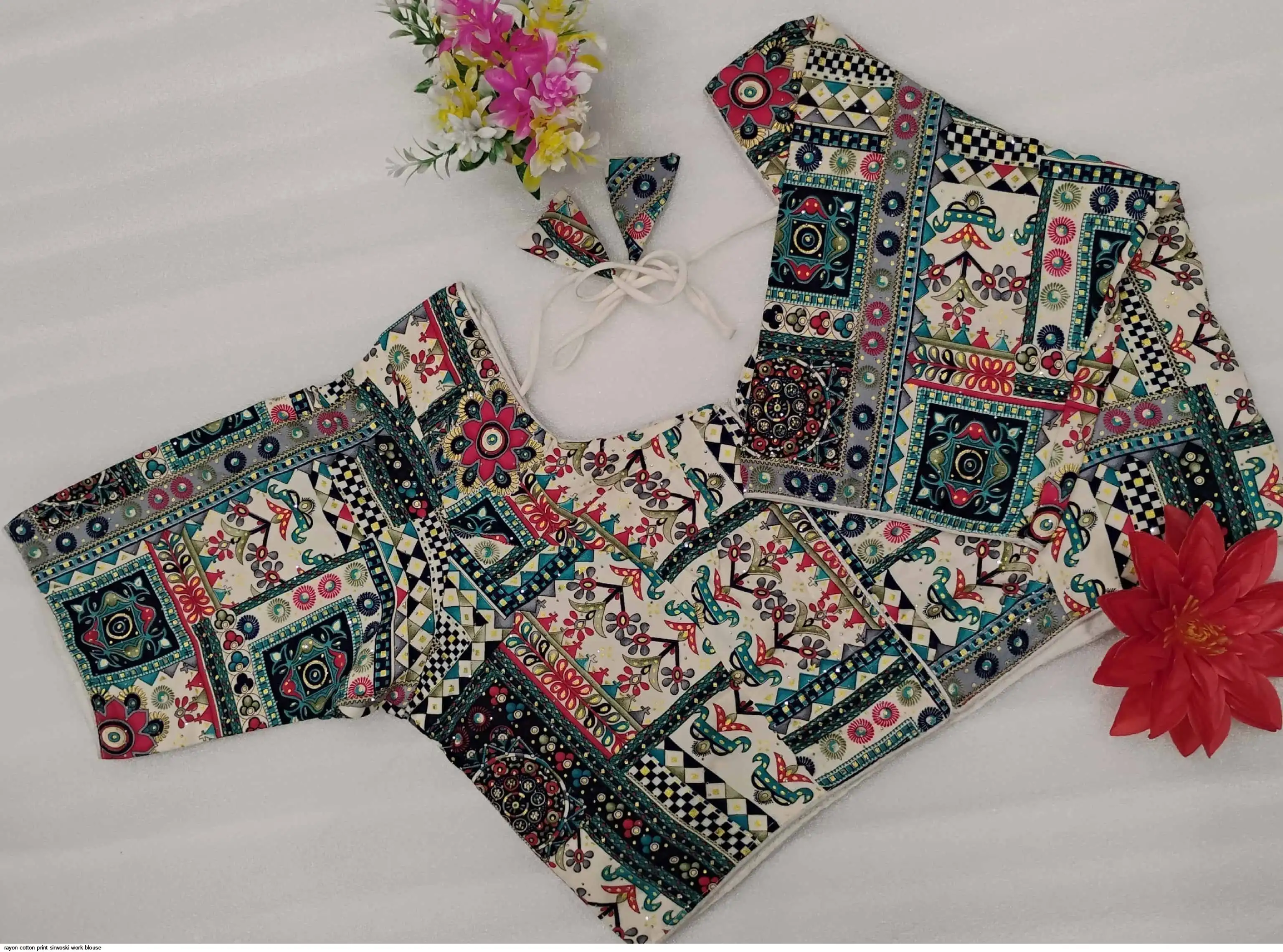 Non-Padded Jumbo 44" Rayon Cotton Digital Print Sirwoski Work Blouses