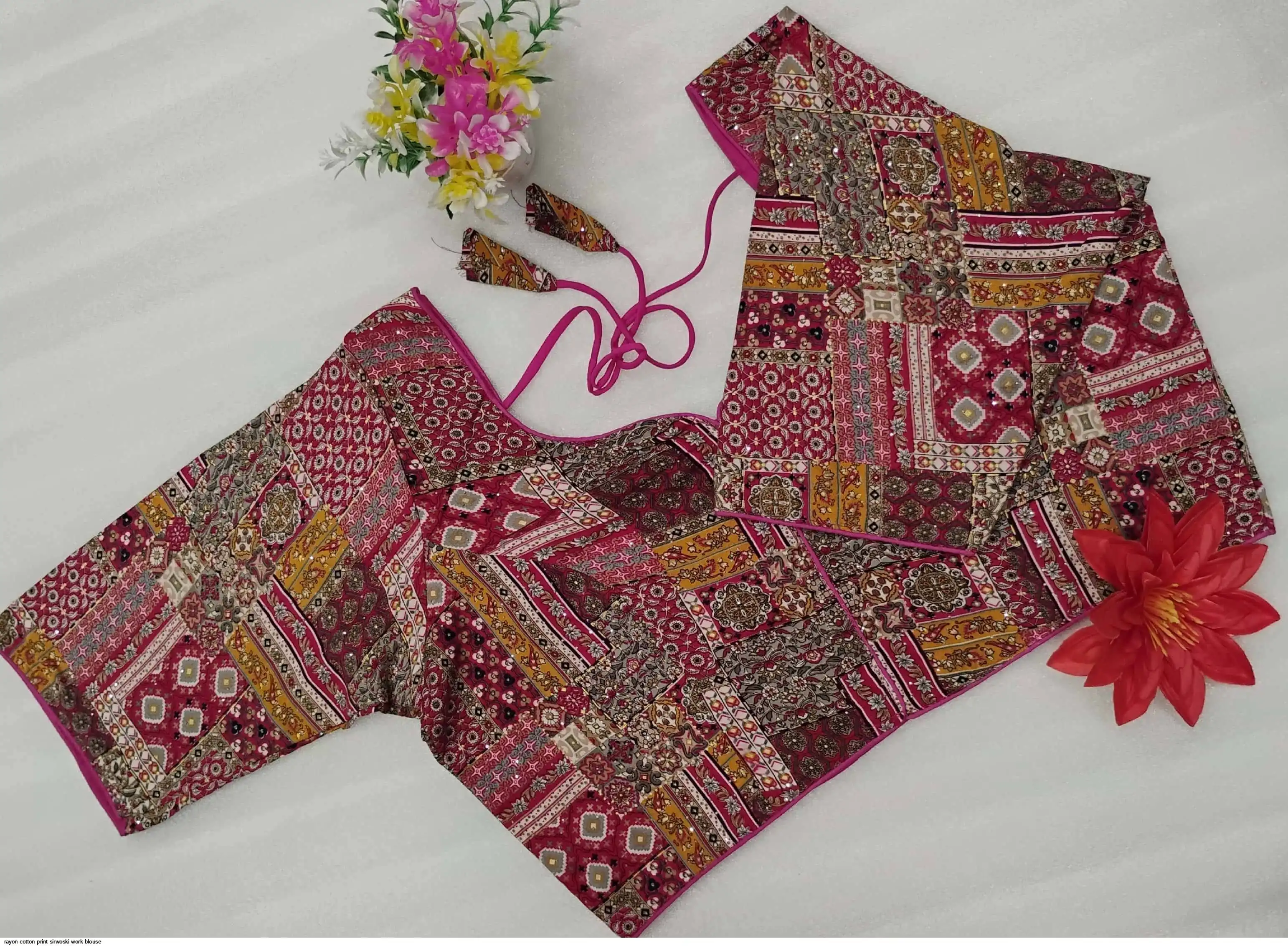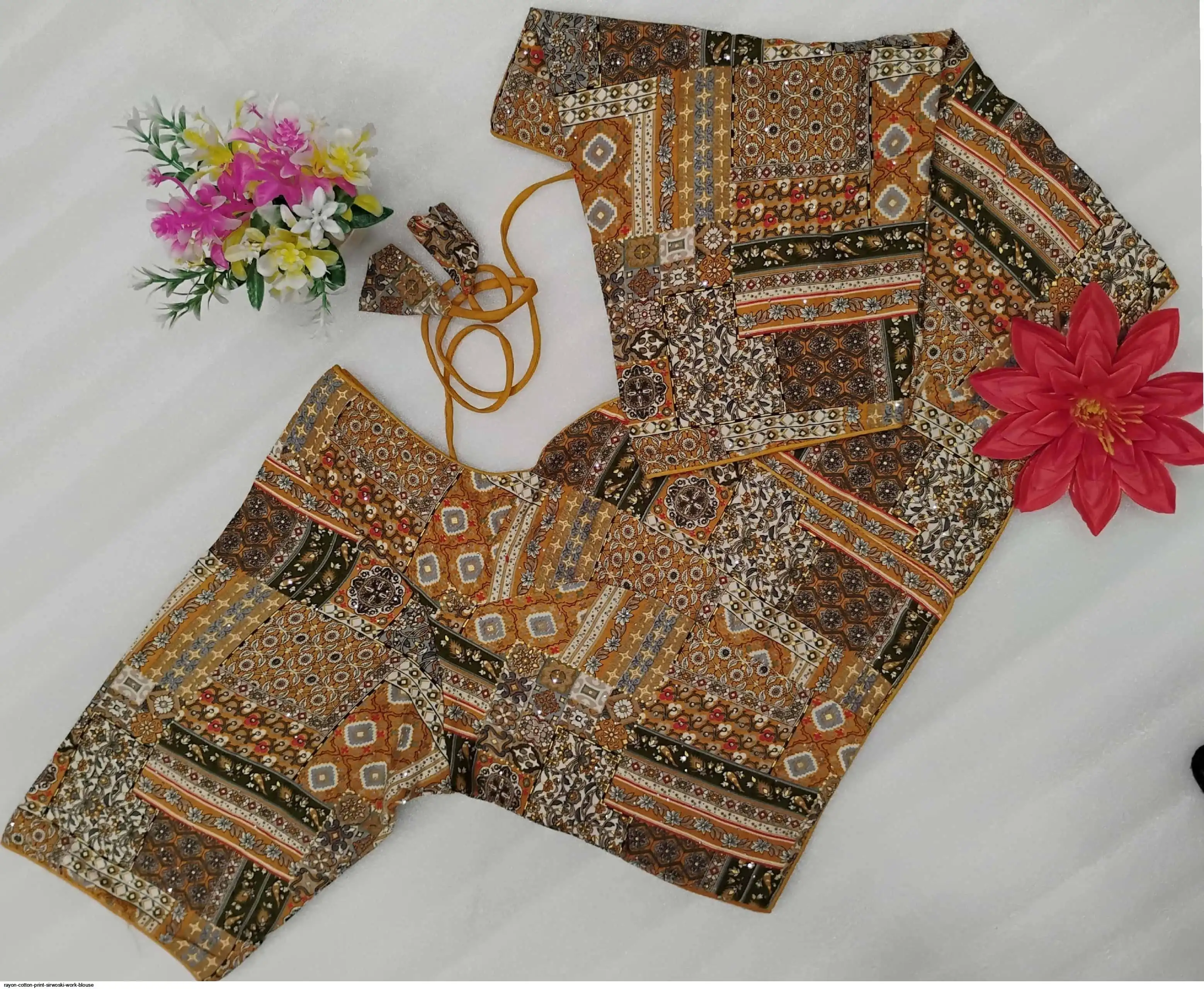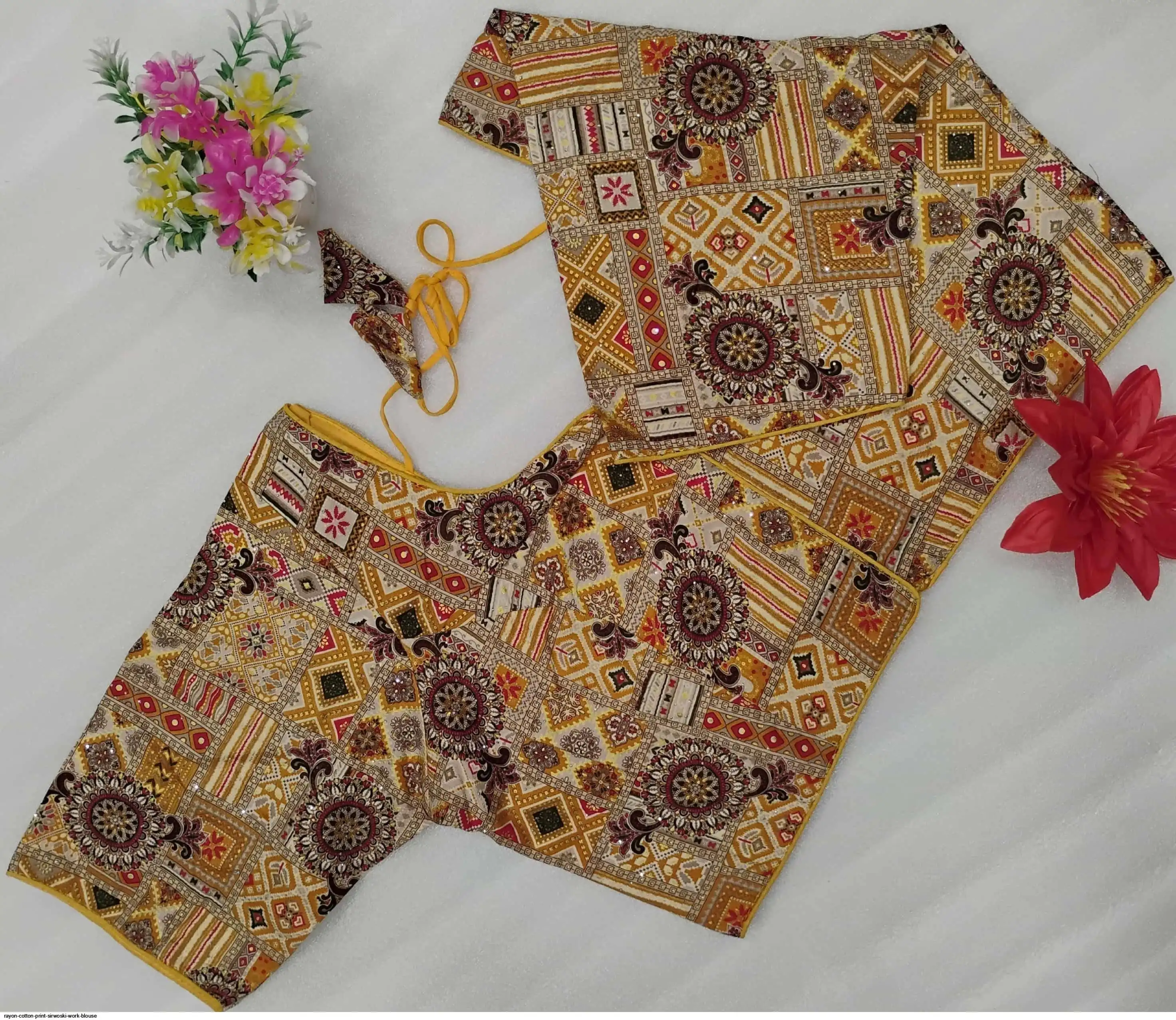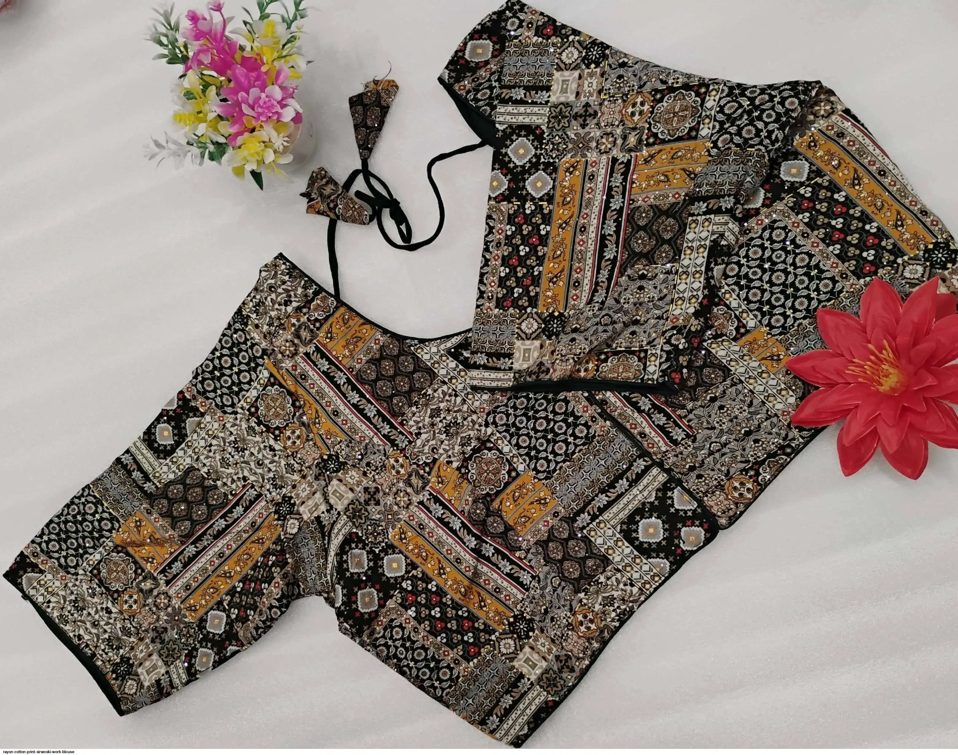 Non-Padded Jumbo 44" Rayon Cotton Digital Print Sirwoski Work Blouses