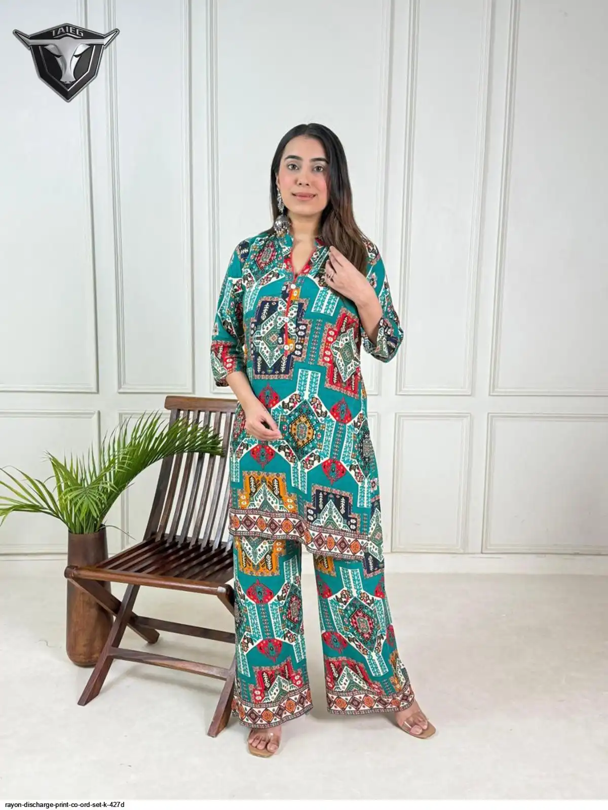 RAYON DISCHARGE PRINT CO ORD SET K 427D