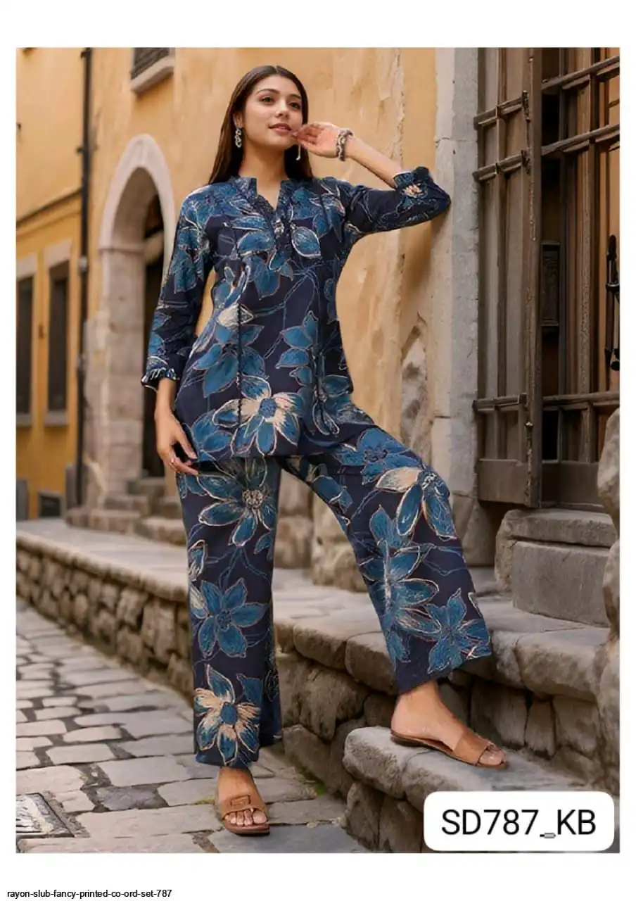 RAYON SLUB FANCY PRINTED CO ORD SET 787