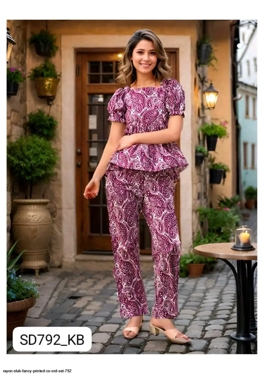 RAYON SLUB FANCY PRINTED CO ORD SET 792