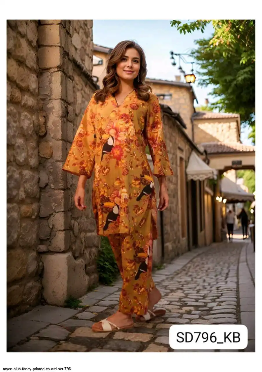 RAYON SLUB FANCY PRINTED CO ORD SET 796
