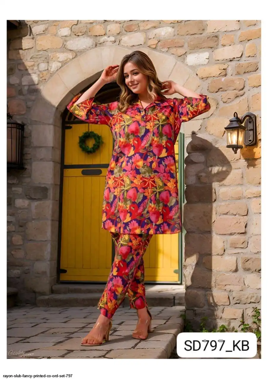 RAYON SLUB FANCY PRINTED CO ORD SET 797