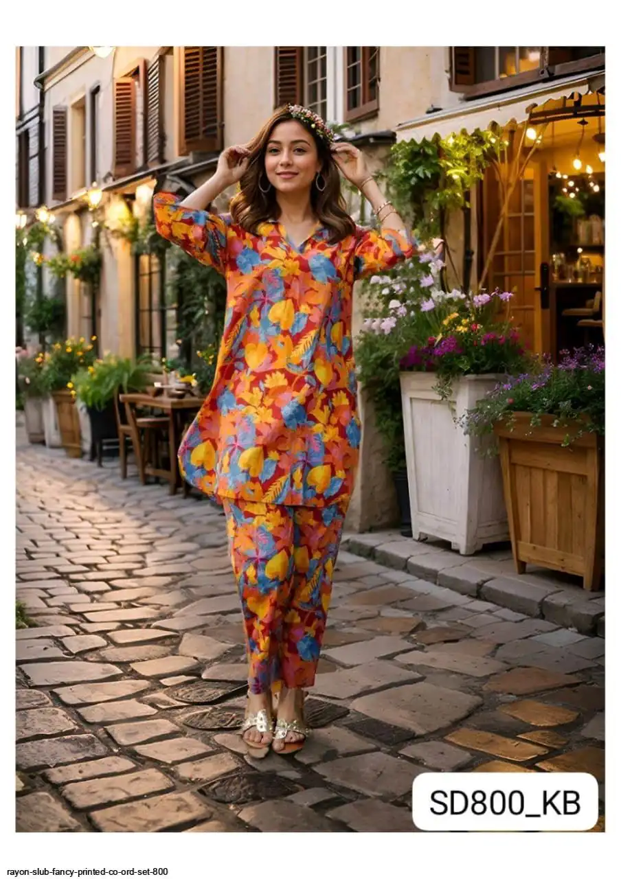 RAYON SLUB FANCY PRINTED CO ORD SET 800