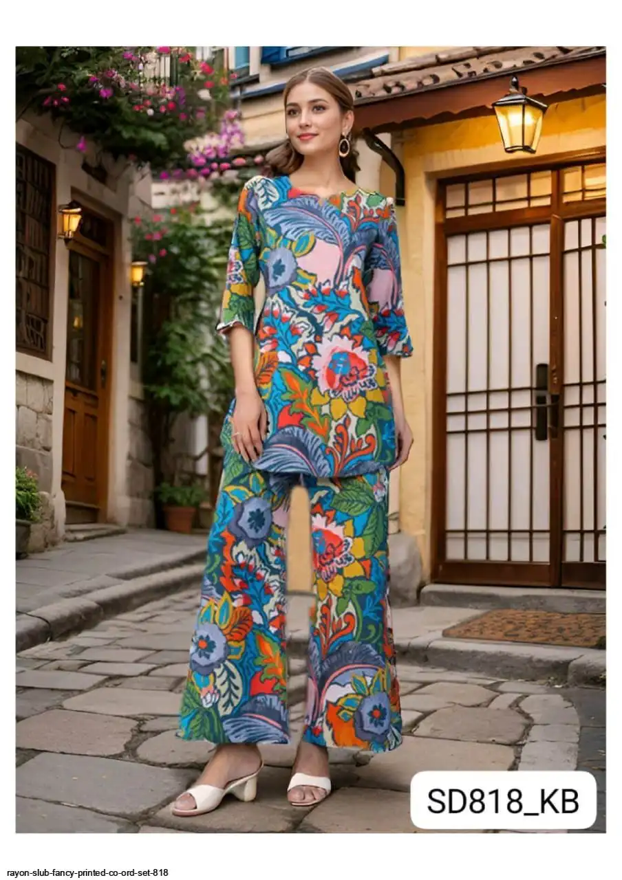 RAYON SLUB FANCY PRINTED CO ORD SET 818