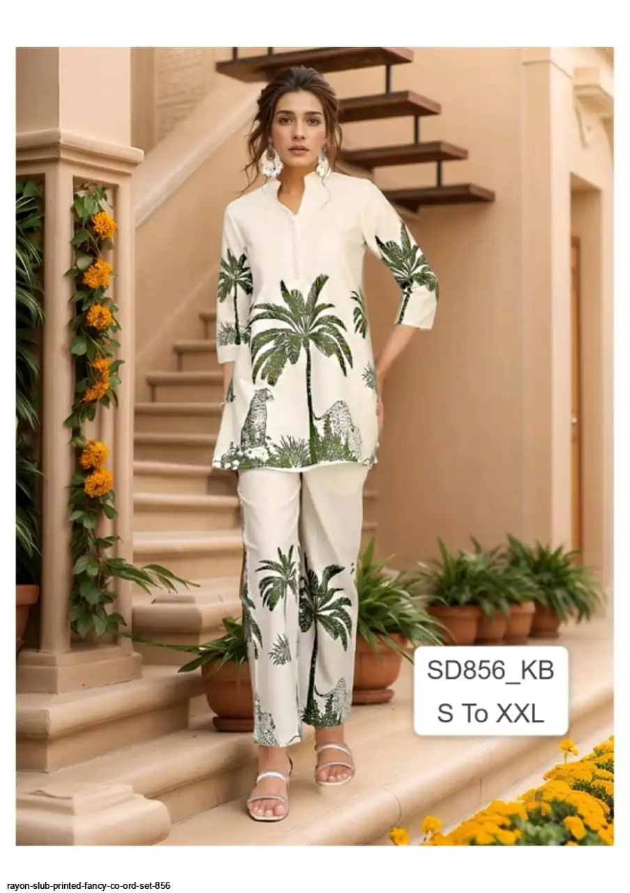 RAYON SLUB PRINTED FANCY CO ORD SET 856