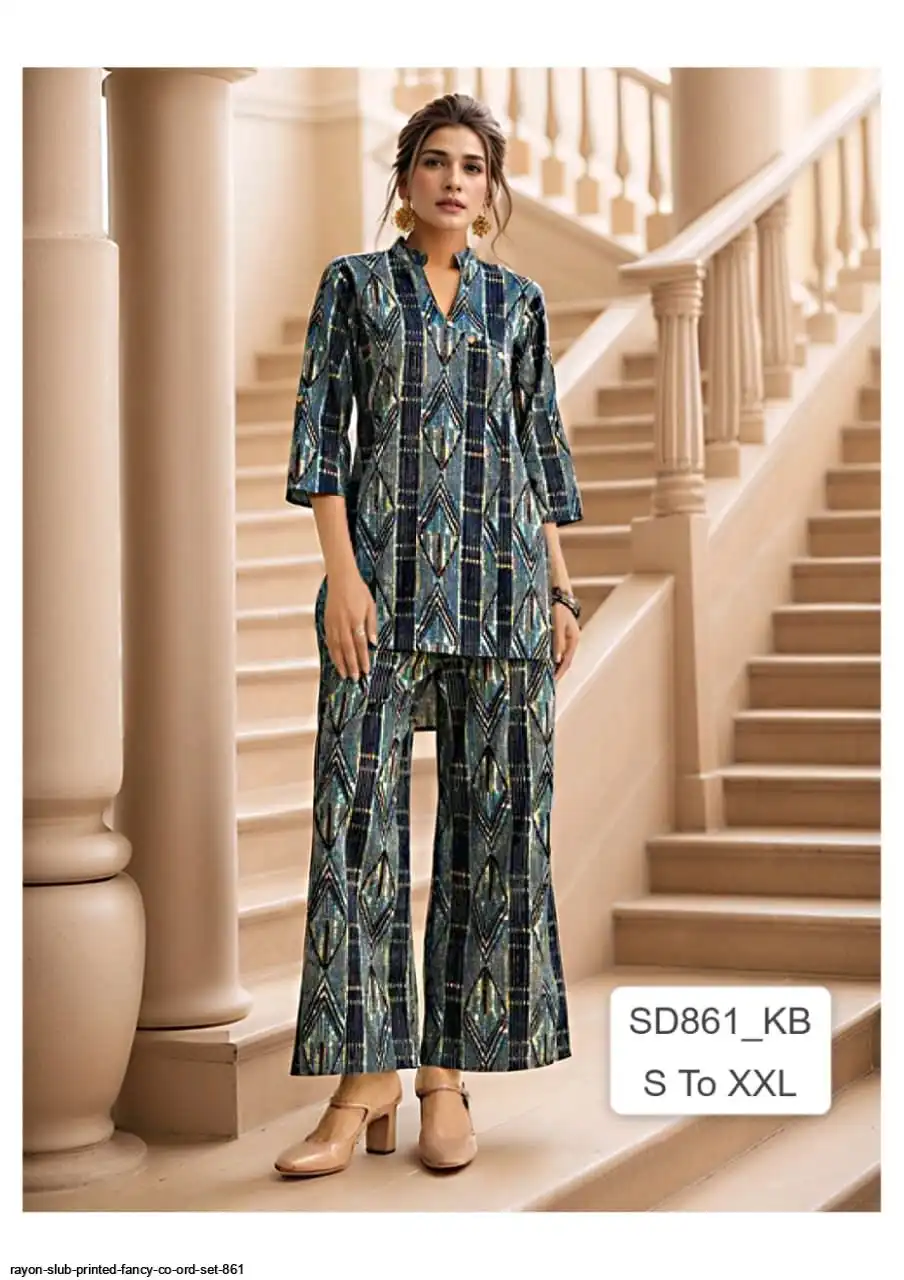 RAYON SLUB PRINTED FANCY CO ORD SET 861