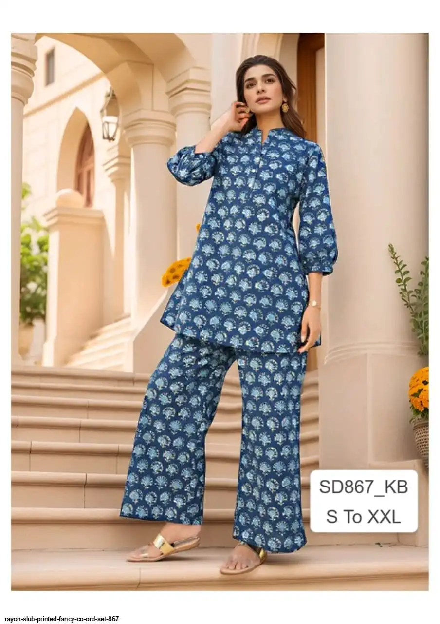RAYON SLUB PRINTED FANCY CO ORD SET 867