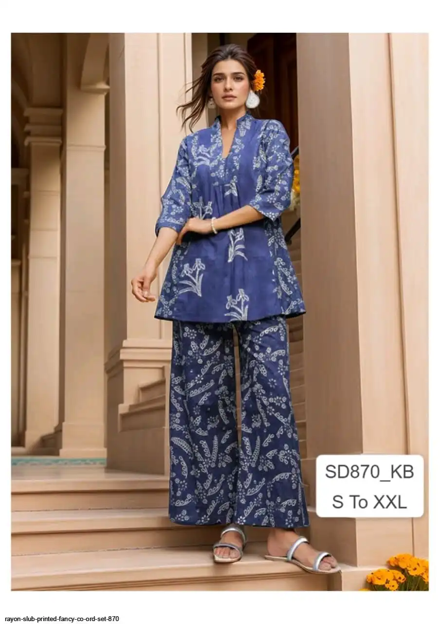 RAYON SLUB PRINTED FANCY CO ORD SET 870