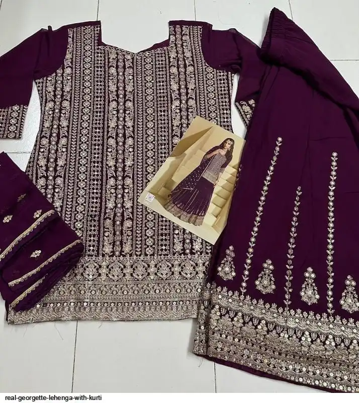 *LENGHA / PLAZO* :- Real Georgette With Embro Work & Sarvoswki Daimond